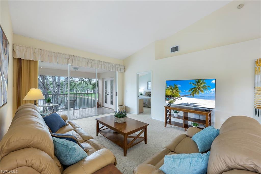 Welcome to 736 Wiggins Lake Dr #201, a beautifully maintained end-unit condo located in the highly desirable Wiggins Lakes & Preserve community in Naples, Florida. This spacious 2-bedroom, 2-bath, second floor residence features vaulted ceilings and an open floor plan that fills the home with natural light, creating an inviting and airy atmosphere. A bonus den complete with a closet and sofa bed offers the flexibility to be used as a third bedroom, home office or additional living space. The primary bedroom offers a peaceful retreat, while the guest bedroom is comfortably furnished with twin beds perfect for family or visiting guests. Step outside onto the private screened lanai and enjoy peaceful wrap-around views of the lake, perfect for relaxing with your morning coffee or entertaining guests. This residence also includes an attached garage with extra storage. Wiggins Lakes and Preserves offers two crystal-clear pools, perfect for soaking up the sunshine or enjoying a refreshing swim, surrounded by lush palm trees and vibrant tropical landscaping. This community also features a tennis and pickleball court, as well as a clubhouse for social gatherings. Ideally situated west of U.S. 41, Wiggins Lakes and Preserves is just a short drive from Delnor-Wiggins Pass State Park Beach. This pristine state park offers excellent shelling, swimming, and kayaking opportunities. Also nearby is Vanderbilt Beach, one of Naples' most popular destinations, known for its powdery sand and breathtaking sunsets. Enjoy beachfront dining at The Ritz-Carlton, LaPlaya, and The Turtle Club, or visit Mercato for upscale shopping, fine dining, entertainment, and a luxury theater experience. Don’t miss this rare opportunity to own a lakefront retreat. Whether you're looking for a full-time residence, a seasonal getaway, or an investment property, this home is a perfect choice to have fun in the sun! Schedule your private showing today!