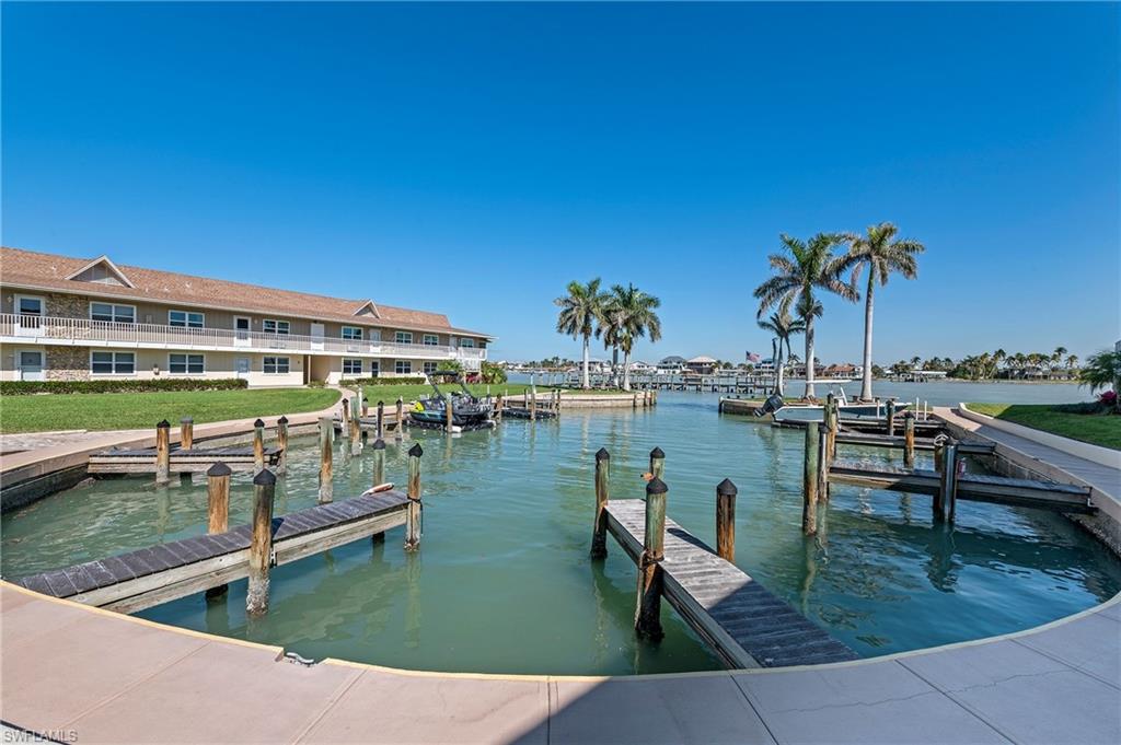 INVESTOR ALERT! Unit needs some TLC and would is a perfect opportunity for investors - or snowbirds! First floor, end unit condo in a superb location in Marco Island! Bedroom walks out to the screened lanai. 1 assigned parking spot and plenty of guest parking. Can be rented 12 times a year (minimum 30 days). Community has 17 boat slips that can be rented on first-come basis (low fee of $450 a year). Low-density community on the Marco River with direct Gulf access. Beautiful pool, pier with a fish cleaning station, walking distance to famous Snook Inn restaurant.