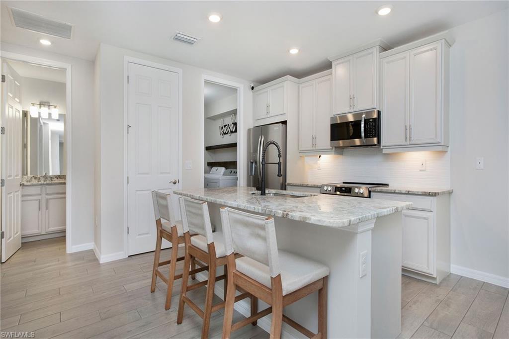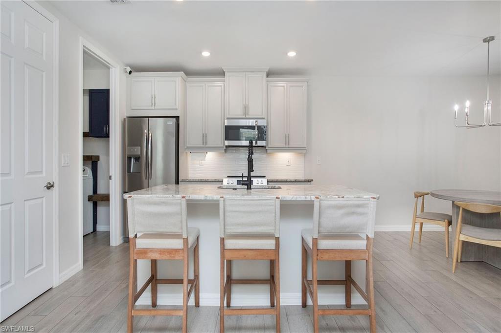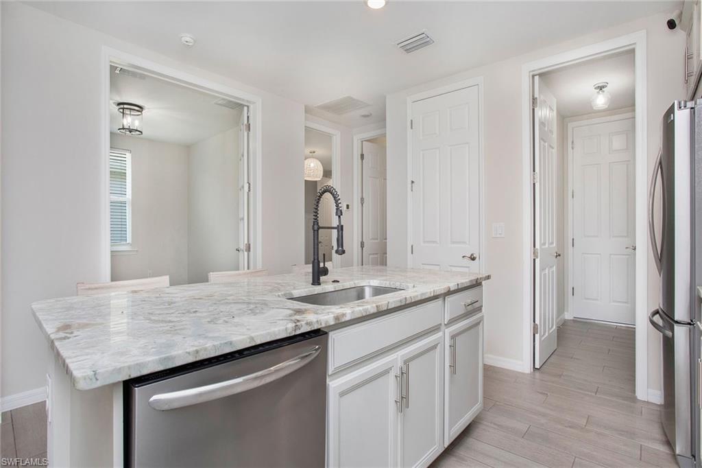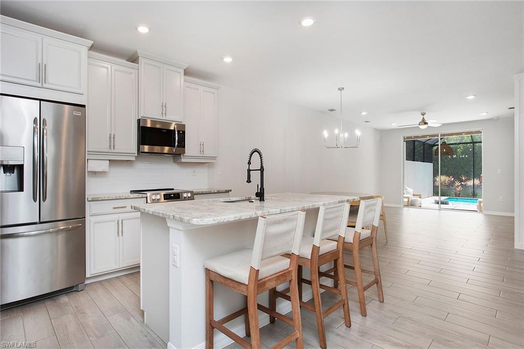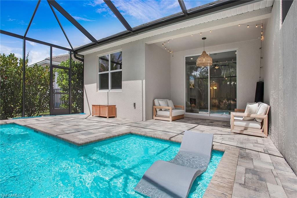 Welcome to your private slice of paradise. Designed for effortless indoor-outdoor living, this beautifully upgraded residence features two bedrooms, two full baths, a versatile den/flex space and a two-car garage. The open layout is filled with natural light and highlighted by tasteful finishes, including a custom fireplace feature wall, wood-look tile flooring throughout with no carpet, fresh interior paint, custom closet systems throughout, generator hookup and lush new landscaping. Go outside to your own tranquil retreat with a heated saltwater pool. Beyond the home, enjoy unmatched lifestyle of one of the area’s amenity-rich communities. Residents have access to 22 lakes, a mile-long rowing lane, boat ramp, and exclusive Island Club featuring a tiki bar, café and resort-style pool with lap lanes. Stay active with tennis, pickleball, bocce, beach volleyball, a fitness center, recreational and biking trails, basketball and two dog parks. There’s even a private island, stand-up paddleboards, kayaks, and Kid’s Cove with a tot lot. Between vibrant 5th Avenue and Marco Island, this is where location, luxury and lifestyle come together.
