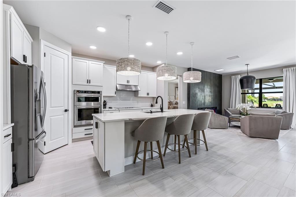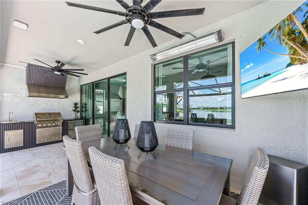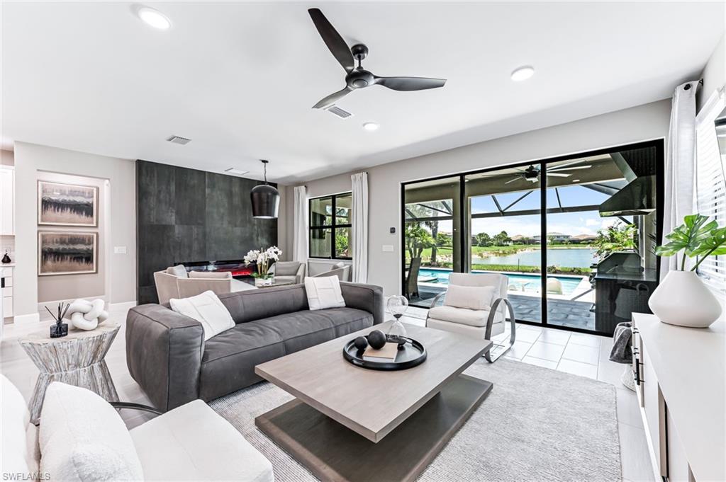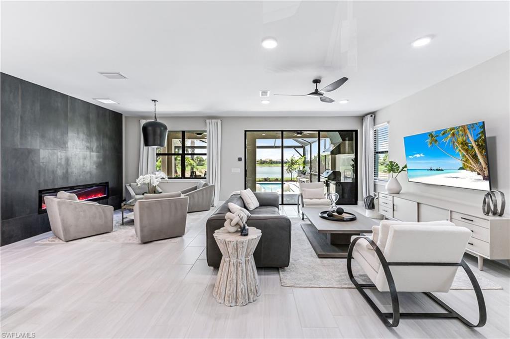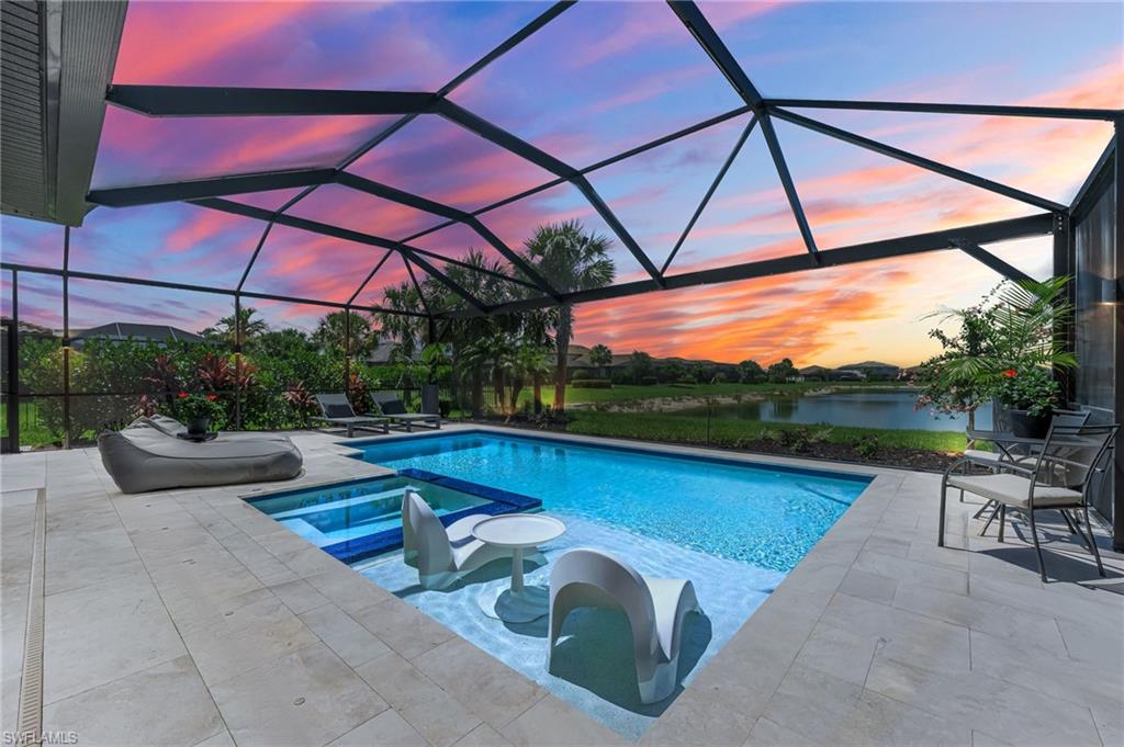 One of the best lake views in all of The Place at Corkscrew! Largest loft of all the models in the community! Welcome to an unparalleled masterpiece of modern luxury, nestled right in the center of one of the largest lakes allowing for the long lake view with privacy. Everything about this home has been customized starting with the 3 car tandem garage with insulated door, A/C, ceiling storage racks, pull down stairs to the attic with extra storage space. Stunning 4-bedroom, 3-bathroom home with almost 3100 square feet of meticulously designed living space, where every detail exudes sophistication and comfort. With breathtaking lake views, bespoke amenities, and seamless indoor-outdoor living, this residence redefines waterfront elegance. Prepare to be wowed when you step inside to discover an open-concept layout bathed in natural light, and breathtaking lake view. Gourmet kitchen is a chef’s dream. Top-of-the-line stainless steel appliances, built in oven, sprawling quartz island with cabinets on each end. Adjacent living area flows effortlessly into a custom fireplace wall, a striking focal point with cozy sitting area—perfect for intimate gatherings or quiet evenings by the fire. High end ,custom lighting throughout, 8 foot doors with upgraded hardware. Newly stained and sealed grout. Enjoy a one story home with the added benefit a massive loft area with additional full bath and bedroom. Perfect for entertaining, game nights, kids, grandkids, and guests to have their own separate and private sanctuary. The luxurious primary suite boasts a spacious walk-in closet, and a spa-inspired ensuite with dual vanities. Three additional bedrooms offer generous space, each thoughtfully designed with premium finishes and ample storage, ideal for family, guests, or a home office. The outdoor oasis living is nothing short of extraordinary. Dive into the custom-designed, salt water, heated pool with an infinity feel, where the water appears to merge with the lake beyond, creating a breathtaking visual effect. The landscape screen and high end marble pavers with a leather finish top it off. Host unforgettable gatherings at the state-of-the-art, custom outdoor kitchen, complete with a brand new (never used) built-in grill, double refrigerator, and sink/faucet, all set against the backdrop of shimmering lake views and professional landscaped grounds. As evening falls, soak in the spa with the ambiance of the lanai and landscape lights and infrared heater for year round enjoyment. Situated in the prestigious community of The Place at Corkscrew, this home offers the perfect blend of tranquility and convenience with all the amenities to match. Restaurant, bourbon Bar, cafe, resort style pool and spa, tennis, pickleball, basketball courts and dog park while remaining just minutes from the airport, dining, and shopping. This is more than a home—it’s a lifestyle. Welcome Home!