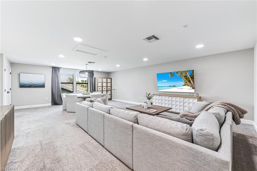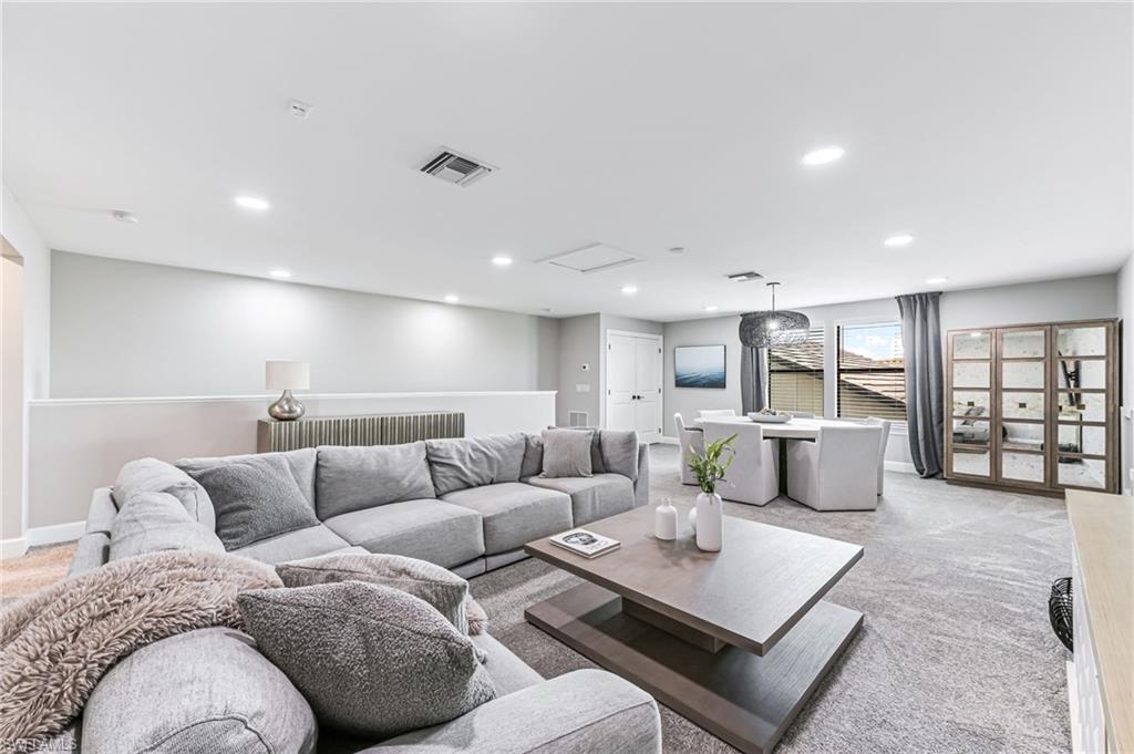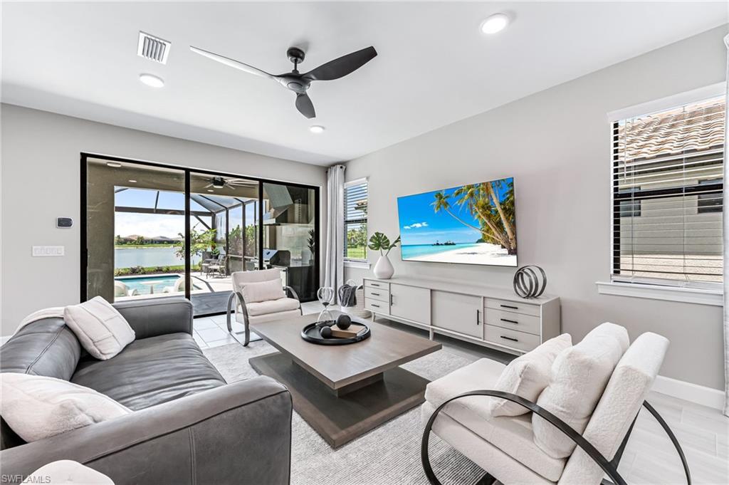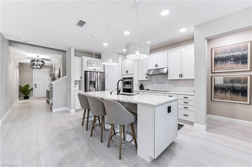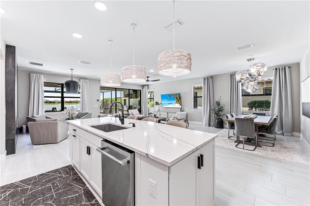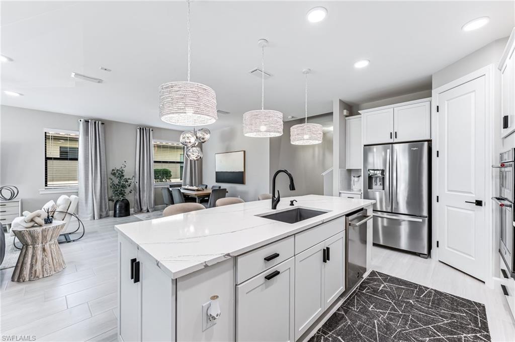 One of the best lake views in all of The Place at Corkscrew! Largest loft of all the models in the community! Welcome to an unparalleled masterpiece of modern luxury, nestled right in the center of one of the largest lakes allowing for the long lake view with privacy. Everything about this home has been customized starting with the 3 car tandem garage with insulated door, A/C, ceiling storage racks, pull down stairs to the attic with extra storage space. Stunning 4-bedroom, 3-bathroom home with almost 3100 square feet of meticulously designed living space, where every detail exudes sophistication and comfort. With breathtaking lake views, bespoke amenities, and seamless indoor-outdoor living, this residence redefines waterfront elegance. Prepare to be wowed when you step inside to discover an open-concept layout bathed in natural light, and breathtaking lake view. Gourmet kitchen is a chef’s dream. Top-of-the-line stainless steel appliances, built in oven, sprawling quartz island with cabinets on each end. Adjacent living area flows effortlessly into a custom fireplace wall, a striking focal point with cozy sitting area—perfect for intimate gatherings or quiet evenings by the fire. High end ,custom lighting throughout, 8 foot doors with upgraded hardware. Newly stained and sealed grout. Enjoy a one story home with the added benefit a massive loft area with additional full bath and bedroom. Perfect for entertaining, game nights, kids, grandkids, and guests to have their own separate and private sanctuary. The luxurious primary suite boasts a spacious walk-in closet, and a spa-inspired ensuite with dual vanities. Three additional bedrooms offer generous space, each thoughtfully designed with premium finishes and ample storage, ideal for family, guests, or a home office. The outdoor oasis living is nothing short of extraordinary. Dive into the custom-designed, salt water, heated pool with an infinity feel, where the water appears to merge with the lake beyond, creating a breathtaking visual effect. The landscape screen and high end marble pavers with a leather finish top it off. Host unforgettable gatherings at the state-of-the-art, custom outdoor kitchen, complete with a brand new (never used) built-in grill, double refrigerator, and sink/faucet, all set against the backdrop of shimmering lake views and professional landscaped grounds. As evening falls, soak in the spa with the ambiance of the lanai and landscape lights and infrared heater for year round enjoyment. Situated in the prestigious community of The Place at Corkscrew, this home offers the perfect blend of tranquility and convenience with all the amenities to match. Restaurant, bourbon Bar, cafe, resort style pool and spa, tennis, pickleball, basketball courts and dog park while remaining just minutes from the airport, dining, and shopping. This is more than a home—it’s a lifestyle. Welcome Home!