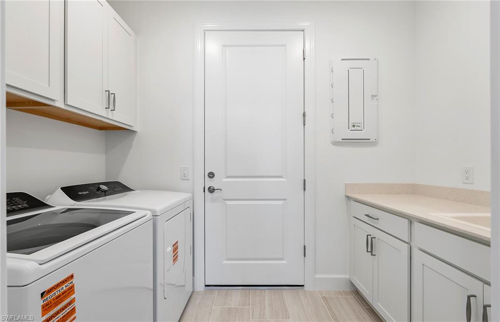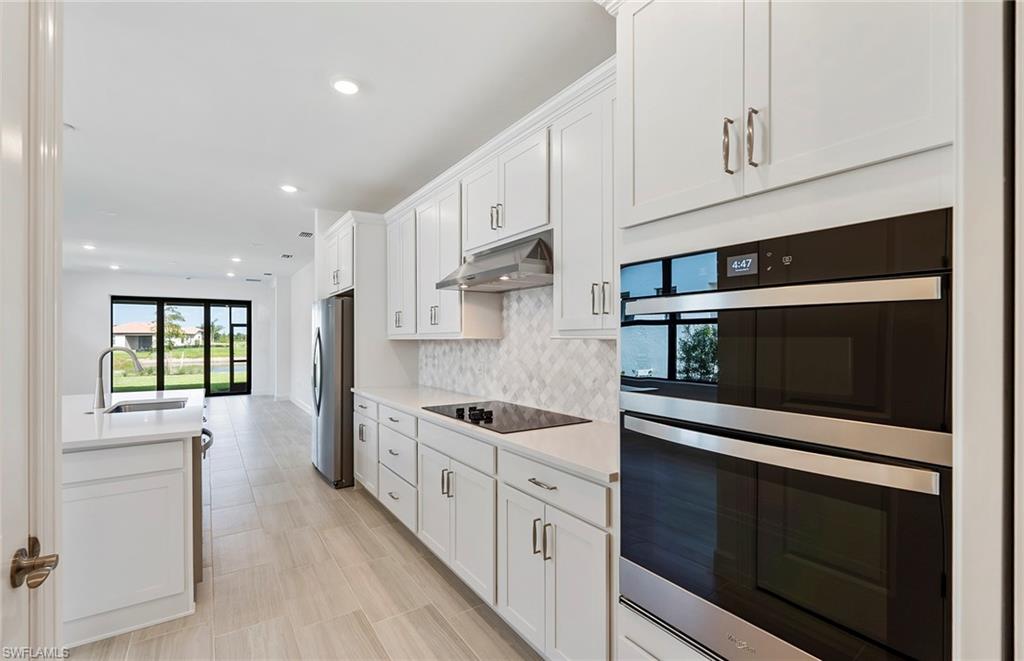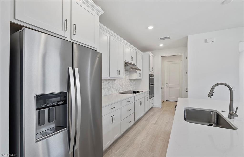 Introducing the Hallmark floor plan, a brand-new 2-bedroom, 2-bathroom single-family home with a flex room and oversized garage, ready for immediate move-in! This thoughtfully designed home features built-in kitchen appliances, a pocket sliding glass door that opens to the lanai, and a full laundry room upgrade for added convenience. Interior finishes include white cabinetry with quartz countertops, a striking marble backsplash, 12x24 tile flooring throughout, 8' interior doors, and a heavy glass shower door. Additional highlights include epoxy-coated garage floors, pool/spa prewiring, and more for ultimate functionality and style. Located in the amenity-rich community of Panther Run, residents enjoy access to a professionally designed 18-hole golf course, an 8,000 sq. ft. resort-style pool with beach entry, and The Rusty Putter Bar & Grille. The community also offers a 3-lane lap pool, jetted hot tub, outdoor fire pit, and two clubhouses totaling over 30,000 sq. ft. Enjoy a vibrant lifestyle with amenities such as a state-of-the-art fitness center, movement studio, library, activity and arts & crafts rooms, and a golf simulator room. The Oasis Club, a 12,000 sq. ft. clubhouse, features locker rooms, a café, catering kitchen, and more, while the Grand Hall provides additional gathering spaces for events and social activities. Residents also enjoy 12 lighted pickleball courts, 2 tennis courts, 4 bocce ball courts, an outdoor amphitheater, community garden, and a robust calendar of events including happy hours, game nights, fitness classes, arts & crafts, movie nights, and more.