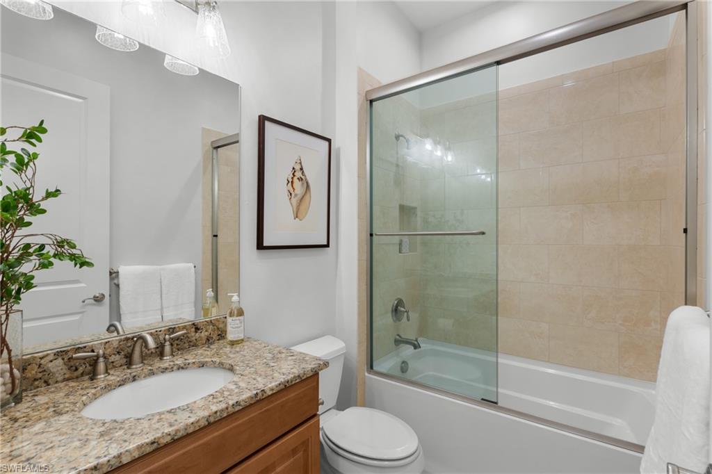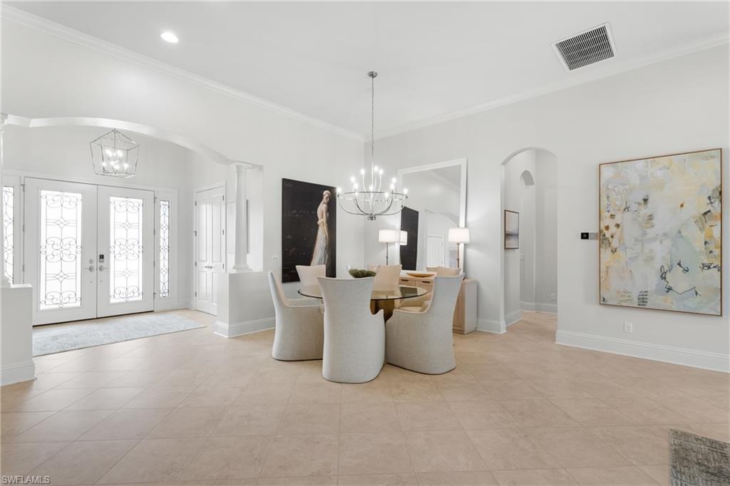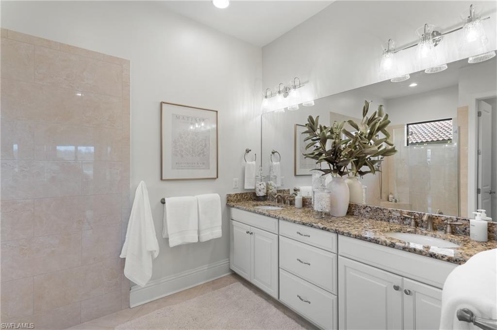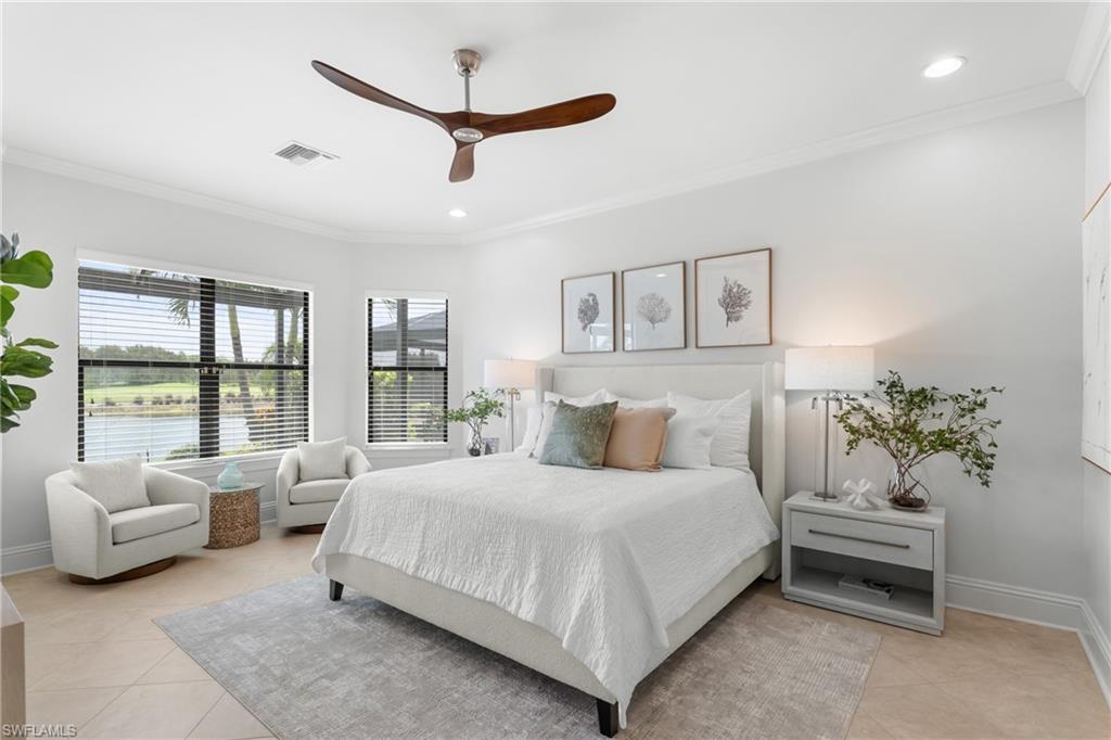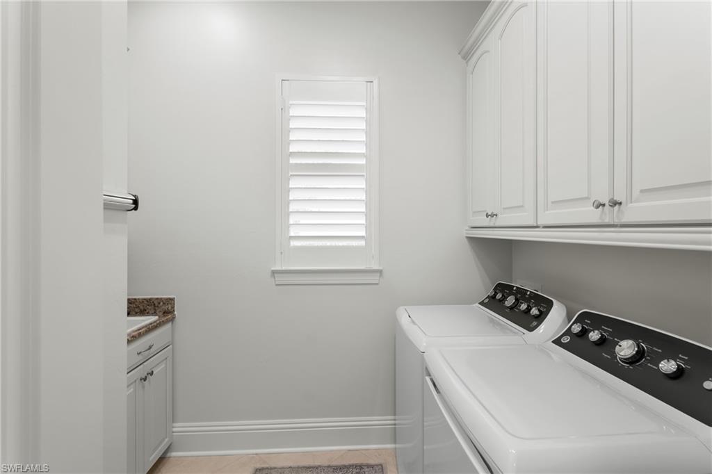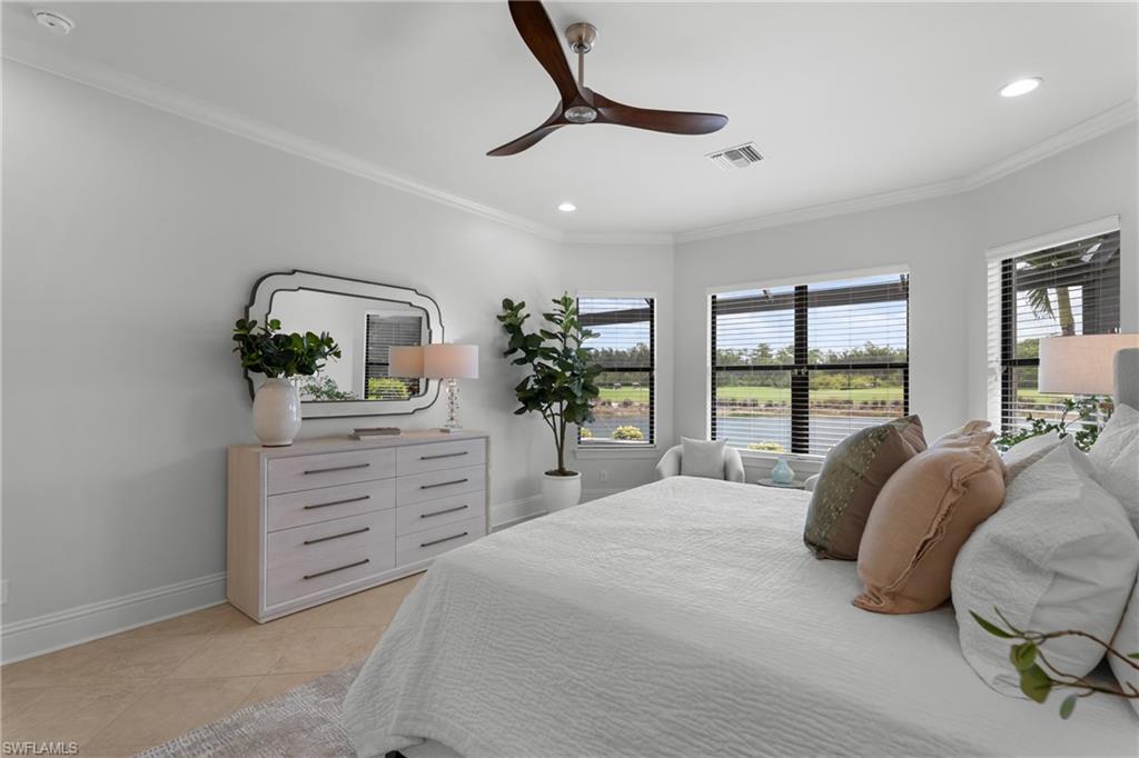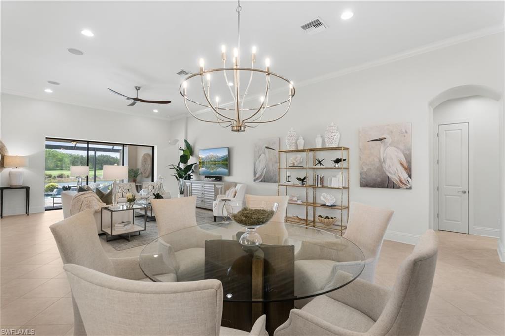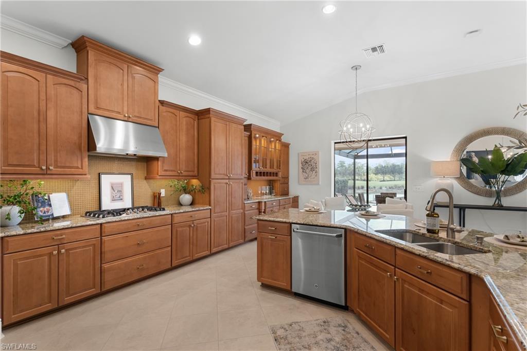 FULL GOLF MEMBERSHIP INCLUDED! Big Views, Big Lot, and a Big Garage! Built in 2016, this immaculate “Carrera” floorplan (3 Bedrooms, 2.5 Baths, 2545 sq ft under air) is situated on an oversized pie shaped just steps away from amenity campus of Esplanade Golf & Country Club and has been lovingly cared for by its original owners. Expansive lake, golf course, and preserve views can be appreciated from nearly every room in the house and from the expanded lanai complete with outdoor kitchen and a salt water GAS heated pool with raised spa and sunshelf which is all enclosed with a picture window screen cage. A gated courtyard welcomes you as you enter the home and once inside you are greeted with 12’ ceilings throughout the Great Room style floorplan with both formal and informal dining areas, two pocketing sliding glass doors to the lanai, and a spacious Kitchen complete with GAS cooktop, wall oven, brand new Bosch refrigerator, and solid wood raised panel cabinetry complete with glass display cabinets and under cabinet lighting. A long list of special features and upgrades include: oversized two car garage (20’x27’) with finished floor and built in storage cabinets; new HVAC (2022); motorized roll down hurricane screens on the lanai & front door and easy close accordion style hurricane shutters on the side and rear windows; brand new washer/dryer; freshly painted interior & exterior; 7” baseboards & crown molding throughout; recessed lights in every room; diagonal tile floors throughout (no carpet anywhere); stacked stone elevation upgrade with courtyard; storage galore amongst the 9 closets throughout the home all with custom shelving/cabinets; and more! Esplanade Golf & Country Club of North Naples offers a true “Lifestyle Community” with world-class amenities, including a resort pool with cabanas and the popular “Bahama Bar,” tennis, pickleball, bocce, a 14-mile network of bike/walking trails, and an 18-hole private golf course. The impressive 15,000 Sq Ft clubhouse features a restaurant, bar, wine-tasting room, wine lockers, and a Starbucks-style café. Best of all, the property’s landscaping, irrigation, golf membership, and all community amenities are covered under a quarterly fee of just $3,434—no additional fees or memberships required! Don't miss your opportunity to own this exceptional home in one of Naples’ most sought-after communities. Schedule your tour of this stunning home and Esplanade Golf & Country Club today!