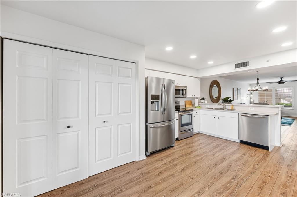 Enjoy serene views of the lake and preserve from this beautifully maintained unit with southern exposure. This home features 2 bedrooms, a den, 2 bathrooms, and a private detached garage, making it a truly tranquil retreat. Luxury vinyl flooring in the main living area combines style with durability. The spacious master suite includes a dual-sink vanity and a walk-in shower, while the guest bathroom features a convenient shower/tub combination. The light and bright kitchen offers extra storage with a pantry and ample space for dining, making everyday living and entertaining easy. Conveniently located just steps from the community pool and spa, this residence provides both relaxation and convenience. Few properties at this price point in Naples, west of I-75, offer such a combination of square footage, a private garage, and low HOA fees. The low monthly fees cover exterior insurance, landscaping, irrigation, water, sewer, trash, reserves, and professional management. Its prime location gives easy access to numerous dining and shopping options, and it is situated in one of the area's top-rated school districts. Just across the street is the popular Seed to Table market, featuring fresh, local produce and a wine bar. Additionally, it’s only a few minutes away from Delnor-Wiggins Beach, Mercato, Whole Foods, Veterans Park, North Collier Regional Park, as well as medical facilities and theaters, with convenient access to I-75. Don’t miss this rare opportunity to own a peaceful and well-located home in the heart of Naples.