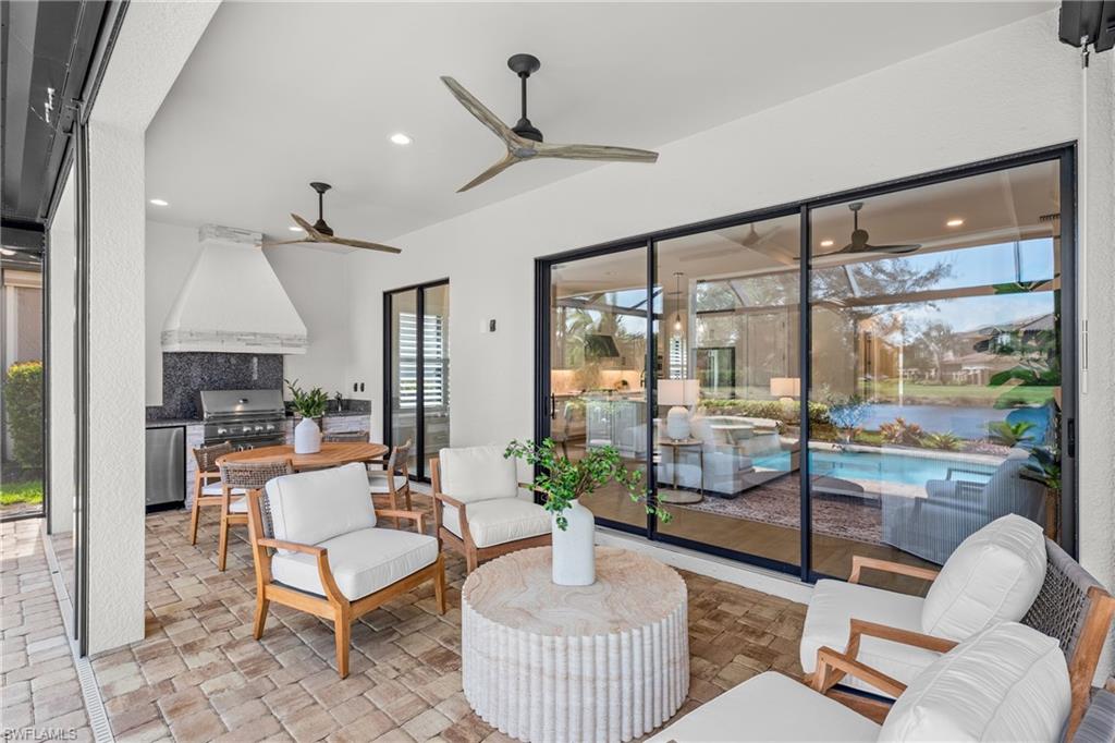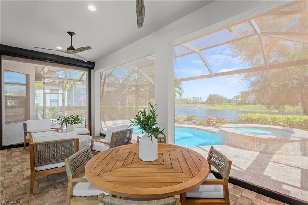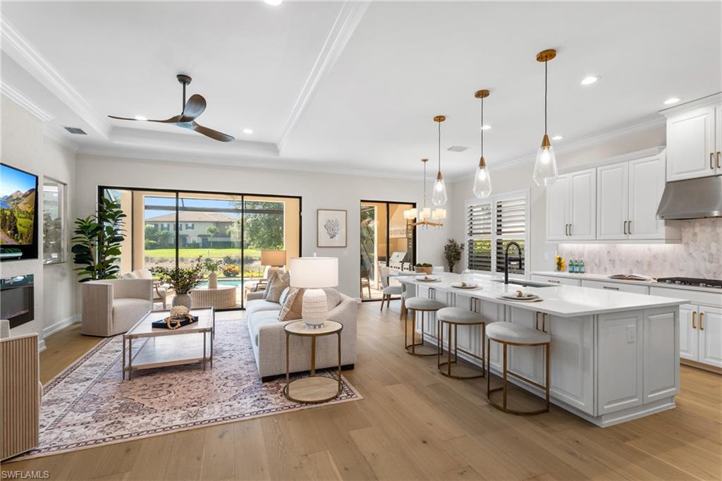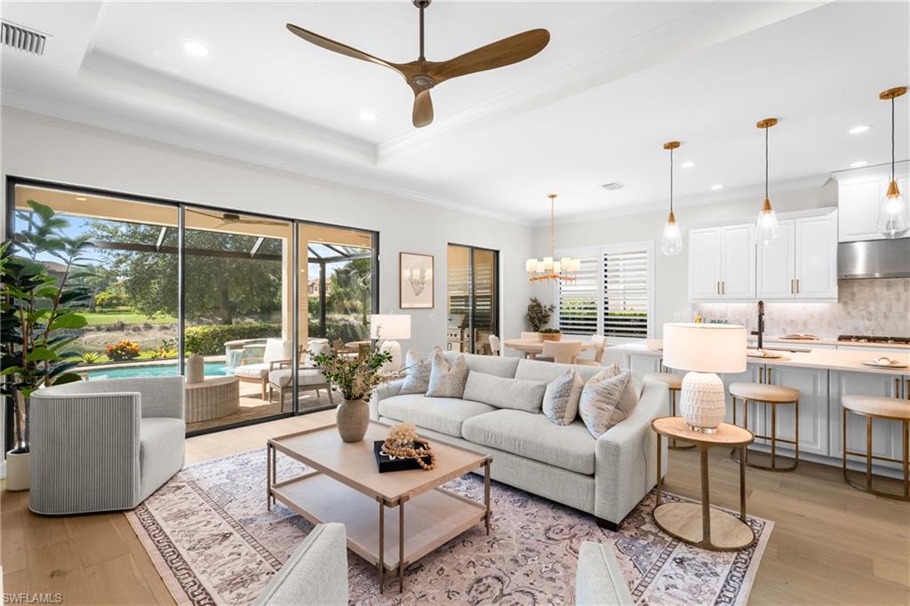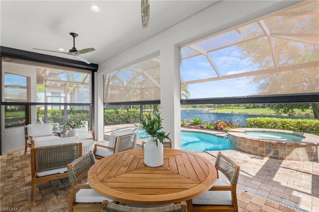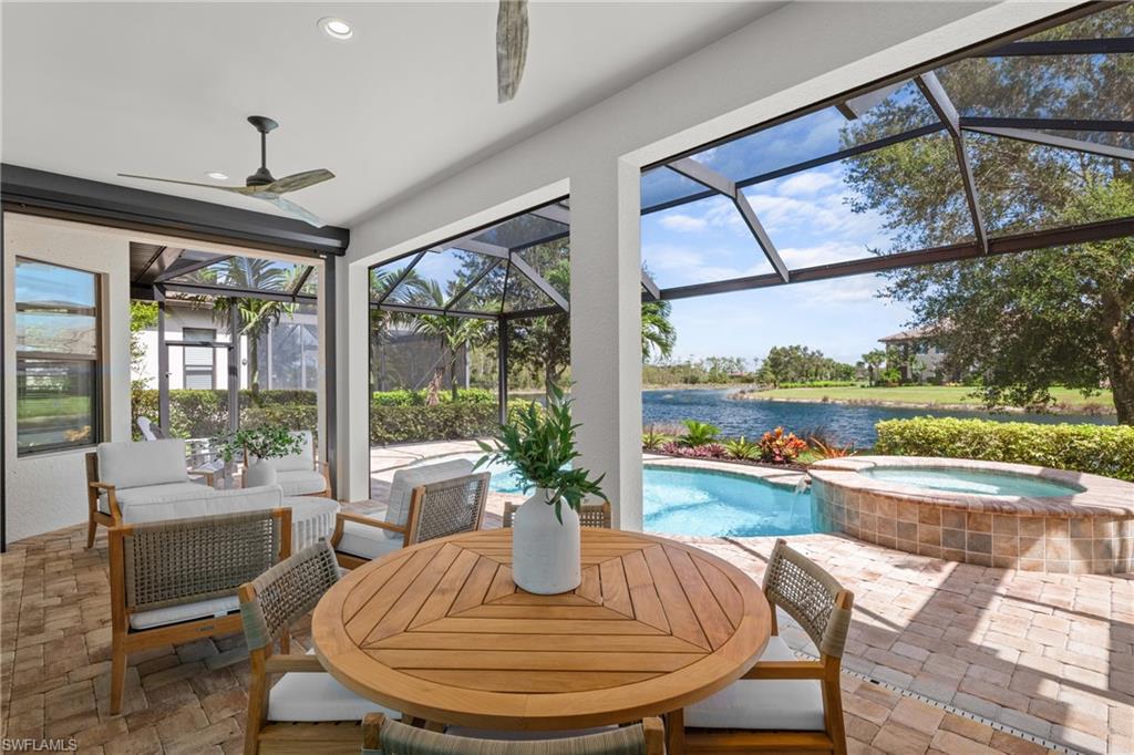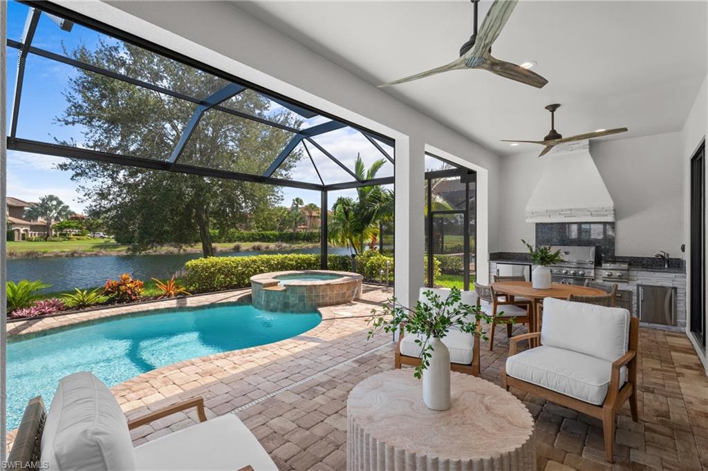 FULL GOLF MEMBERSHIP INCLUDED! Live a vacation lifestyle in Esplanade G&CC! This immaculate and totally remodeled “Farnese” floorplan (2 Bedrooms plus den, 2.5 Baths) home is situated on a quiet cul-de-sac street within walking distance of the amenity campus of Esplanade Golf & Country Club of Naples. This home underwent a significant renovation and remodel in early 2025 which includes $200k in BRAND NEW updates which include: air conditioner with wifi thermostat; StormSmart motorized roll down hurricane screens on the lanai openings; KitchenAid appliances including GAS cooktop, wall oven, convection microwave, and french door refrigerator; Maytag washer/dryer; European white oak wood floors throughout; custom closet built-in shelving/cabinets throughout all closets & pantry; plantation shutters on all windows; Hanstone quartz countertops throughout; marble tile backsplash; hurricane impact glass front door & sidelight; freshly painted interior & exterior; refinished pool/spa interior; salt water pool/spa system; bathroom sink/shower fixtures including new toilets; frameless shower enclosure; upgraded door hardware; recessed lighting & high end light fixtures throughout; whole house Kinetico water softener/filtration system; finished eopxy garage floor; lush landscaping; and more! From the moment you walk in the door, you are greeted with a light and bright great room style floorplan that is flooded with natural light throughout the day from this homes abundance of windows and two sliding glass doors to the lanai. Enjoy al fresco dining and entertaining on the lanai complete with outdoor kitchen, and a salt water GAS heated pool with raised spa & sunshelf all enclosed by an updated screen cage with picture windows on all three sides (2019). Tastefully designed with light neutral colors, elegant lighting fixtures & chandeliers, and all the brand new furniture/decor is available to be purchased with the home. Esplanade Golf & Country Club of North Naples offers a true “Lifestyle Community” with world-class amenities, including a resort pool with cabanas and the popular “Bahama Bar,” tennis, pickleball, bocce, a 14-mile network of bike/walking trails, and an 18-hole private golf course. The impressive 15,000 Sq Ft clubhouse features a restaurant, bar, wine-tasting room, wine lockers, and a Starbucks-style café. Best of all, the property’s landscaping, irrigation, golf membership, and all community amenities are covered under a quarterly fee of just $3,412—no additional fees or memberships required! Don't miss your opportunity to own this exceptional home in one of Naples’ most sought-after communities. Schedule your tour of this stunning home and Esplanade Golf & Country Club today! COMING SOON TO ESPLANADE (2026): Fully renovated and expanded poolside Bahama Bar; expanded outdoor bar at the Barrel House; expanded golf practice range; and an AIR CONDITIONED INDOOR PICKLEBALL COMPLEX with four indoor courts.