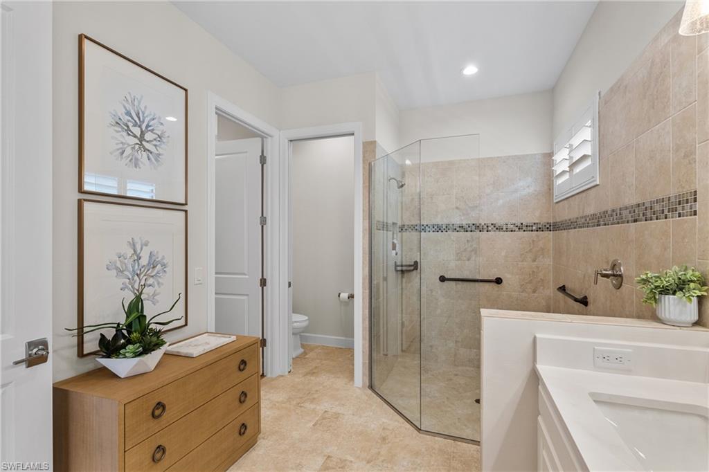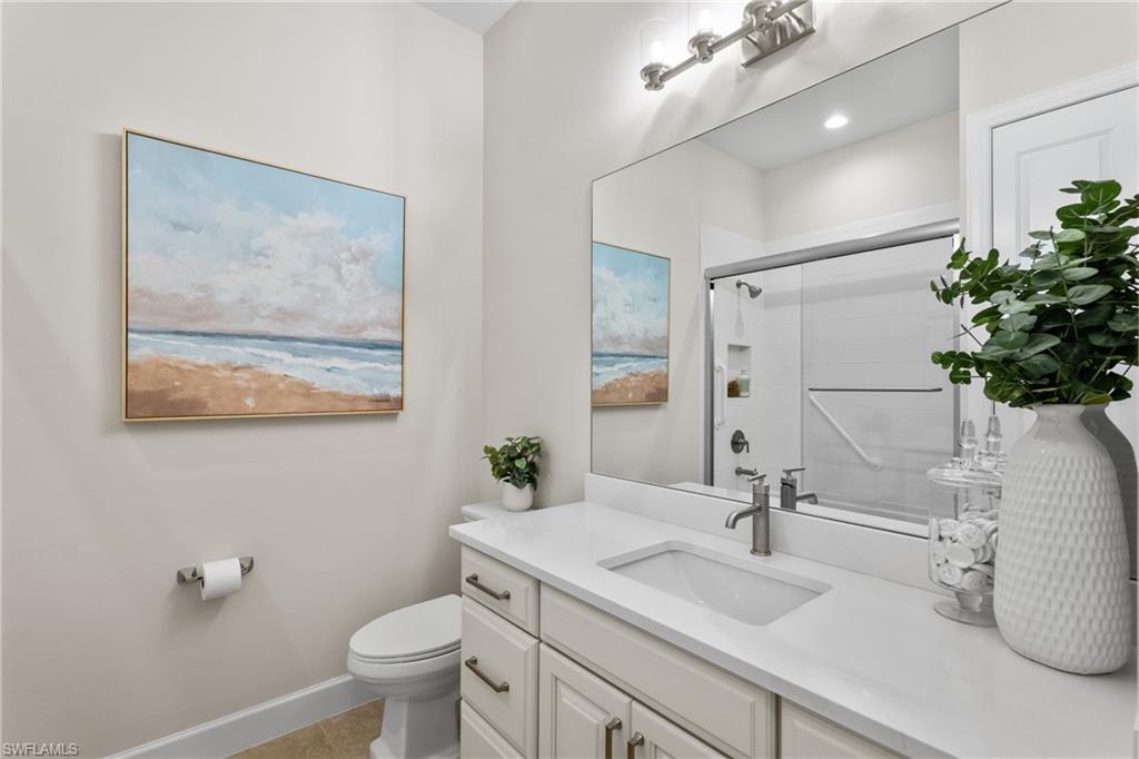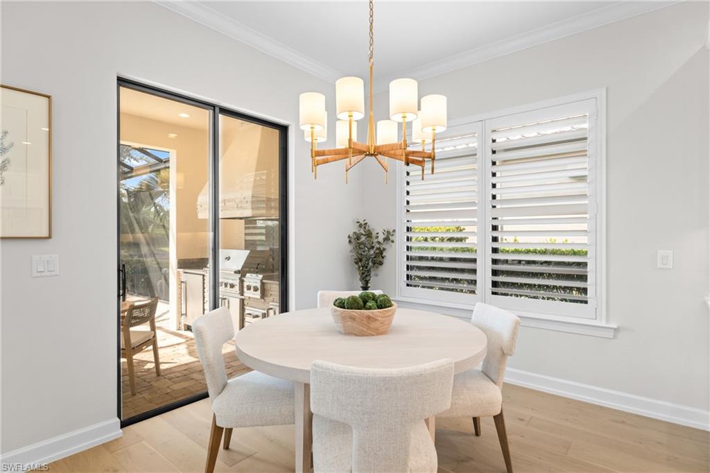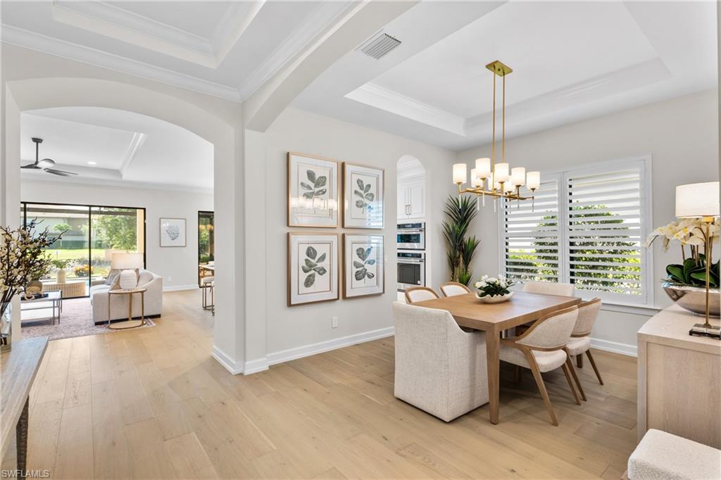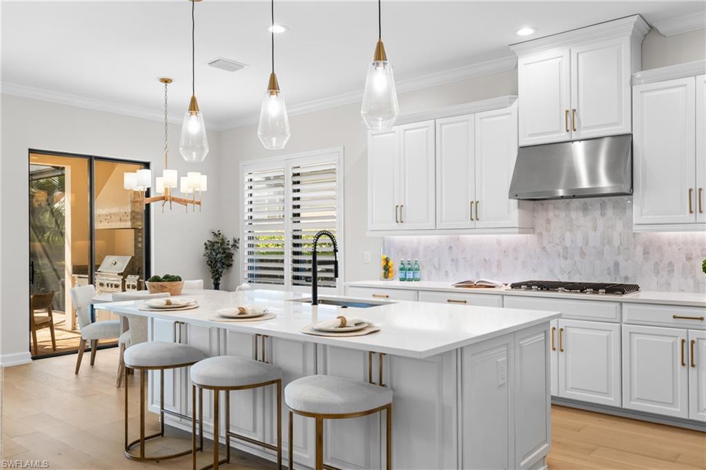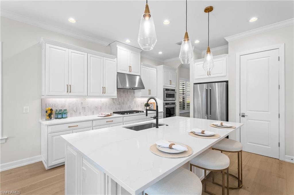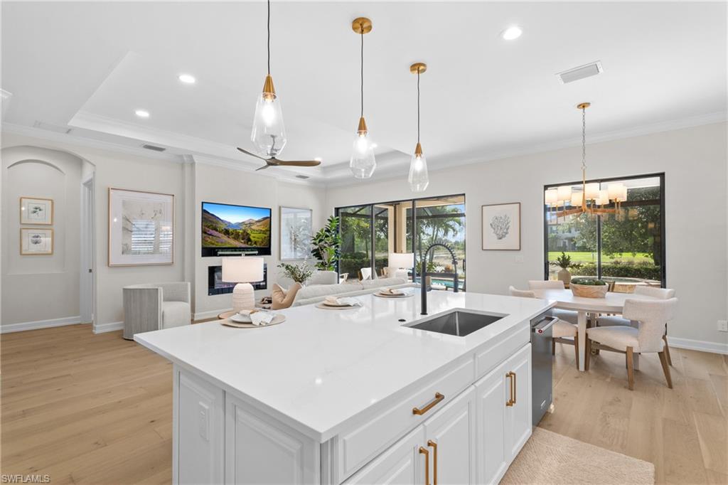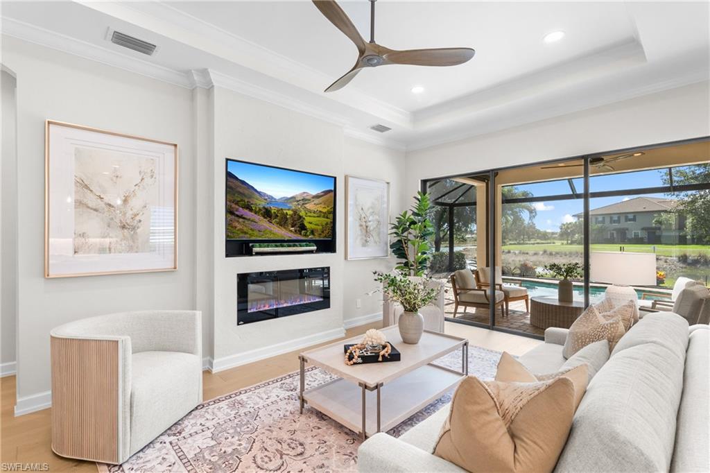 FULL GOLF MEMBERSHIP INCLUDED! Live a vacation lifestyle in Esplanade G&CC! This immaculate and totally remodeled “Farnese” floorplan (2 Bedrooms plus den, 2.5 Baths) home is situated on a quiet cul-de-sac street within walking distance of the amenity campus of Esplanade Golf & Country Club of Naples. This home underwent a significant renovation and remodel in early 2025 which includes $200k in BRAND NEW updates which include: air conditioner with wifi thermostat; StormSmart motorized roll down hurricane screens on the lanai openings; KitchenAid appliances including GAS cooktop, wall oven, convection microwave, and french door refrigerator; Maytag washer/dryer; European white oak wood floors throughout; custom closet built-in shelving/cabinets throughout all closets & pantry; plantation shutters on all windows; Hanstone quartz countertops throughout; marble tile backsplash; hurricane impact glass front door & sidelight; freshly painted interior & exterior; refinished pool/spa interior; salt water pool/spa system; bathroom sink/shower fixtures including new toilets; frameless shower enclosure; upgraded door hardware; recessed lighting & high end light fixtures throughout; whole house Kinetico water softener/filtration system; finished eopxy garage floor; lush landscaping; and more! From the moment you walk in the door, you are greeted with a light and bright great room style floorplan that is flooded with natural light throughout the day from this homes abundance of windows and two sliding glass doors to the lanai. Enjoy al fresco dining and entertaining on the lanai complete with outdoor kitchen, and a salt water GAS heated pool with raised spa & sunshelf all enclosed by an updated screen cage with picture windows on all three sides (2019). Tastefully designed with light neutral colors, elegant lighting fixtures & chandeliers, and all the brand new furniture/decor is available to be purchased with the home. Esplanade Golf & Country Club of North Naples offers a true “Lifestyle Community” with world-class amenities, including a resort pool with cabanas and the popular “Bahama Bar,” tennis, pickleball, bocce, a 14-mile network of bike/walking trails, and an 18-hole private golf course. The impressive 15,000 Sq Ft clubhouse features a restaurant, bar, wine-tasting room, wine lockers, and a Starbucks-style café. Best of all, the property’s landscaping, irrigation, golf membership, and all community amenities are covered under a quarterly fee of just $3,412—no additional fees or memberships required! Don't miss your opportunity to own this exceptional home in one of Naples’ most sought-after communities. Schedule your tour of this stunning home and Esplanade Golf & Country Club today! COMING SOON TO ESPLANADE (2026): Fully renovated and expanded poolside Bahama Bar; expanded outdoor bar at the Barrel House; expanded golf practice range; and an AIR CONDITIONED INDOOR PICKLEBALL COMPLEX with four indoor courts.