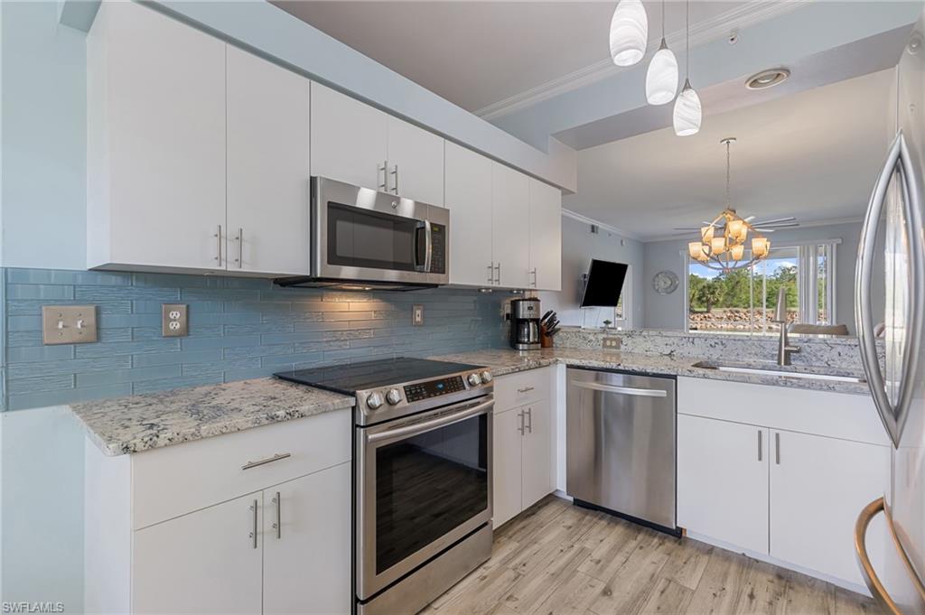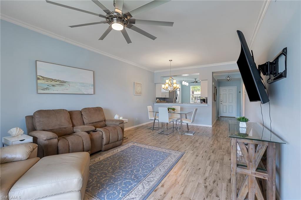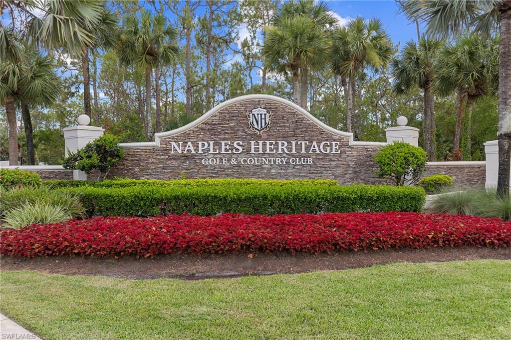 ***Mortgage savings may be available for buyers of this listing***Discover your move-in-ready retreat in the casually elegant Naples Heritage Golf & Country Club! This first-floor 2-bedroom, 2-bath gem boasts serene water and golf course views from a screened lanai, overlooking the Gordon Lewis-designed 18-hole Audubon Cooperative Sanctuary Golf Course. Freshly painted, this home features a new water heater, crown molding, wood-look tile floors, a renovated kitchen and baths, modern lighting, ceiling fans, and full-size laundry. The primary suite offers dual walk-in closets and lanai access; the second bedroom includes a queen Murphy bed for guests or a flexible den/home office. Enjoy ample storage, assigned carport, and plentiful guest parking. Nestled in a 550-acre gated, low-density paradise, residents savor resort-style amenities—golf course, practice range, putting greens, pools, spa, tennis, pickleball, fitness center, bocce, and vibrant dining/social scene—minutes from downtown Naples, beaches, shopping, I-75, and the airport. Pet-friendly (with approval) and rental-allowed (with restrictions), this serene community offers club membership for all owners. Schedule your tour today! Mortgage savings may be available for buyers of this listing.