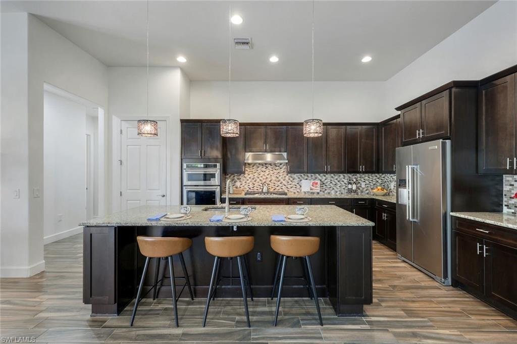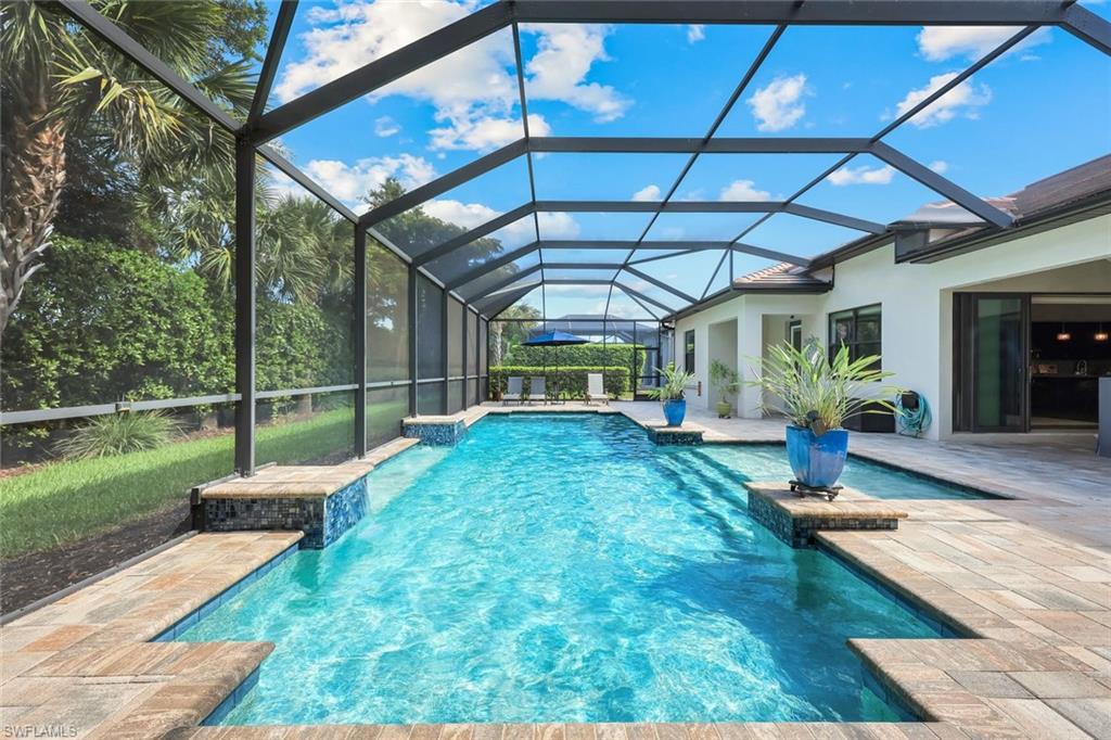 Super North Naples Home on a private Lot-UPGRADES GALORE, Custom Saltwater pool, with lounging shelf. Over 3800 feet of Living area. 4BEDROOMS -PLUS DEN. One of a kind Laundry Room that can accommodate a pantry, storage or even Crafts. Large bedrooms, walk in closets. WOOD LOOK Tile flooring, upgraded Kitchen appliances. OPEN Kitchen with counter and stools. Impact Glass, Best Location 30 minutes to the Airport, 5 minutes to the Grocery, Schools close by.