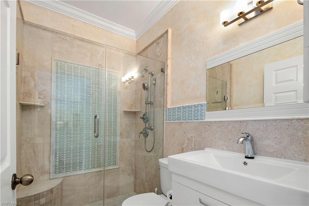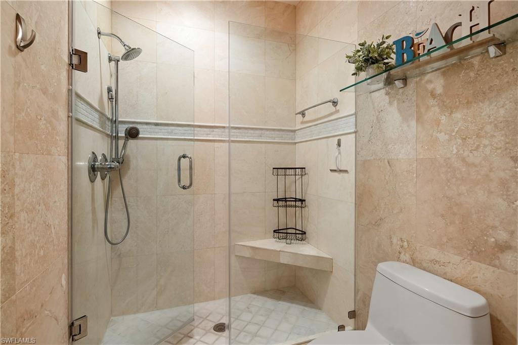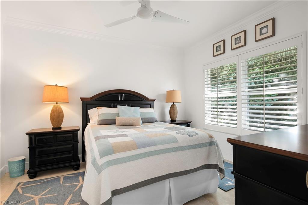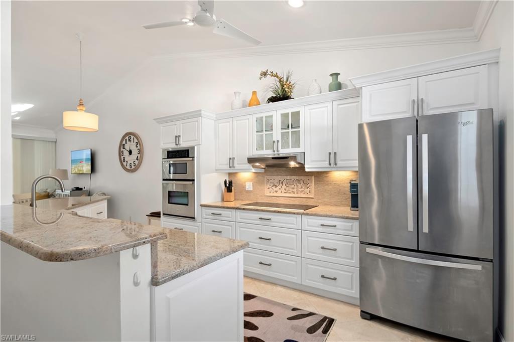 Welcome to Bradstrom Village in the heart of Lely resort community—an immaculately maintained, tastefully furnished 2 bedroom, 2 bath second-floor condo in a quiet 44-unit community just 6 miles from downtown Naples and the white sand beaches of Southwest Florida. This move-in-ready or rental-ready home features vaulted ceilings, a beautifully updated kitchen with granite countertops, double wall oven , stainless steel appliances, and a large breakfast bar, plus a spacious primary suite with dual vanities, a walk-in shower, and a large walk-in closet. The unit also offers a convenient laundry room with plenty of storage, and a screened-in lanai just off the family room, perfect for relaxing while overlooking the beautifully landscaped grounds. The building received a new roof and fresh paint in 2023—with no assessments—and the community pool was resurfaced in 2024. A covered carport and newer A/C (2021) add to the value. Bradstrom Village allows monthly rentals, is pet-friendly, and offers unbeatable access to golf, 5th Avenue dining and shopping, and the Naples Botanical Gardens.