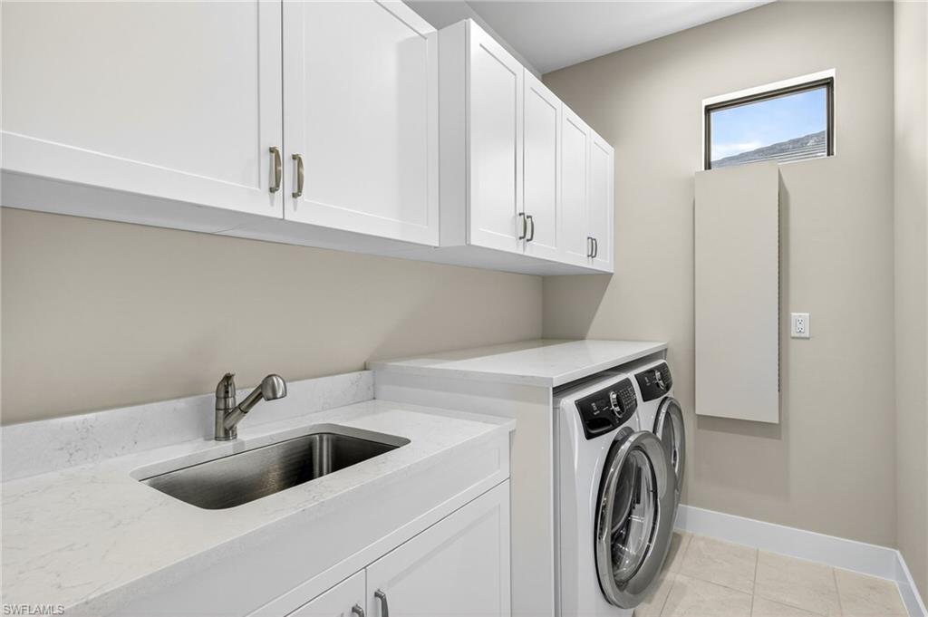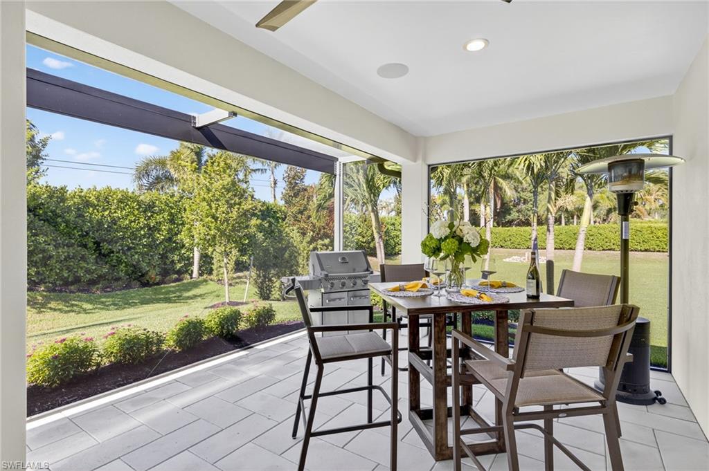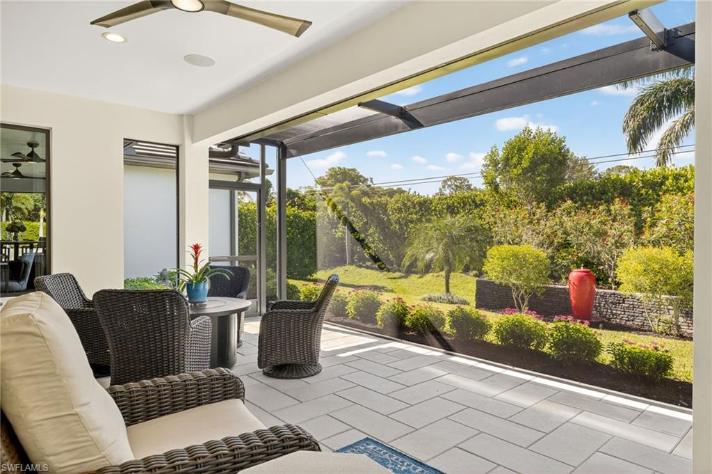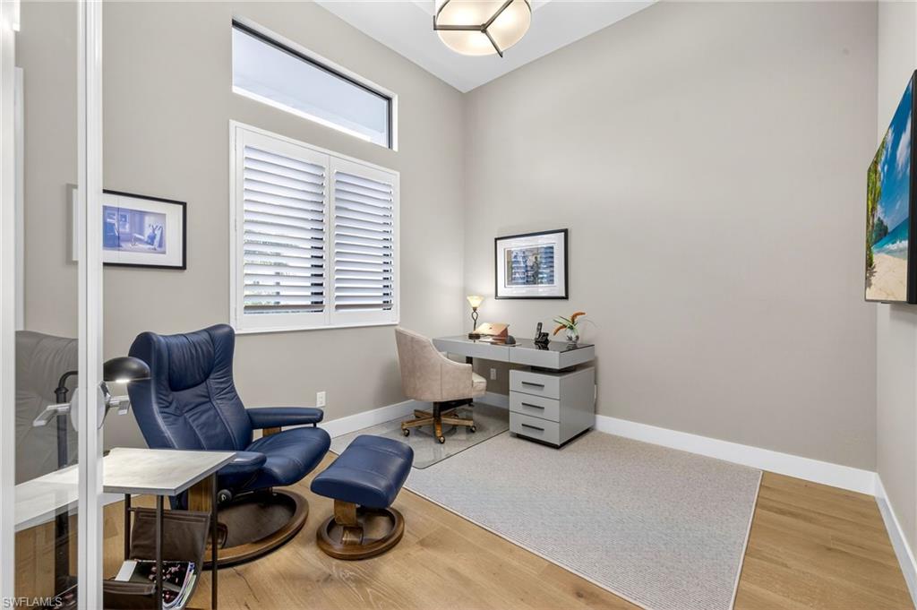 Welcome to Legacy Estates — a private, boutique gated enclave of just 13 semi-custom homes tucked away in a premier North Naples location WEST of I-75, near Livingston and Immokalee Road. Set on a beautifully landscaped, southern-exposure .25-acre lot, this 3-bedroom + den (or optional 4th bedroom), 2-bath single-family home built in 2020 by Gulfstream Homes offers elegant comfort, sophisticated finishes, and the ease of low-maintenance living. Step inside to an airy, light-filled open floor plan with soaring reverse tray ceilings, Mohawk engineered wood floors, and a professionally curated interior by Ecru & Ebony Design. A 16-foot upgraded sliding glass wall seamlessly connects the expansive great room to the extended covered lanai—perfect for enjoying tropical garden views, relaxing by the tranquil water feature, or envisioning a custom pool or spa addition. The chef’s kitchen is designed for entertaining with Bosch stainless steel appliances, gas cooktop, quartz countertops, and an expanded island enhanced with added storage and custom cabinetry. Enjoy the convenience of a buried 500-gallon propane tank, fueling the gas range, tankless water heater, built-in BBQ line, and future fire pit. Additional upgrades include insulated impact-rated windows and doors, Navien tankless water heater for endless hot water, a whole-house Kinetico water softener system, Lutron Caseta smart lighting and fan controls, expanded garage with epoxy flooring and wall-mounted opener, generator-ready electrical panel, and portable generator. Located just 1.5 miles from Seed to Table and under 5 miles to the white-sand Gulf beaches, this home combines privacy, modern design, and convenience in one of Naples' most sought-after areas. Live effortlessly and elegantly in a home that’s as smart as it is beautiful. Don't miss this rare opportunity to own newer construction at this price point in a prime North Naples location!