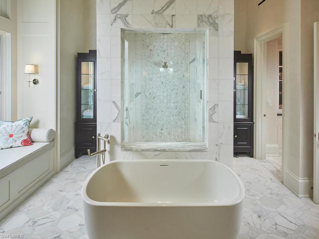 Located in the heart of Old Naples on a quiet street, this incredible opportunity awaits. Completed in 2020, this custom home by London Bay showcases unrivaled finishes and meticulous details designed by Romanza Interior Design, executed to the highest level of quality. The timeless eclectic architecture features eye-catching elements such as an arched glass front door, a faux Juliet balcony, thoughtfully placed medallions, copper gutters, gas-lit lanterns, and a mitered tile roof all complemented by the flawless landscape. Venetian plaster adorns the entire first floor, which features a beautifully designed kitchen, a butler's pantry with a wet bar, a spacious great room, and a formal dining area, all enhanced by custom built-ins. The spectacular primary suite provides direct access to the rear yard and includes two walk-in custom closets, along with a bathroom finished in luxurious materials. On the second floor, you will find two bedroom suites, a study that can serve as additional sleeping space, and a loft that leads to a spacious covered balcony. Step outside to discover a true oasis, complete with casual seating, a dining table under a well-lit trellis, and an intimate fire pit area surrounded by beautiful landscaping and stunning features in vibrant colors. Additional noteworthy features include automated shutters and screens, elevated generator and air-conditioning units, tankless water heaters, and an air-conditioned garage equipped with a car lift. The property also boasts a storage closet off the garage and the convenience of natural gas service. This home must be seen to fully appreciate the exceptional attention to detail. Sustained no damage during any recent storms and is conveniently located in close proximity to the beach and all that downtown Naples has to offer.