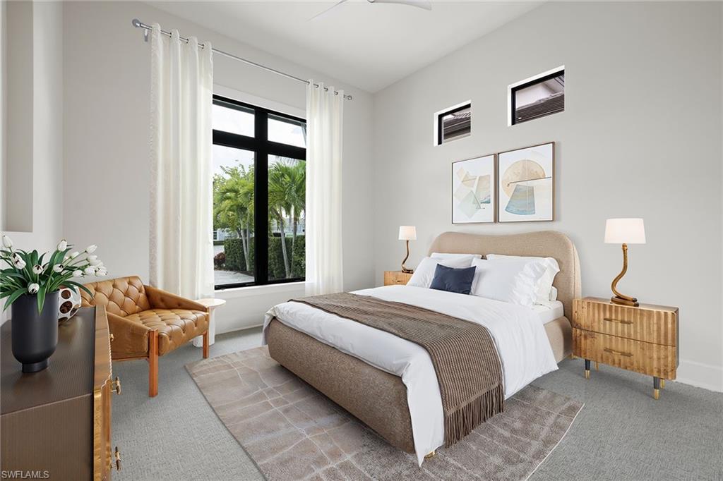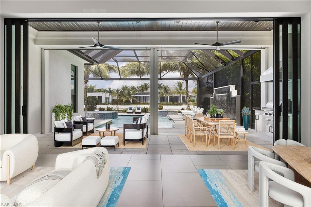 Imagine waking up to the shimmer of sunlight dancing across the lake, going out onto your private lanai with a coffee in hand, and watching the stillness of the water from your dock. This is everyday life in Miromar Lakes—where luxury meets leisure and every detail is designed to elevate your lifestyle. Behind the gates of one of Southwest Florida’s prestigious communities, this architecturally modern residence was built for those who love to entertain, relax and enjoy the water. Inside, clean lines and natural light fill the open-concept living space. The chef’s kitchen is a showstopper—ideal or quiet mornings or lively evenings with friends around the oversized island. A dramatic floating staircase and private elevator lead to serene upstairs suites, where lake views and luxury finishes set the tone. But it's outside where the magic happens. The saltwater pool and spa, outdoor kitchen, and fire pit are made for alfresco living. Motorized hurricane screens disappear at the touch of a button, creating a seamless flow between indoor comfort and outdoor freedom. And with your boat dock nearby, spontaneous sunset cruises and morning paddleboard sessions are part of your routine. The interior of this home has recently been painted. Additional features include impact windows and doors, expansive hidden pantry in the Kitchen, oversized front entry door, private balcony off the upstairs retreat and more! Beyond your doorstep, Miromar Lakes offers the lifestyle most only dream about—700 acres of freshwater lakes, a private beach, championship golf, tennis and pickleball, a full-service spa, waterfront dining and a vibrant social calendar. It’s not just a home. It’s a way of life. Note the photography includes virtual staging of the home.