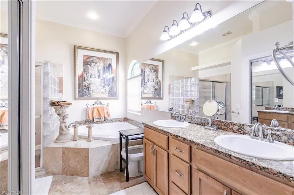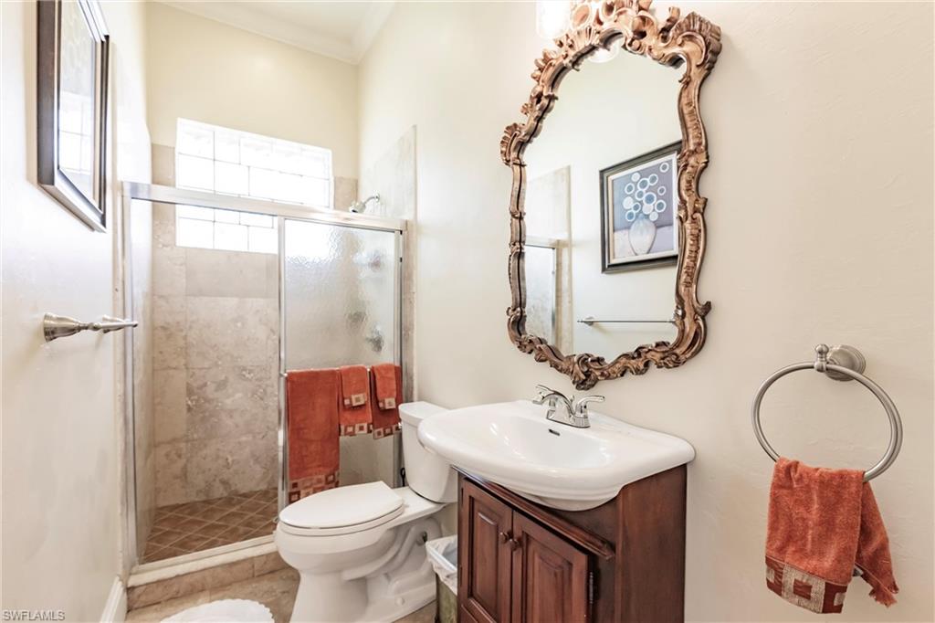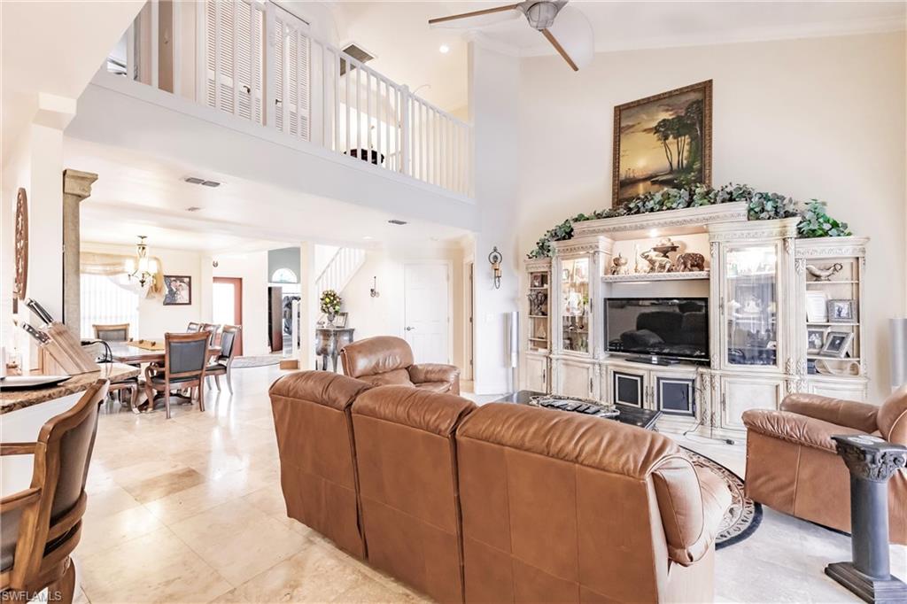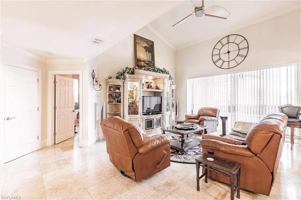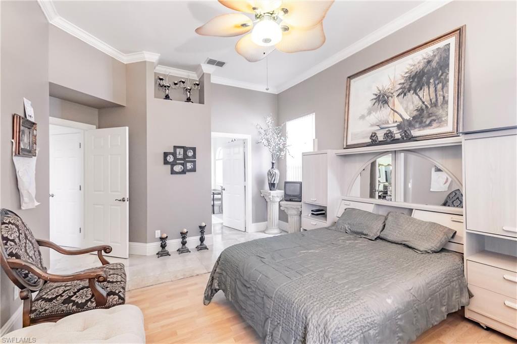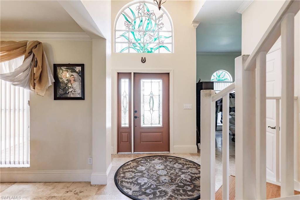 Big house with a big lake view. This two story, 4 bedroom plus den, 5 bathroom, lakefront pool home is the ideal size for a big family or visitors when they come to town. The property features two master bedrooms with plenty of bathrooms to accommodate everyone. Enjoy the beautiful sunset with the wide, long lakefront view from the large and well maintained pool area. The open floorplan lives up to the more recently built homes and feels inviting and spacious. The property is centrally located in Naples close to fine dining, shopping and schools. The community center of Crown Pointe has a large pool and many other amenities with low HOA fees. Beaches and sport arenas are only minutes away.