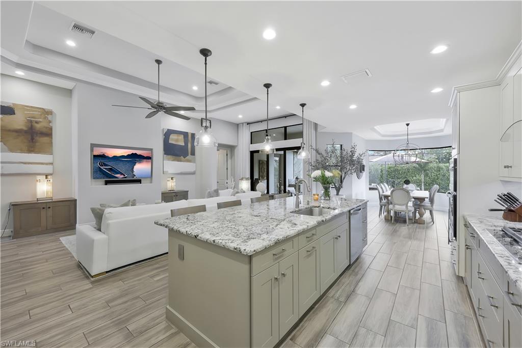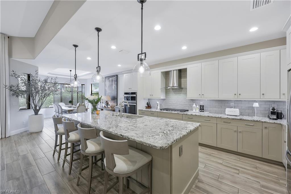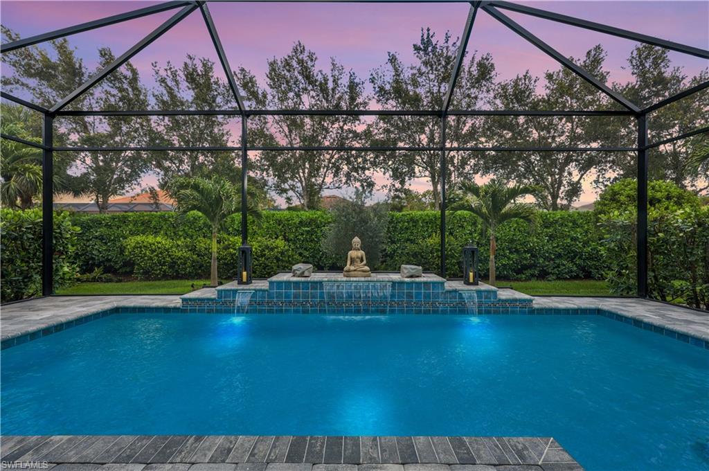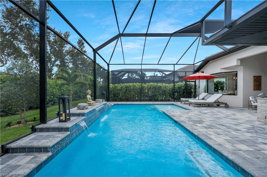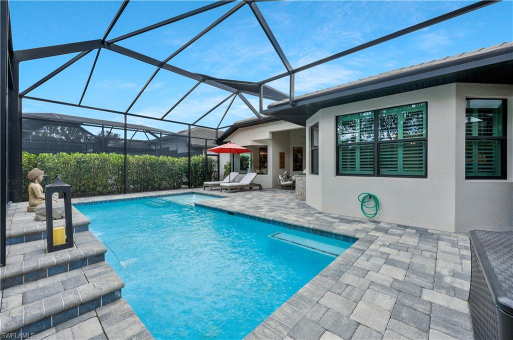 Tucked inside one of Naples’ most exclusive enclaves, this distinguished residence stands out as one of the most extensively upgraded homes ever available in Palazzo at Naples. The beautifully customized Toll Brothers property, built in 2018, welcomes you with impeccable curb appeal, top of the line finishes and fixtures, and impact glass doors and windows. The open concept Serino floorplan features exceptionally high ceilings, a columned entry, and a natural flow between indoor and outdoor living. The private lanai setting is an absolute dream with a saltwater pool, calming water features, an outdoor kitchen fit for a grill master, and covered lanai space complemented by a one of a kind firepit. Palazzo is one of the few communities in the area with natural gas, which fuels this home’s full house Generac generator, an invaluable feature for year round peace of mind. Style and luxury combine to make the perfect owner’s suite complete with dual walk in closets, built ins, floor to ceiling shower tile, gorgeous coffered ceiling work, and upgraded lighting accents. Even more enhancements include (1) a brand new A/C system installed in August 2025, (2) a new 2024 gas pool heater, (3) custom built interior plantation shutters, (4) Delta Heat outdoor appliances, (5) a Sonos indoor/outdoor speaker system, and (6) a new super sized washer and dryer. With no CDD and low HOA fees that cover all landscaping and common area maintenance, this stunning home provides both convenience and accessibility to beaches, shopping, dining, I-75, and top clubs Quail Creek Country Club, Quail Village Golf Club, and the Longshore Lake Club.