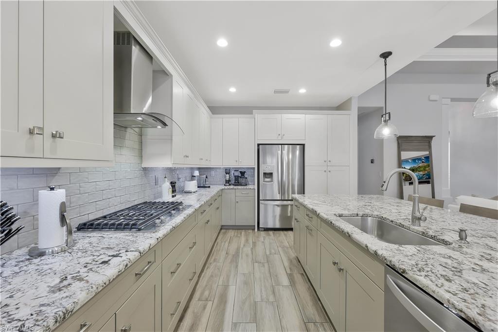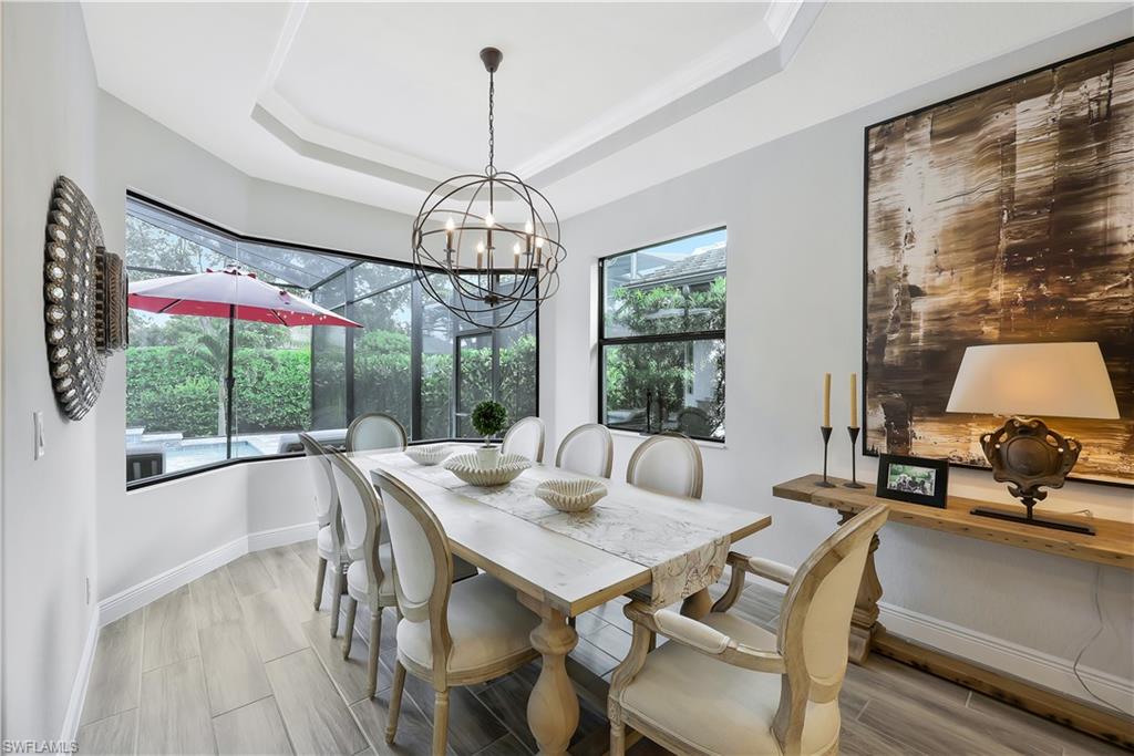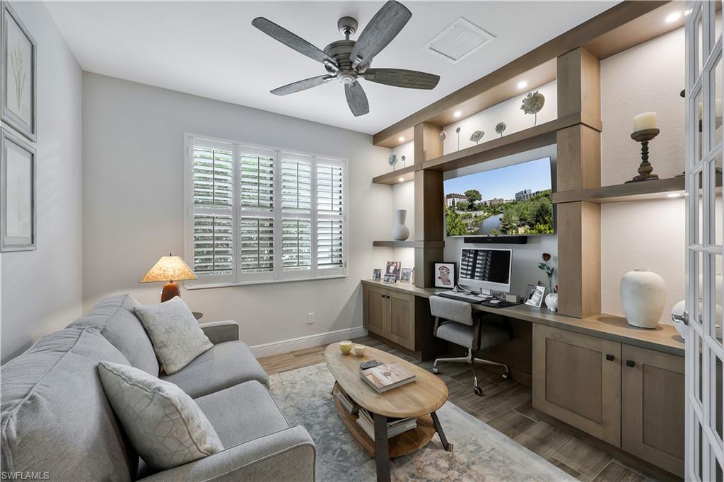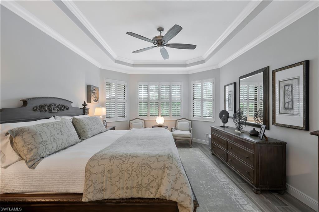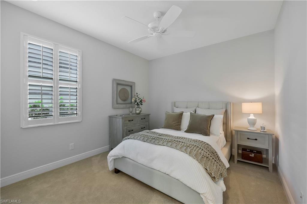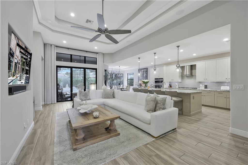 Tucked inside one of Naples’ most exclusive enclaves, this distinguished residence stands out as one of the most extensively upgraded homes ever available in Palazzo at Naples. The beautifully customized Toll Brothers property, built in 2018, welcomes you with impeccable curb appeal, top of the line finishes and fixtures, and impact glass doors and windows. The open concept Serino floorplan features exceptionally high ceilings, a columned entry, and a natural flow between indoor and outdoor living. The private lanai setting is an absolute dream with a saltwater pool, calming water features, an outdoor kitchen fit for a grill master, and covered lanai space complemented by a one of a kind firepit. Palazzo is one of the few communities in the area with natural gas, which fuels this home’s full house Generac generator, an invaluable feature for year round peace of mind. Style and luxury combine to make the perfect owner’s suite complete with dual walk in closets, built ins, floor to ceiling shower tile, gorgeous coffered ceiling work, and upgraded lighting accents. Even more enhancements include (1) a brand new A/C system installed in August 2025, (2) a new 2024 gas pool heater, (3) custom built interior plantation shutters, (4) Delta Heat outdoor appliances, (5) a Sonos indoor/outdoor speaker system, and (6) a new super sized washer and dryer. With no CDD and low HOA fees that cover all landscaping and common area maintenance, this stunning home provides both convenience and accessibility to beaches, shopping, dining, I-75, and top clubs Quail Creek Country Club, Quail Village Golf Club, and the Longshore Lake Club.
