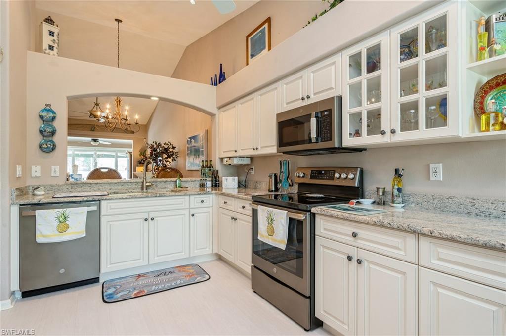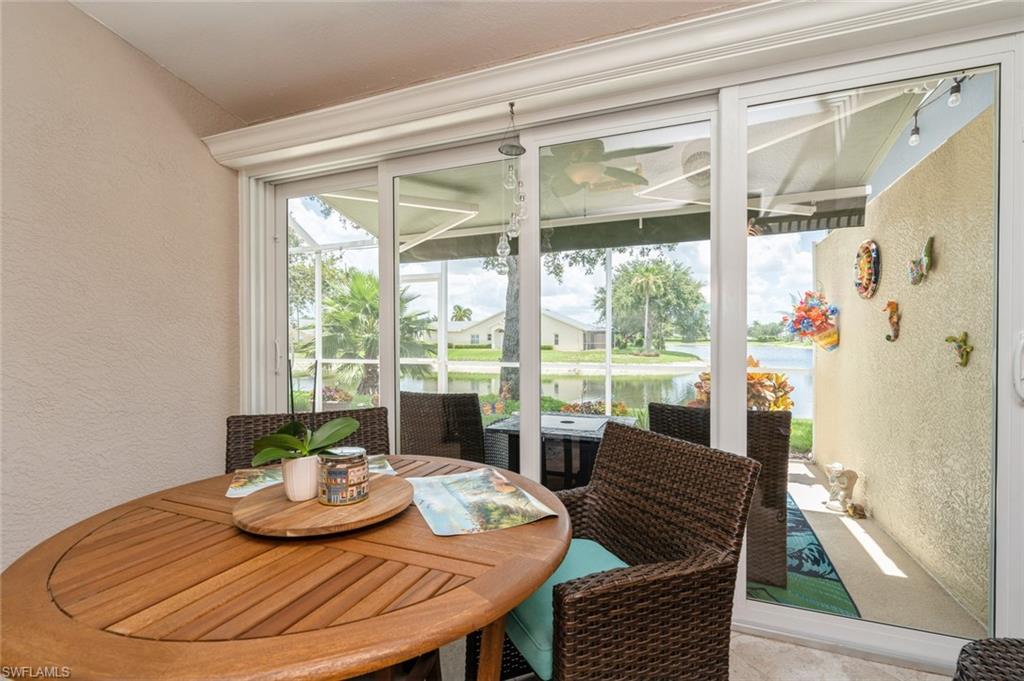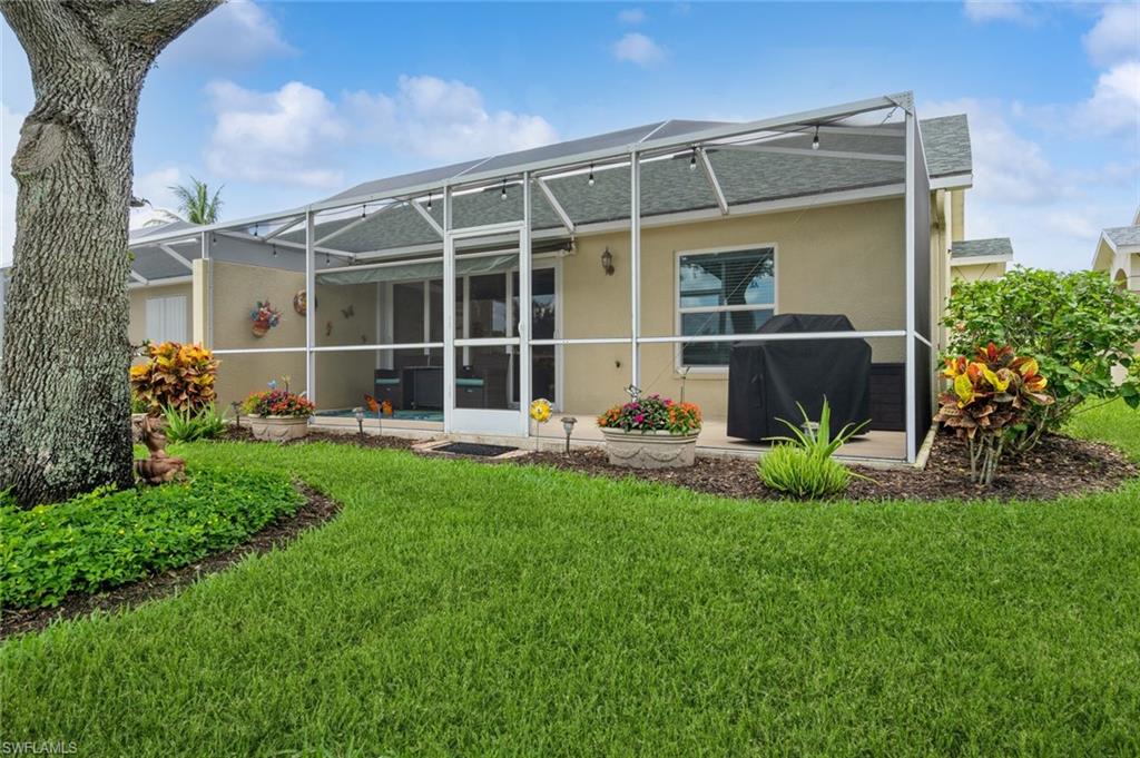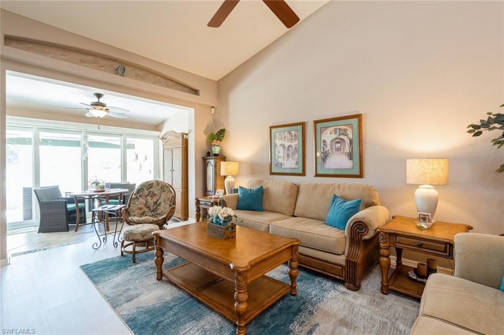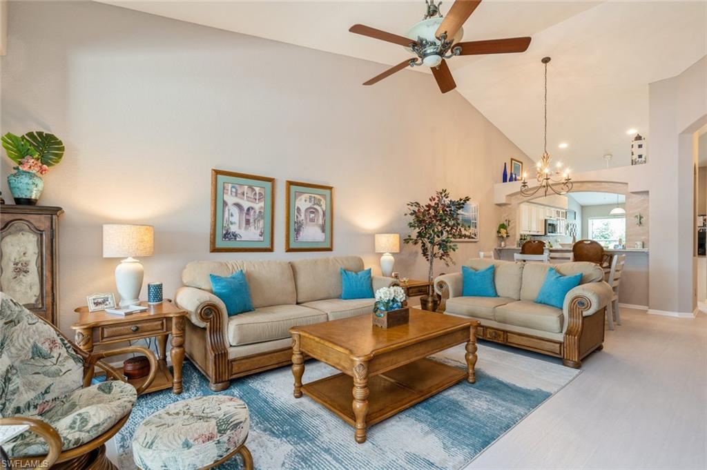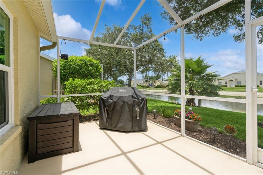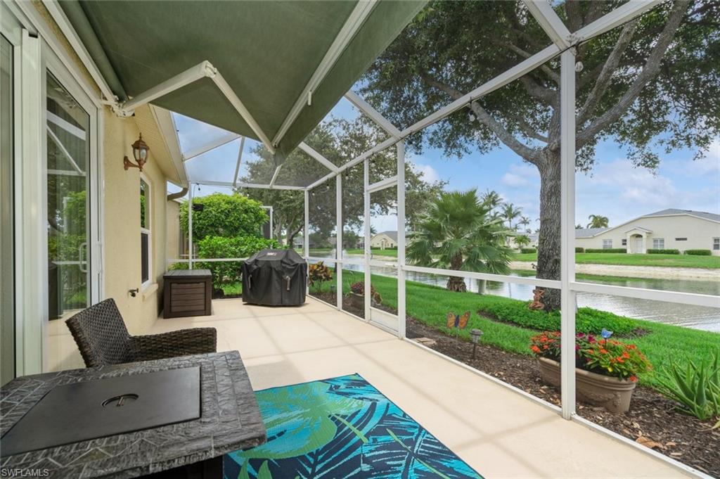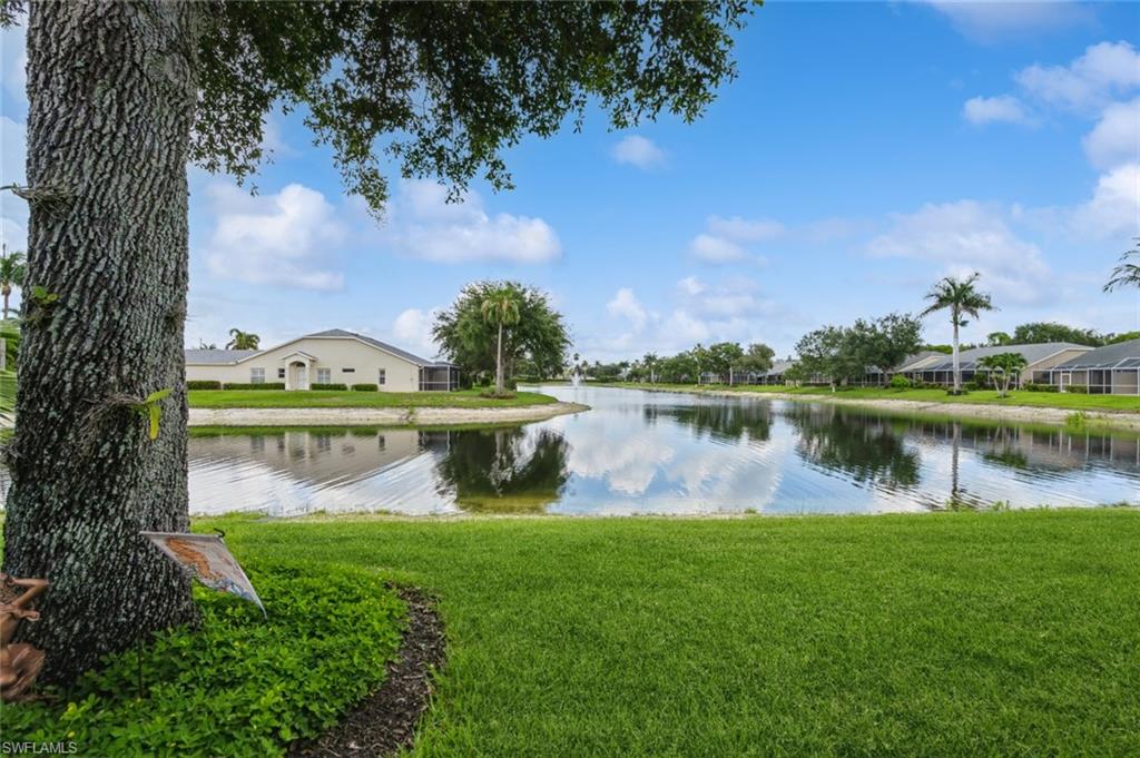 Welcome to this stunning 3-bedroom, 2-bath, 2-car garage lakefront villa that perfectly blends modern luxury with comfort. The residence boasts vaulted ceilings, neutral paint throughout, luxury vinyl plank flooring in main living area and bathrooms and a renovated kitchen with granite countertops. The living area has been extended and provides extra space for relaxation or entertaining with family and friends. In the master suite, you will find dual sinks, a large shower with built-in seat, plus his and hers walk-in closets. It also features a newer roof and AC installed December, 2017. All windows and sliders are category 5 hurricane impact windows, installed October, 2022. With a large lanai and breathtaking lakefront & 2 fountain views, you'll enjoy the ultimate indoor-outdoor living experience. This impeccably maintained property is nestled in the desirable Ibis Cove community, which spans 19 acres of serene lakes with illuminated fountains. The community amenities, including a clubhouse, community pool, spa, tennis and pickleball, billiards and fitness room which provides endless entertainment and relaxation possibilities. Nestled in a North Naples' top rated school district, your family will be in the vicinity of Gulf Coast High School, Oakridge Middle School and Laurel Oak Elementary. Close to shopping, dining and beaches, this home is a serene retreat or perfect family home in a prime location. Don't miss out on this fantastic opportunity to live the ultimate Naples lifestyle! Ibis Cove has one of the lowest HOA fees in Naples! Exterior freshly painted 7/2025, included in HOA fees.