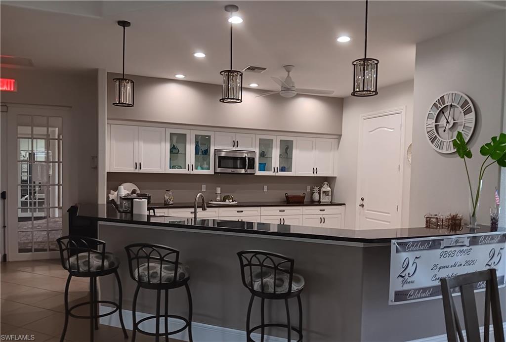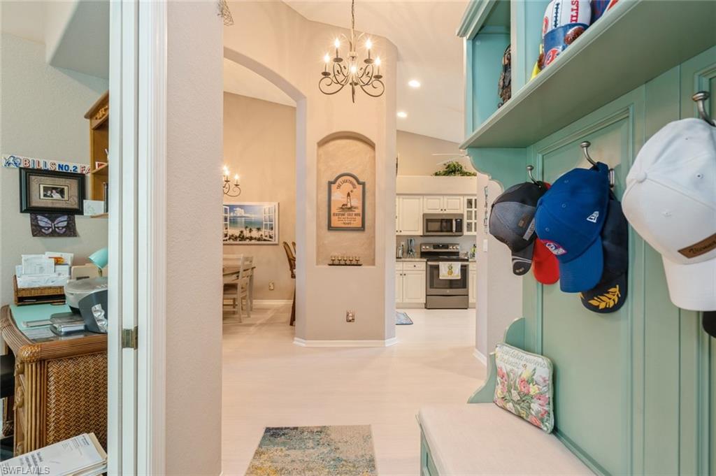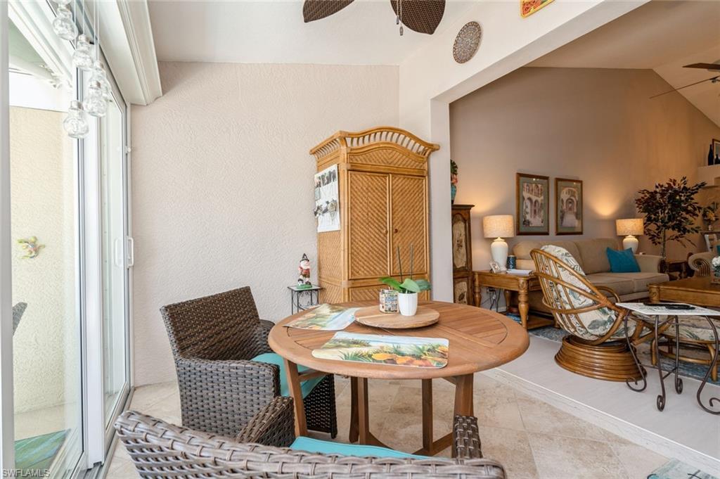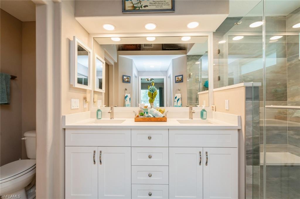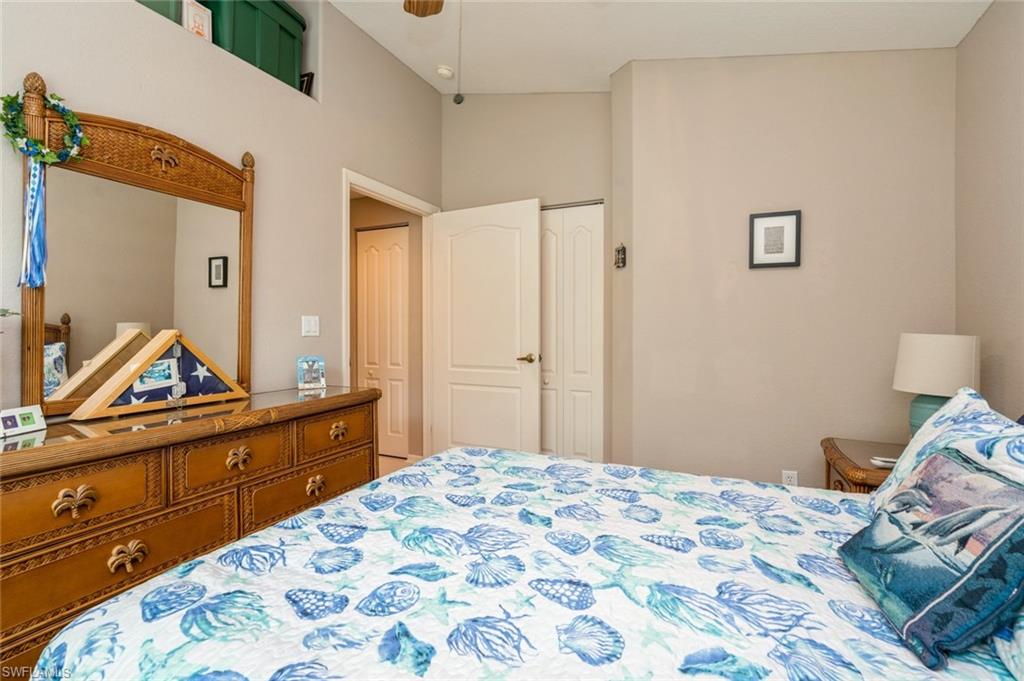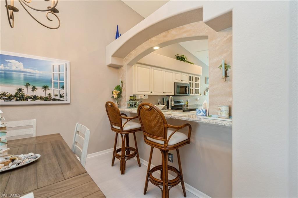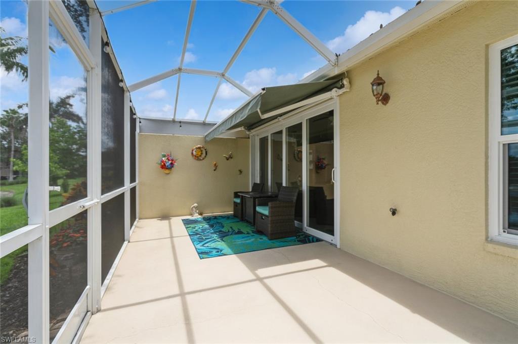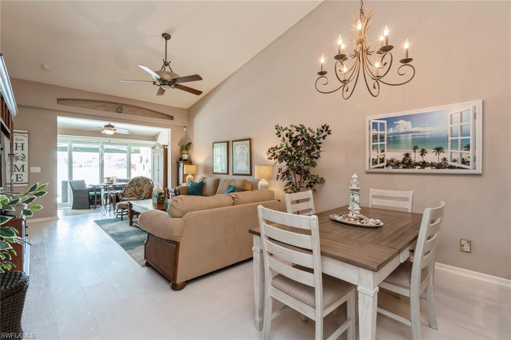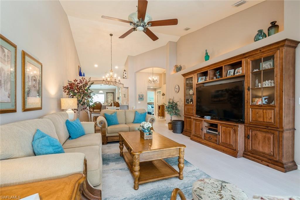 Welcome to this stunning 3-bedroom, 2-bath, 2-car garage lakefront villa that perfectly blends modern luxury with comfort. The residence boasts vaulted ceilings, neutral paint throughout, luxury vinyl plank flooring in main living area and bathrooms and a renovated kitchen with granite countertops. The living area has been extended and provides extra space for relaxation or entertaining with family and friends. In the master suite, you will find dual sinks, a large shower with built-in seat, plus his and hers walk-in closets. It also features a newer roof and AC installed December, 2017. All windows and sliders are category 5 hurricane impact windows, installed October, 2022. With a large lanai and breathtaking lakefront & 2 fountain views, you'll enjoy the ultimate indoor-outdoor living experience. This impeccably maintained property is nestled in the desirable Ibis Cove community, which spans 19 acres of serene lakes with illuminated fountains. The community amenities, including a clubhouse, community pool, spa, tennis and pickleball, billiards and fitness room which provides endless entertainment and relaxation possibilities. Nestled in a North Naples' top rated school district, your family will be in the vicinity of Gulf Coast High School, Oakridge Middle School and Laurel Oak Elementary. Close to shopping, dining and beaches, this home is a serene retreat or perfect family home in a prime location. Don't miss out on this fantastic opportunity to live the ultimate Naples lifestyle! Ibis Cove has one of the lowest HOA fees in Naples! Exterior freshly painted 7/2025, included in HOA fees.