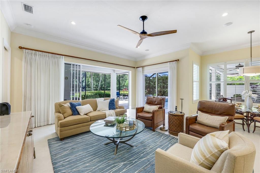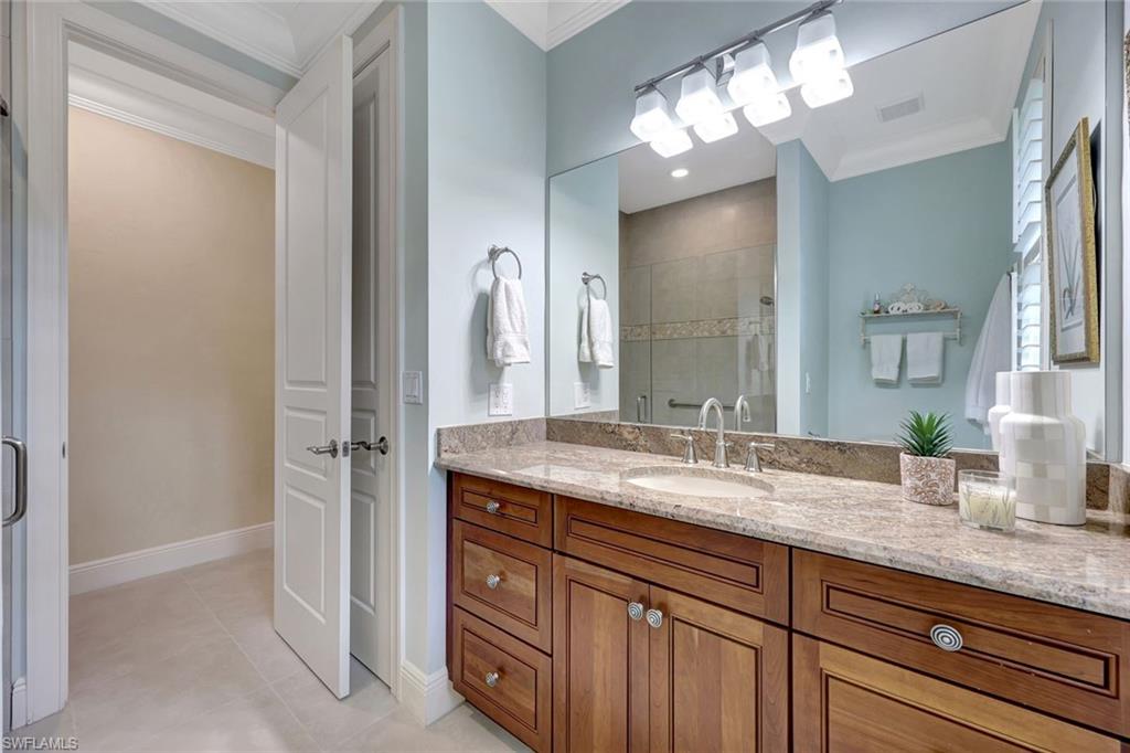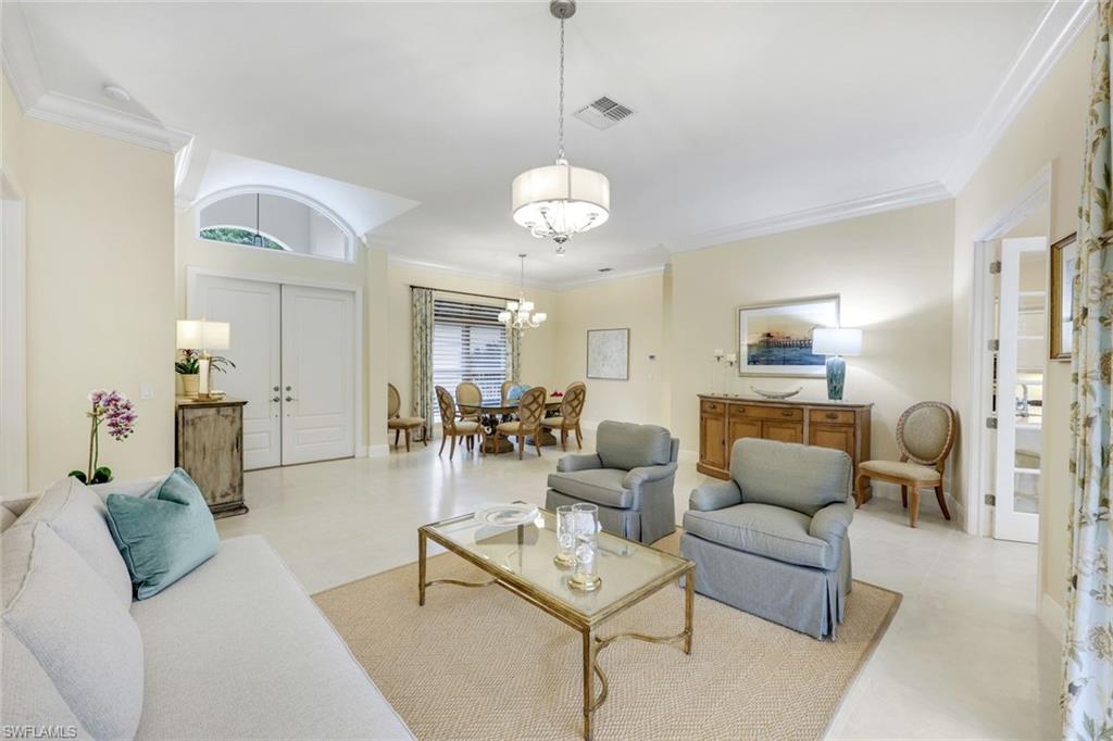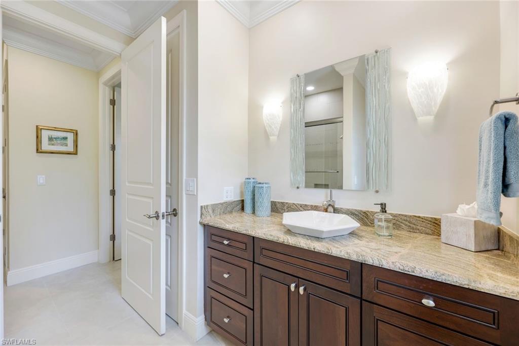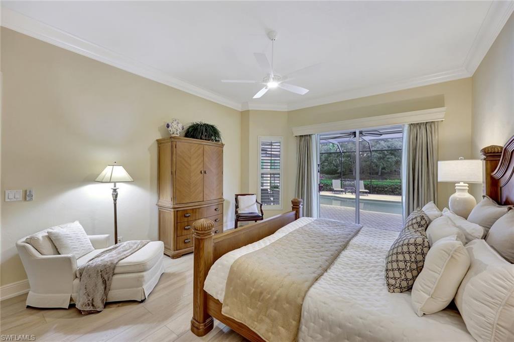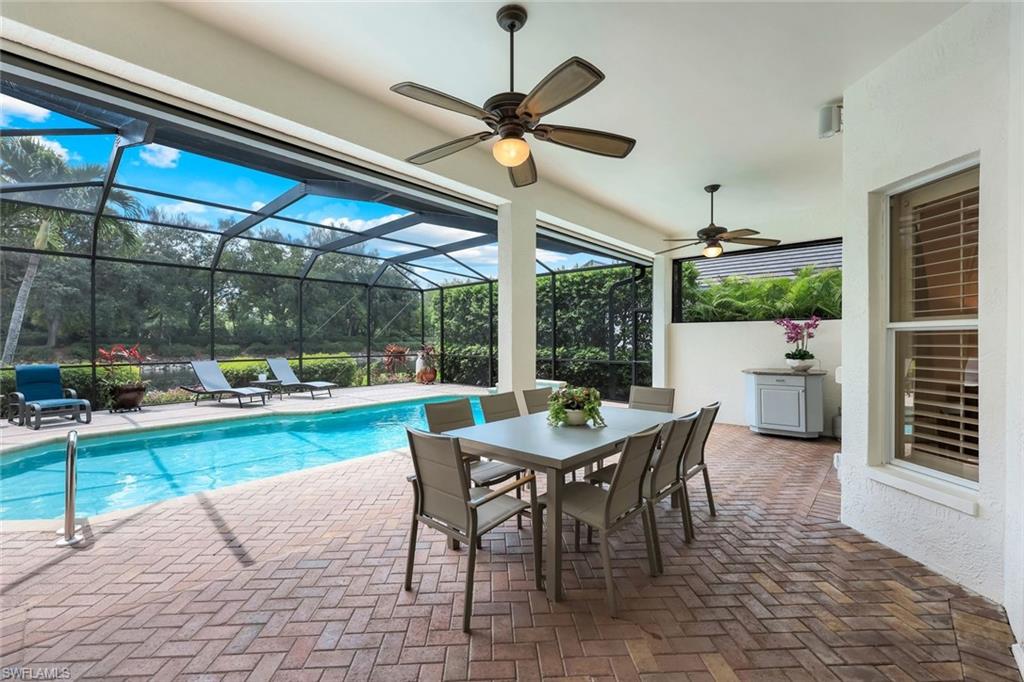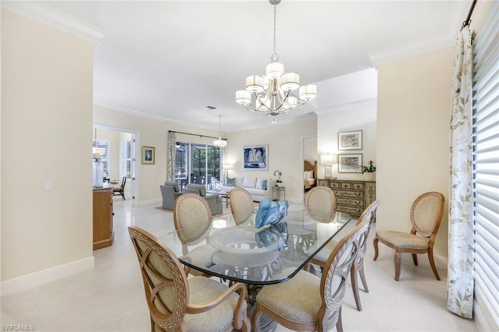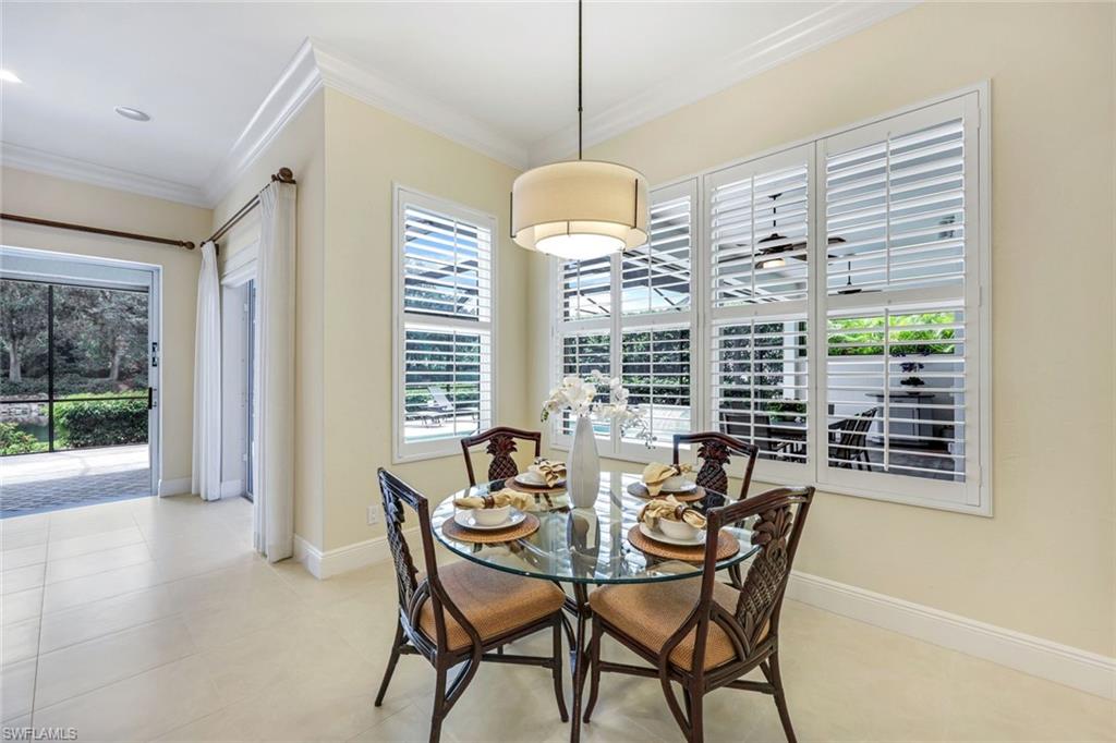 Nestled in the tranquil neighborhood of Arbor Glen within the Vineyards, this wonderful single-family home offers a harmonious blend of modern convenience and timeless character. Designed with attention to detail, the property invites you to a lifestyle of ease, elegance, and joy. Situated on a large, beautifully landscaped lot with long lake views, this home is perfect for entertaining or relaxing. The home has four spacious bedrooms, the primary bedroom has an expansive ensuite with dual sinks, a jetted tub, large shower, and separate WC. The other two guest bathrooms boast contemporary fixtures and fittings. The kitchen has quartz counters which flow into the light and bright family room, 24” tile floors lead seamlessly through the living areas. Other thoughtful updates include custom wood plantation shutters, eight-foot solid core doors, a home audio system with outdoor sound and recessed lighting. With high impact windows on the front and sides of the home and electric hurricane shutters along the back, there is peace of mind during the summer months. Additional noteworthy features include the solar heated pool, the oversized two car garage with epoxy floor, and built-in cabinets. The Vineyards is highly regarded as a Top Community in Naples. It offers a state-of-the-art Wellness Center w/spa, gym, and lap pool, two championship golf courses, tennis, and pickleball, all while being centrally located close to shopping, I-75, the beaches, and Vineyards Elementary School.