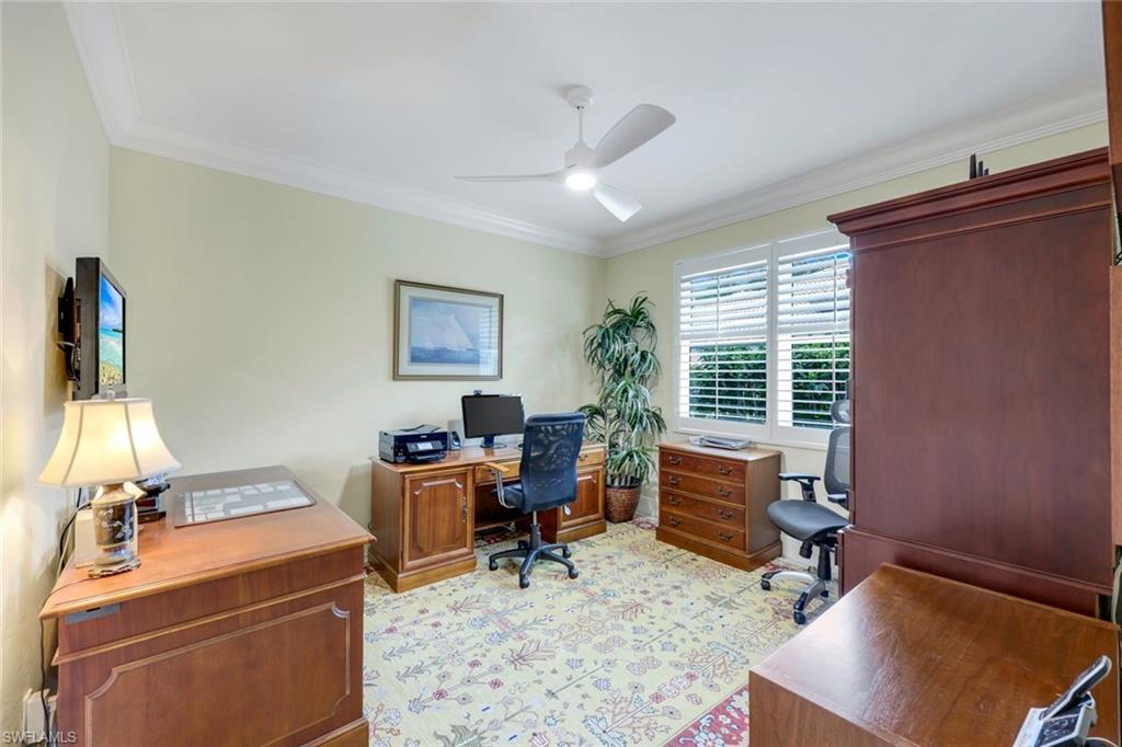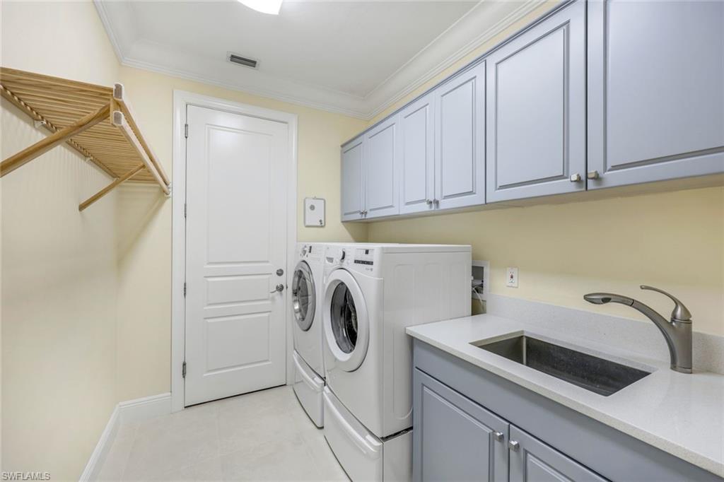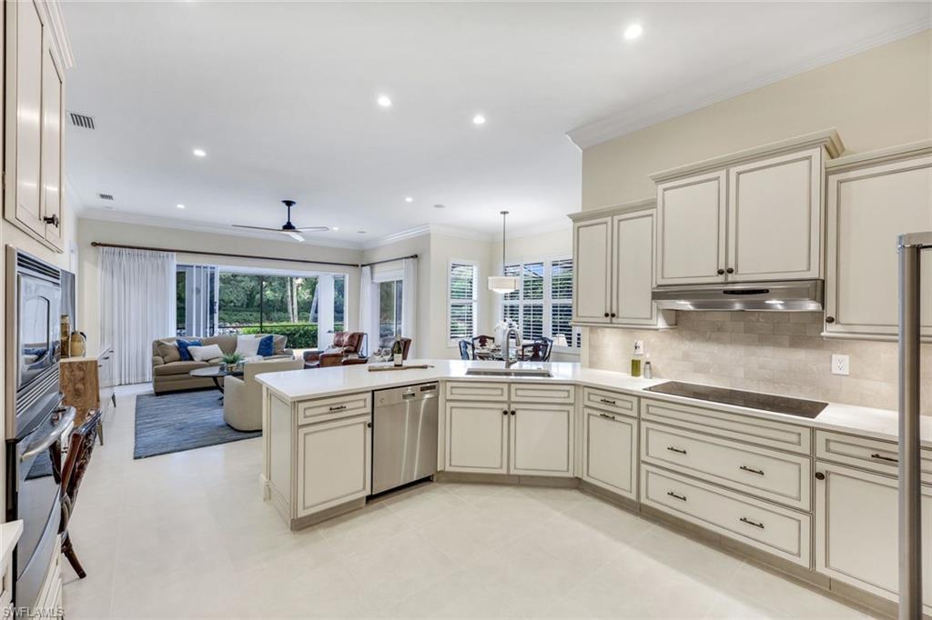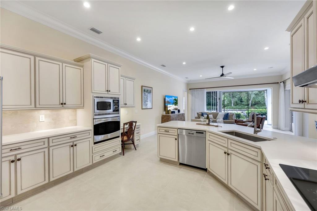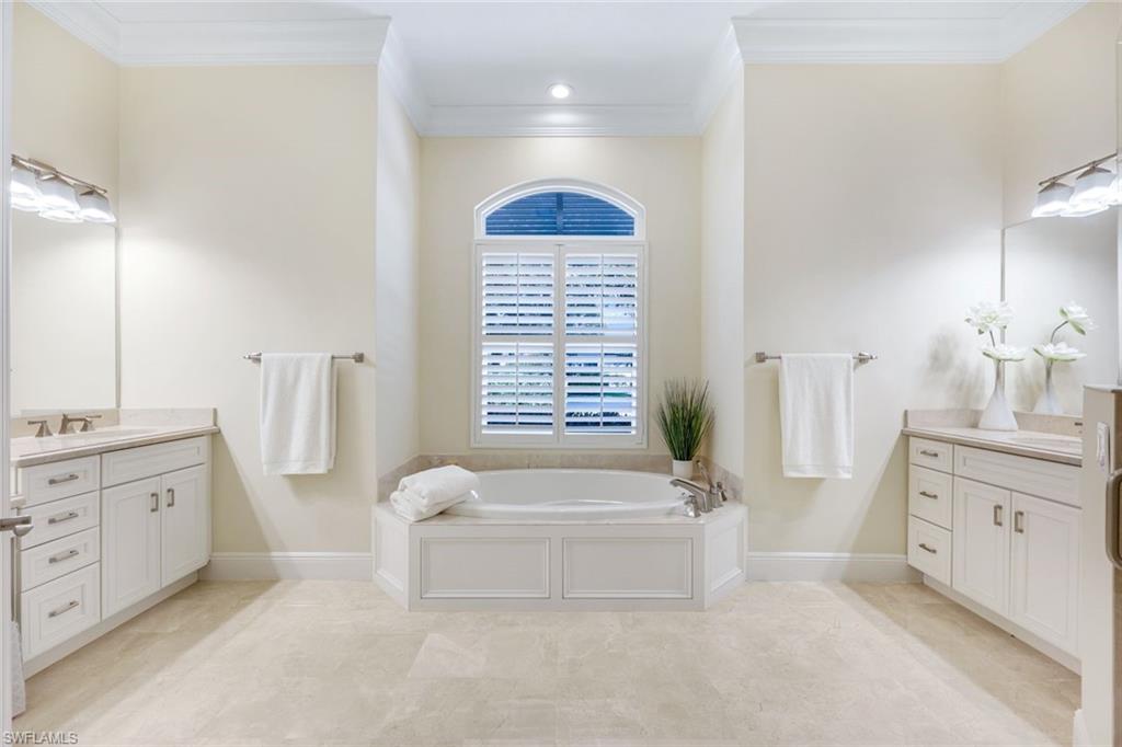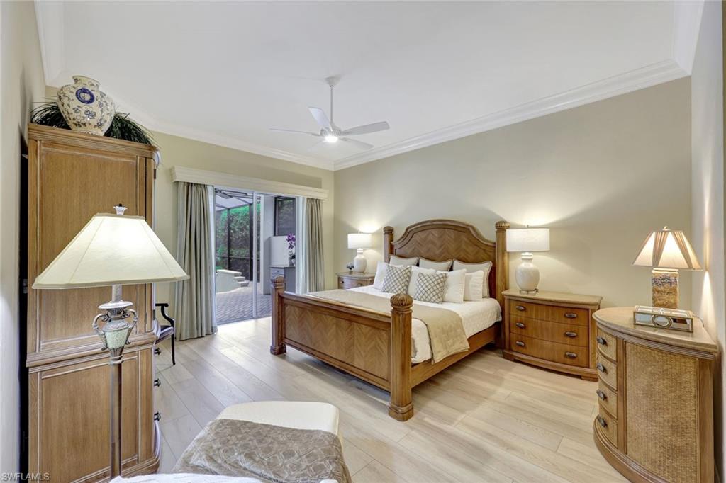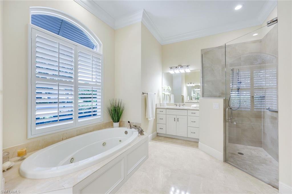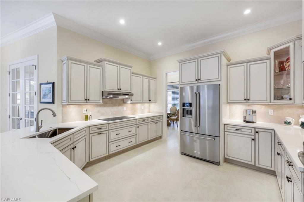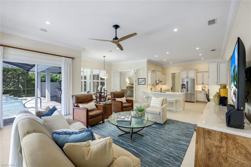 Nestled in the tranquil neighborhood of Arbor Glen within the Vineyards, this wonderful single-family home offers a harmonious blend of modern convenience and timeless character. Designed with attention to detail, the property invites you to a lifestyle of ease, elegance, and joy. Situated on a large, beautifully landscaped lot with long lake views, this home is perfect for entertaining or relaxing. The home has four spacious bedrooms, the primary bedroom has an expansive ensuite with dual sinks, a jetted tub, large shower, and separate WC. The other two guest bathrooms boast contemporary fixtures and fittings. The kitchen has quartz counters which flow into the light and bright family room, 24” tile floors lead seamlessly through the living areas. Other thoughtful updates include custom wood plantation shutters, eight-foot solid core doors, a home audio system with outdoor sound and recessed lighting. With high impact windows on the front and sides of the home and electric hurricane shutters along the back, there is peace of mind during the summer months. Additional noteworthy features include the solar heated pool, the oversized two car garage with epoxy floor, and built-in cabinets. The Vineyards is highly regarded as a Top Community in Naples. It offers a state-of-the-art Wellness Center w/spa, gym, and lap pool, two championship golf courses, tennis, and pickleball, all while being centrally located close to shopping, I-75, the beaches, and Vineyards Elementary School.