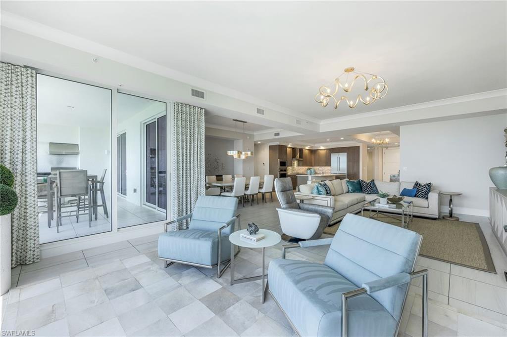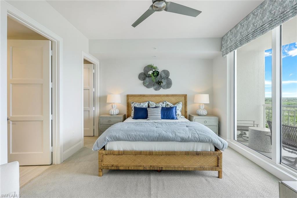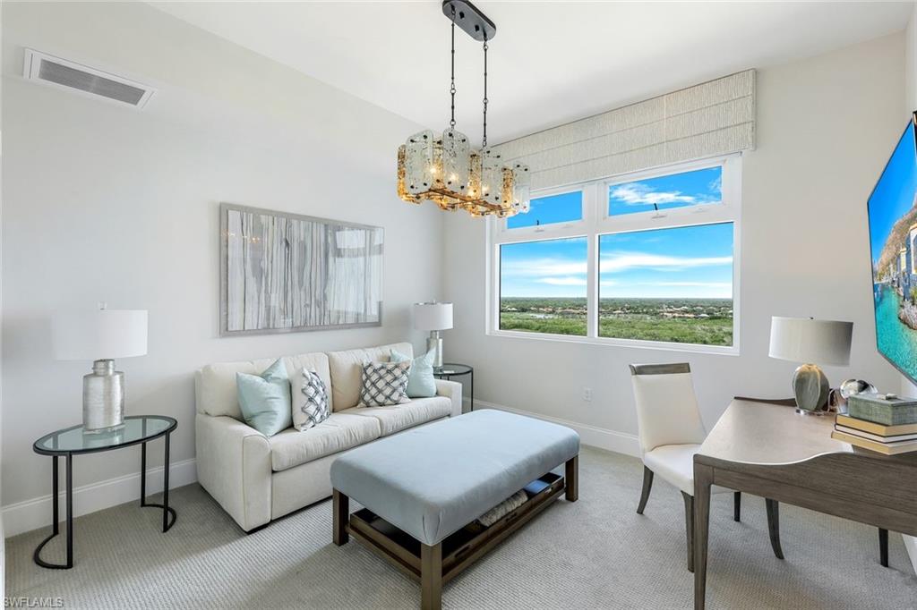 Upon entering this home (WITH A PRIVATE 2 CAR ENCLOSED GARAGE), you will be captivated by the many upgrades, the open and airy space, the tall ceilings & the MAGNIFICENT VIEW! This beautifully decorated TURNKEY home in the sky will surely keep your attention. Located on the 14th floor, with three bedrooms and three and a half baths, this home is oh so spacious, with a LARGE open lanai to the west and an open balcony to the east. The views from the great room and from the primary bedroom feature gorgeous year-round sunsets. Floor-to-ceiling windows in the dining room, the living room and the primary bedroom! The living room is large yet cozy with a sitting area overlooking the Gulf. Both the dining room and the primary bedroom offer sliding doors that lead out to the lanai. Enjoy indoor/outdoor living at its finest! Keep the doors open throughout the winter months, while preparing meals in your gourmet kitchen; the kitchen offers quartz countertops, a gas cooktop, stainless appliances and a beautifully designed powder room just around the corner. Enjoy dinner in the dining area, at the large kitchen island or on the gorgeous lanai where you will find a gas grill. Morning coffee or an evening cocktail on the lanai? Either beverage is the perfect accompaniment to the unmatched view! The primary suite is located on the western side of the home and two additional bedrooms with ensuite bathrooms are located on the eastern side of the home. You and your guests will enjoy the privacy this split floor plan provides. There is a private elevator lobby just outside the front door. Upgrades include Sonos speakers, Watercop leak detection system throughout, hurricane shutters, window blinds, hot water heater and washer and dryer and much more! The building amenities include a luxurious lobby, a fitness center, a theatre, stunning resort style pool & more! Spend the day at the Beach Club, playing tennis or golf, or just lounging at the pool. With a year-round sea breeze, you will never want to "head north" again! The perfect home, located in the perfect community. Bonita Bay offers an array of exceptional amenities, including a private beach club, kayaking, canoeing, pickleball, tennis, and multiple community parks. Explore over 12 miles of walking and biking paths, or take advantage of the full-service marina and restaurant. Golf enthusiasts will appreciate the FIVE on-site courses, several dining options, a state-of-the-art fitness center, and more--all available with club membership (additional fees apply). Located just a short drive from world-class dining, shopping, beaches, and nature preserves, you'll also enjoy easy access to the burgeoning downtown Bonita Springs and downtown Naples. RSW International Airport is conveniently nearby!