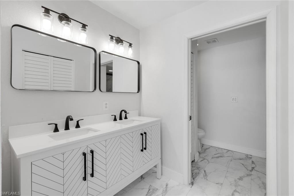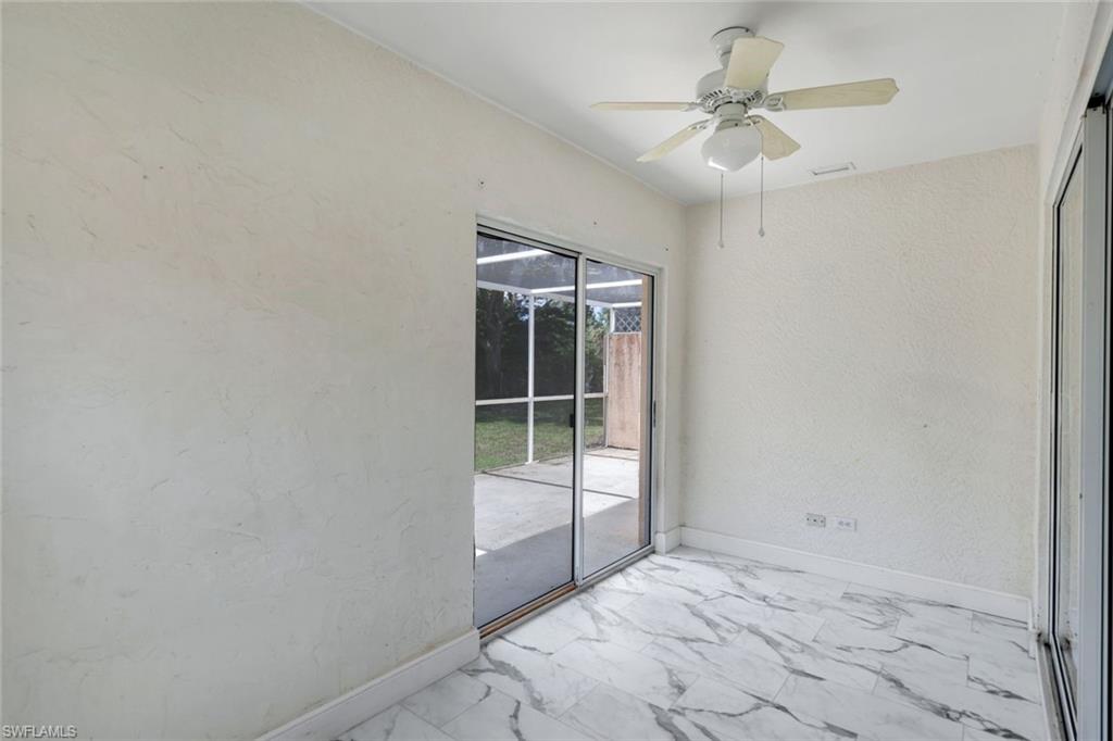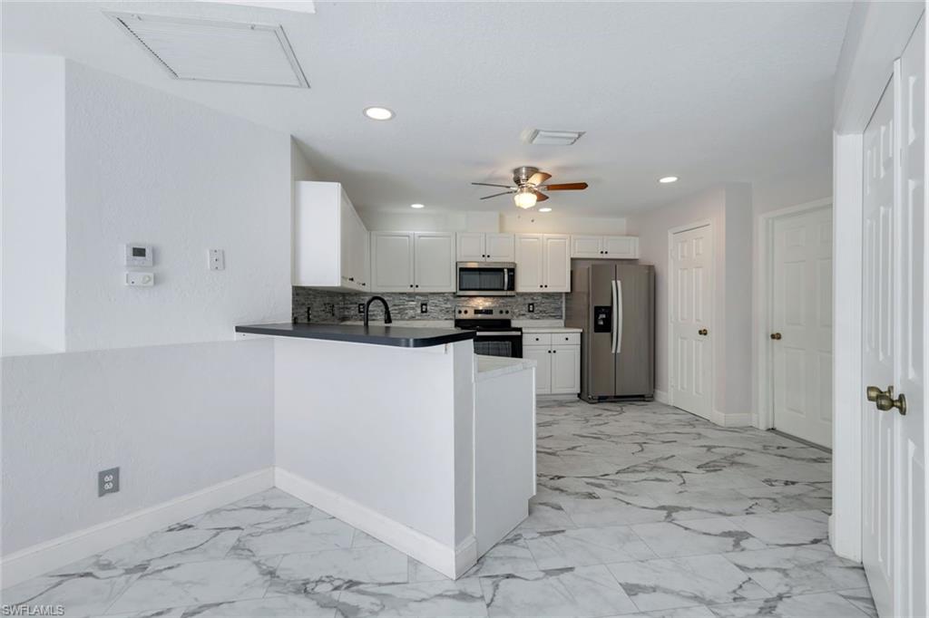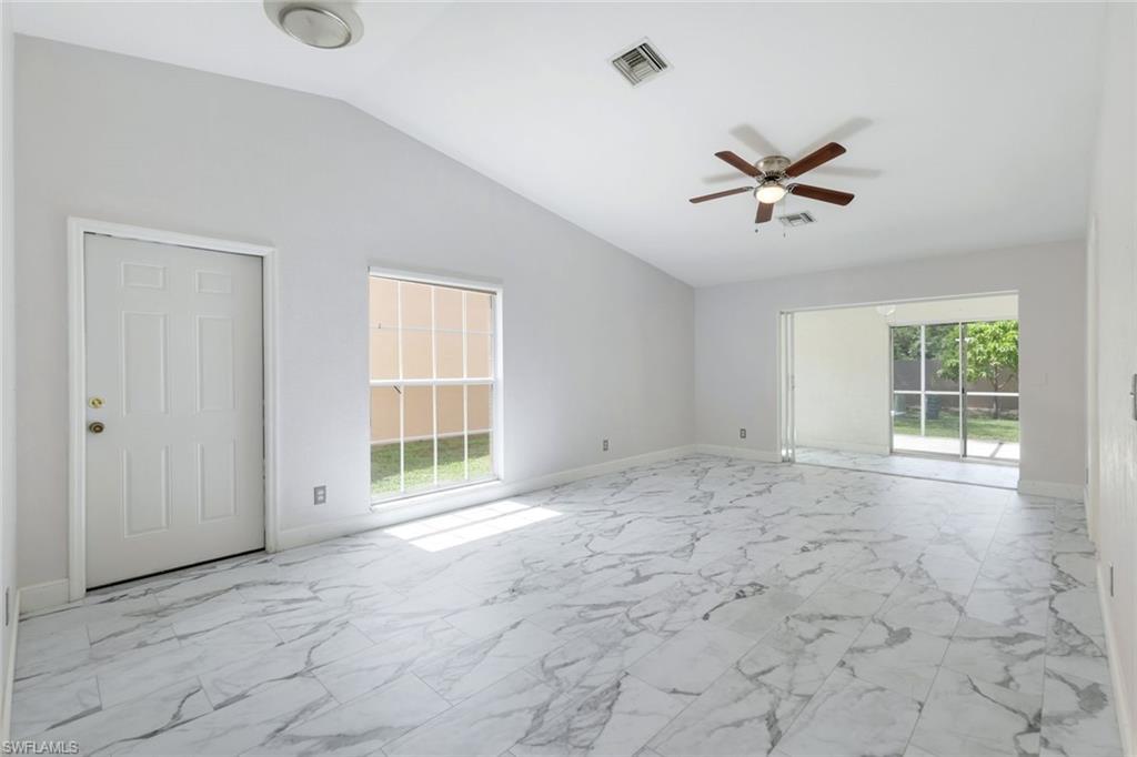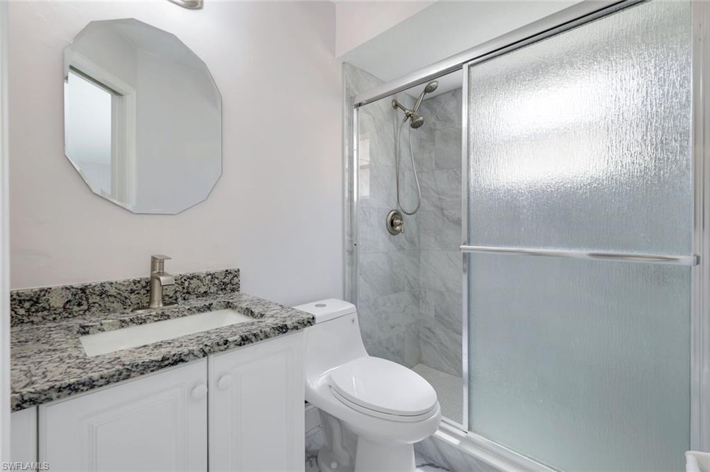 Newly Updated Twin Villa in the Heart of Bonita Springs! This twin villa lives like a single-family home and is tucked away in a lush tropical paradise, offering the perfect blend of comfort, privacy, and style. As you walk up the inviting sidewalk, you’re welcomed by a secluded entrance that sets the tone for the peaceful retreat that awaits inside. Step into an open-concept floor plan where the great room flows seamlessly into the dining area—ideal for entertaining or cozy evenings at home. Just off the living room, a flex space with sliding doors makes a great home office, hobby room, or additional lounging area. Enjoy the Florida lifestyle from your spacious enclosed lanai—a tranquil spot to relax with your morning coffee or unwind with a glass of wine in the evening breeze. Oversized primary suite leads to renovated bathroom featuring dual sinks and a tiled walk-in shower. Major system updates include a new roof, AC, and water heater within the last 2–3 years. Located just minutes from downtown Bonita Springs, you'll enjoy convenient access to new restaurants like Sugar Shack and The Rooftop, along with bars, boutique shops, and local favorites. The community offers one of the lowest HOA fees in the area and features an Olympic-size resort-style pool—perfect for both laps and leisure. Whether you're looking for a full-time residence or a seasonal escape, this home checks all the boxes. Schedule your private showing today!
