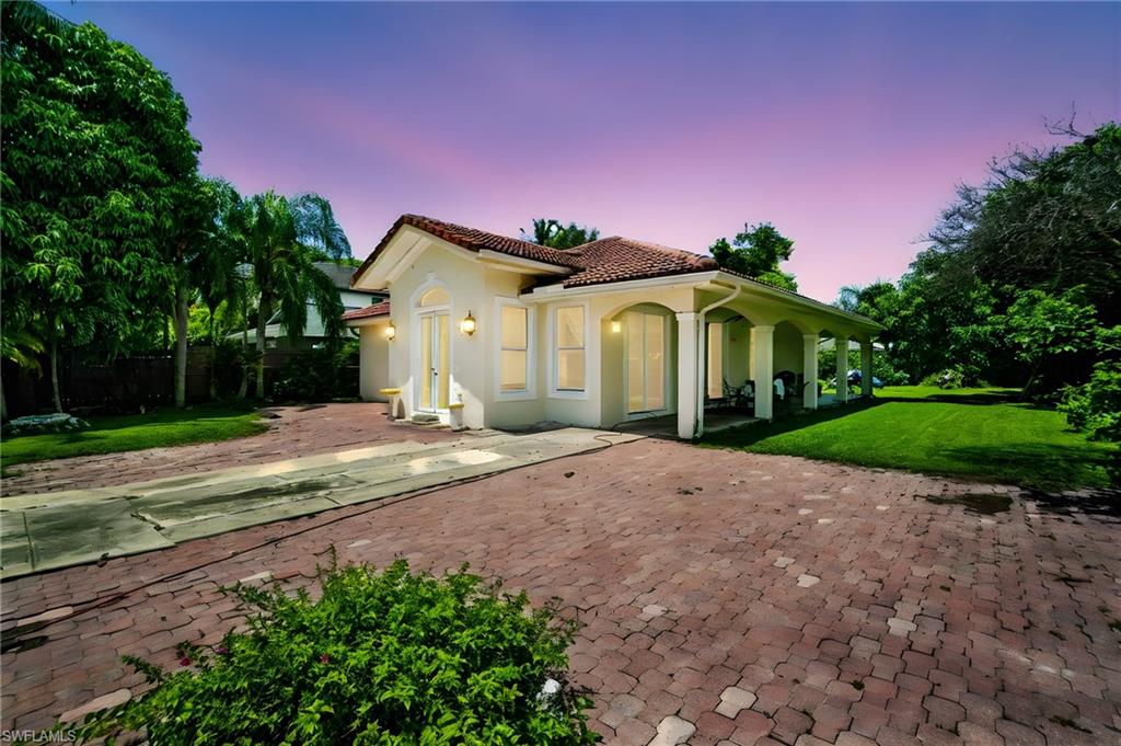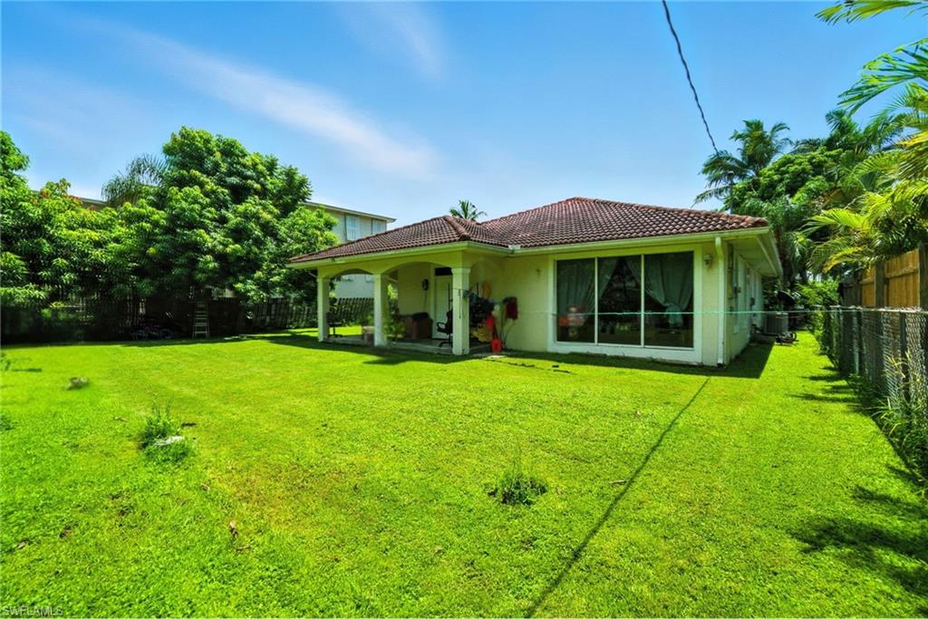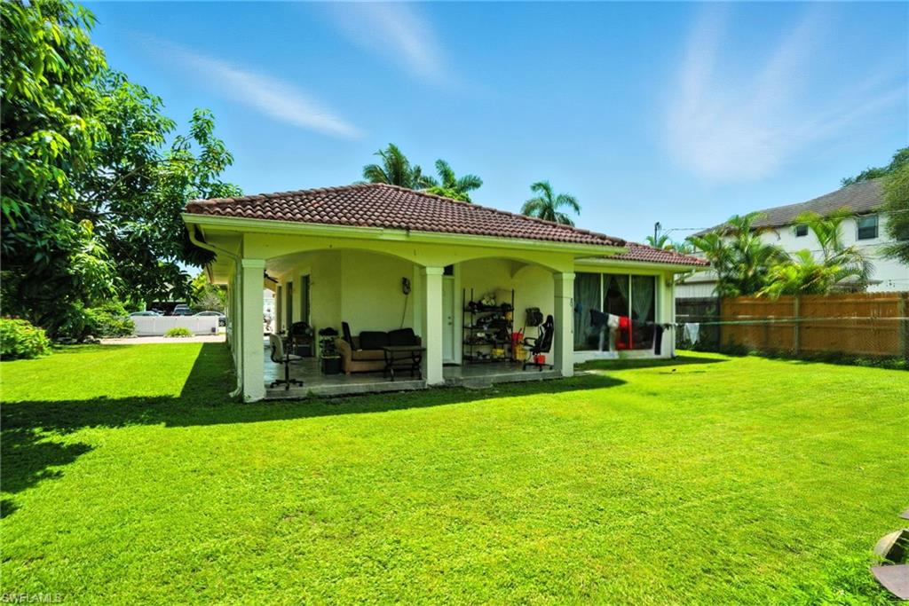 INVESTMENT OPPORTUNITY! OVERSIZED FENCED LOT – PRIME LOCATION NEAR 5TH AVE! This well-maintained 4-bedroom, 3-bath home sits on a fully fenced .25-acre lot with an electric gate, just 3 miles from Downtown Naples. A separate IN-LAW SUITE with private entrance and full bath provides excellent investment or multigenerational potential. The kitchen features quartz countertops, a glass tile backsplash, and updated appliances, while the home also offers fresh exterior paint and tile flooring throughout. No rental restrictions make this an excellent full-time residence or income-producing property in a prime location. The spacious backyard with lush landscaping, mango trees, hibiscus, and plenty of room for outdoor enjoyment or even a future pool—without HOA restrictions. The wide side yard and EXTRA PARKING will easily accommodate a trailer or boat storage off the driveway. Built in 2007 with solid CONCRETE BLOCK construction, the home has no storm damage and a large wraparound porch perfect for outdoor living. Don’t miss the chance to own a versatile Naples property that blends comfort, convenience, and income potential—all just minutes from the beach and 5th Ave. THIS PROPERTY QUALIFIES FOR A 1% LENDER INCENTIVE IF USING PREFERRED LENDER, INQUIRE FOR MORE DETAILS**