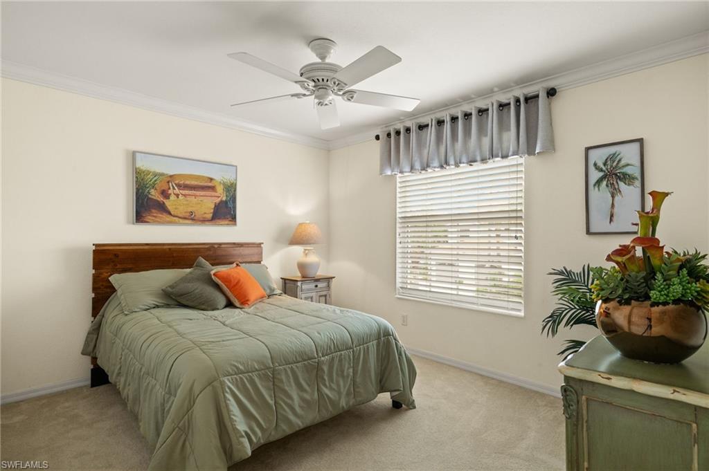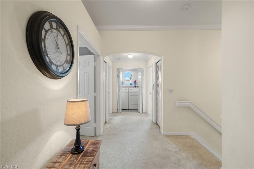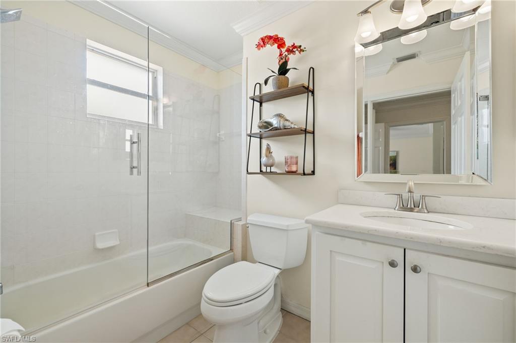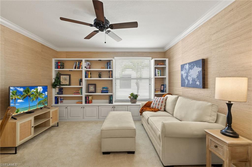 Stunning 2nd floor coach home in desirable Glen Eagle Golf & Country Club with Social Membership included! This beautifully updated 2 bedroom + den, 2 bath property features volume ceilings, crown molding, and abundant natural light throughout. The spacious kitchen offers 42” white cabinets with cocoa glaze, quartz countertops, and stainless-steel appliances. Both bathrooms have been tastefully updated, and custom built-in cabinetry creates the perfect work-from-home space. Additional updates include a newer A/C system for year-round comfort. Enjoy the convenience of living just minutes from Naples’ famed 5th Avenue shopping, dining, art galleries, and the Gulf’s pristine beaches. This is your opportunity to enjoy resort-style living with luxury, style, and convenience.