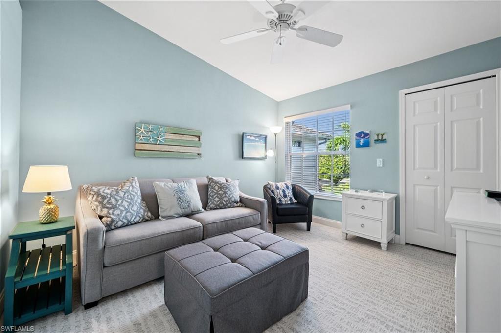 The seller is relocating and has priced their home to sell. Ready for your enjoyment the impeccably cared for home is unmatched in comparison. In walking distance to included amenities at The Club your new home offers a sunny & bright end unit experience with windows on all four sides, a full size 2 car garage and more storage than most Florida condos. The flexible floor plan includes 3+ bedrooms, a den/office flex room, and 2 master suites with abundant closet & storage space, providing options for owner storage if rented during the season. Be sure to view the Floor plan, the Lifestyle video and the second video of the Club. All owners have social membership amenities included without the obligation of golf. Social membership includes: Multiple dining venues inside & outside... Tennis Centre features eight updated Har-Tru lighted courts and multiple tennis programs & three excellent pickleball courts. Fitness Complex is equipped with state-of-the-art machinery and includes a Day Spa, an outdoor basketball court, Bocce and croquet courts, and a children's playground. Various exercise classes and personal training options are available. The heated Junior Olympic pool is accessible year-round, complemented by The Island Bar offering food and beverages. An outdoor Chickee Hut, complete with fans, music, and Wi-Fi, is located outside the Fitness building. The Club at The Strand offers optional various additional memberships with 27 holes of unique and challenging golf courses featuring six sets of tees. Golf members can practice on the aqua range, choose from two putting greens, and use the bunker/short game area. The newly developed Golf Academy is available to assist you in improving your game.