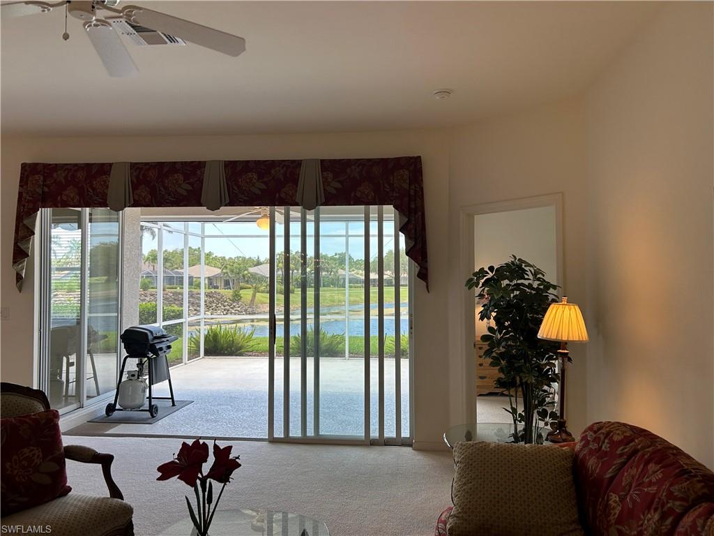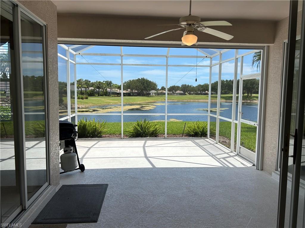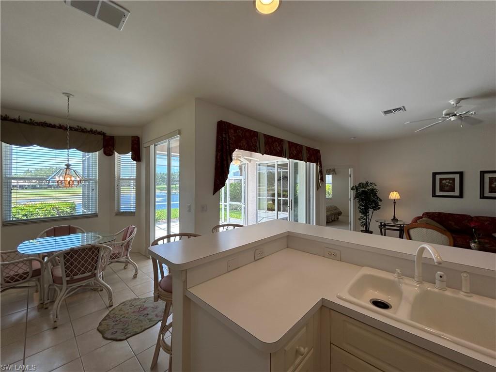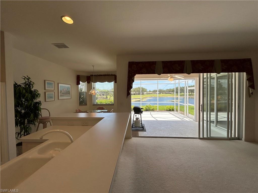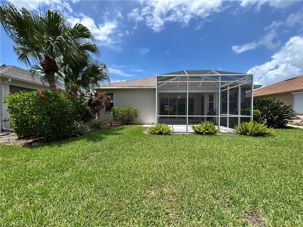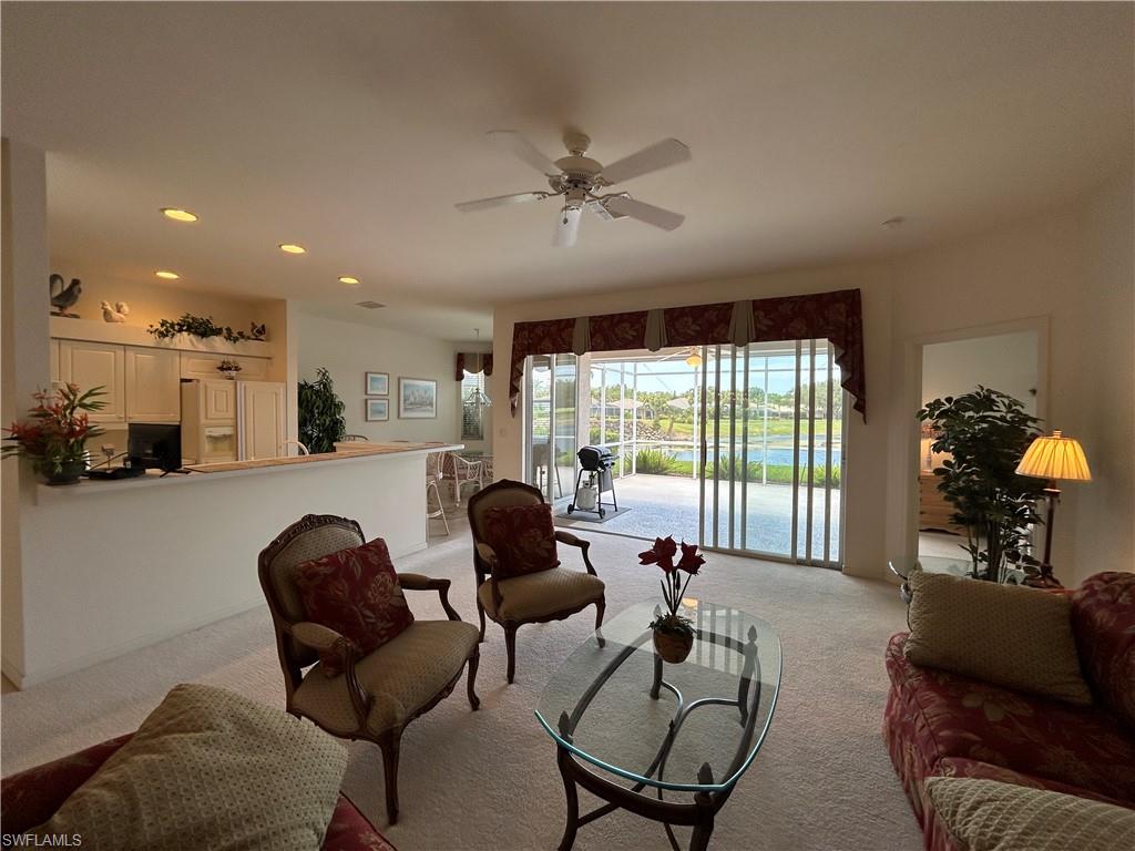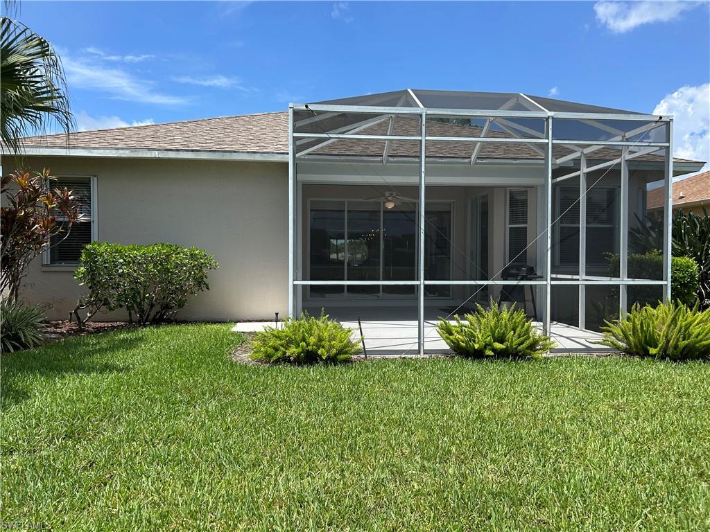 This beautifully maintained 2-bedroom + den single-family home offers an exceptional lakefront view, perfect for enjoying the peaceful Florida sunshine right from your enclosed lanai. Priced well below most homes in Country Creek, this furnished, turnkey residence is ready for you to move in and start living the Florida good life. Inside, the home boasts an open-concept layout that seamlessly connects the kitchenette, living room, and master bedroom to the outdoor lanai, creating a bright and airy space ideal for entertaining or simply relaxing. Natural light floods every corner of the home, enhancing its welcoming ambiance. The master suite features a large walk-in closet, while the den—equipped with pocket doors and a sofa bed—easily serves as a third bedroom, home office, or multipurpose room. Located just a short walk from the heated community pool, this home is perfectly situated within the vibrant, resort-style neighborhood of Country Creek. Residents enjoy bundled golf with low fees, golf cart access, and a variety of amenities including tennis, bocce ball, and a well-equipped fitness center. The on-site country club adds to the charm with a full-service restaurant and bar, fostering a friendly and social atmosphere. Conveniently located in Estero, this home is just minutes from Coconut Point, Miromar Outlets, beautiful Gulf beaches, and a wide range of shopping, dining, and entertainment options. You’ll also be close to Southwest Florida International Airport, the post office, and Estero Community Park, making this an ideal location for full-time or seasonal residents alike. This home is the perfect blend of comfort, style, and community living. Schedule your private showing today, and start enjoying everything that Country Creek has to offer!