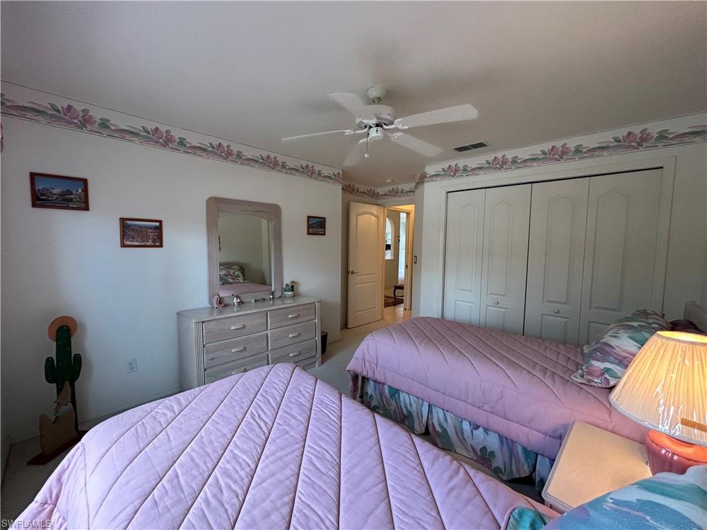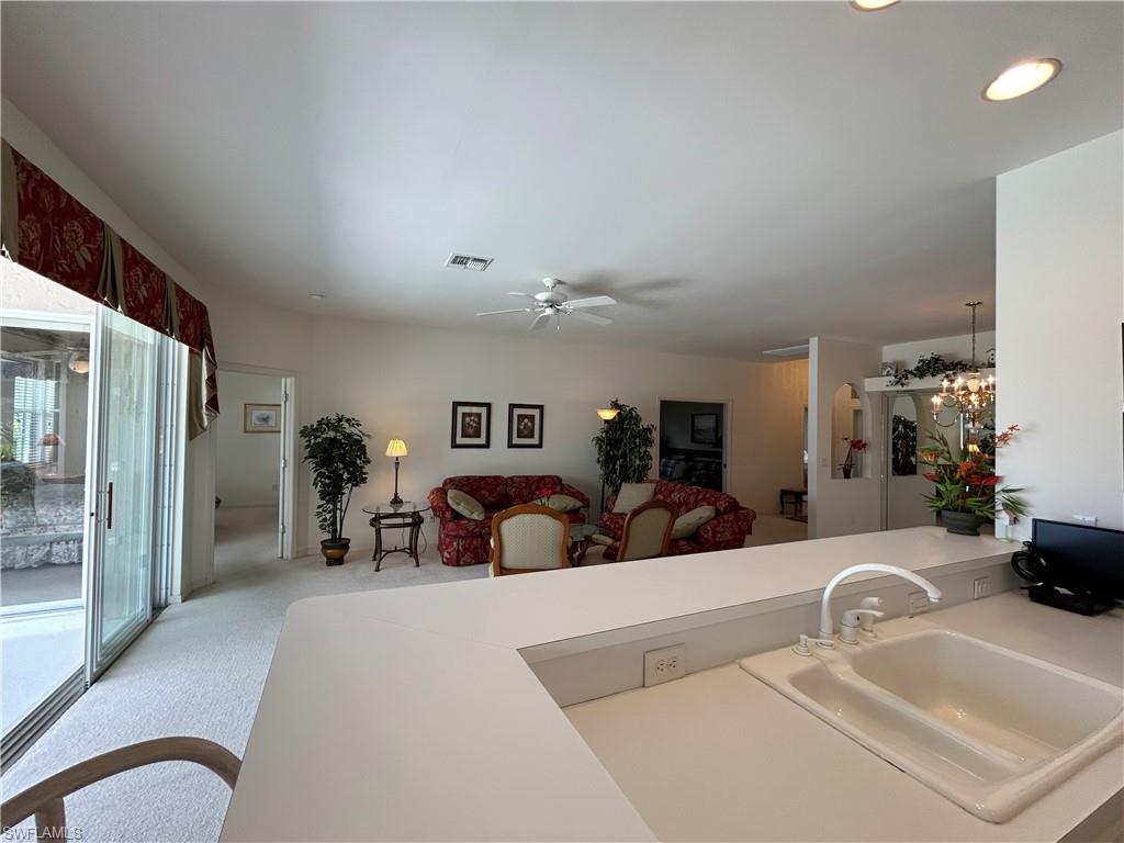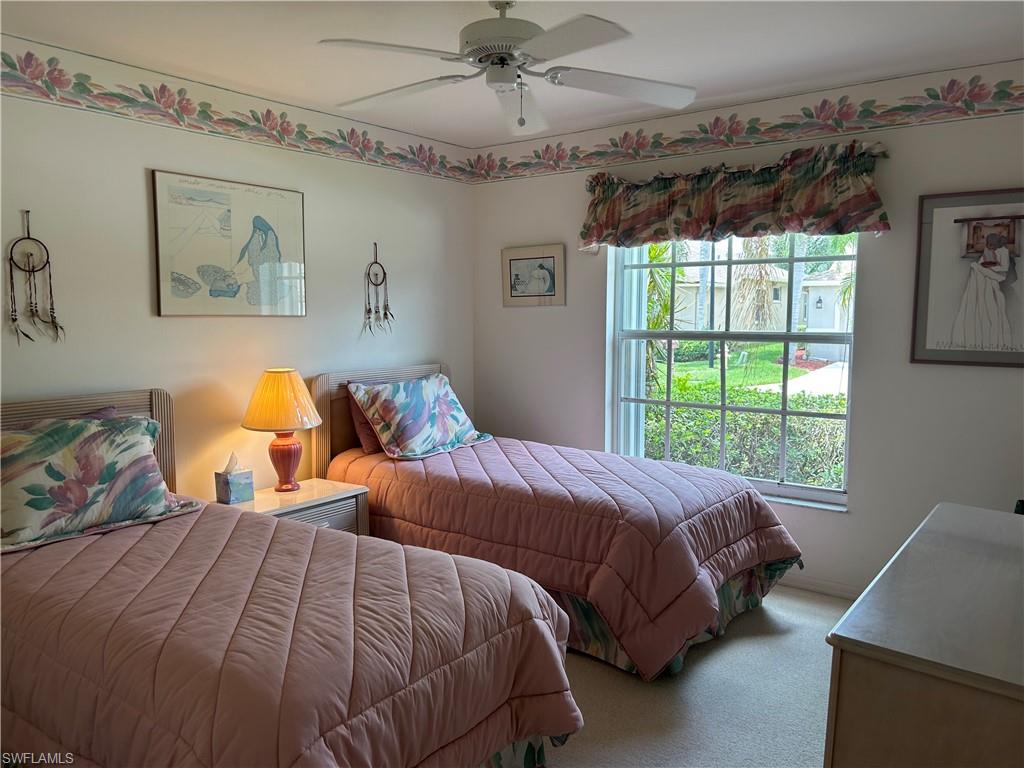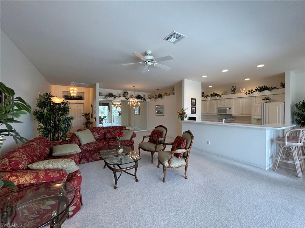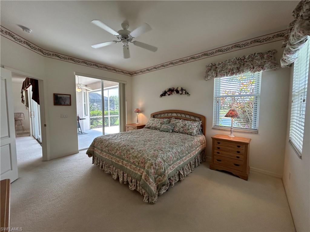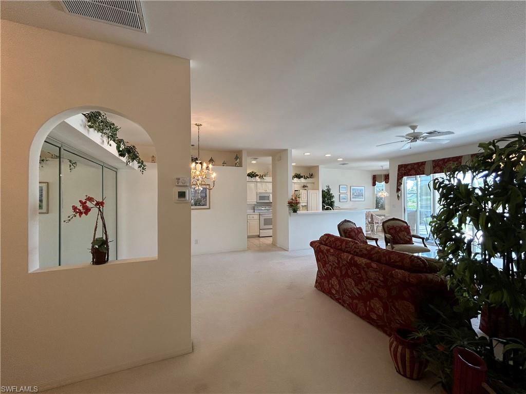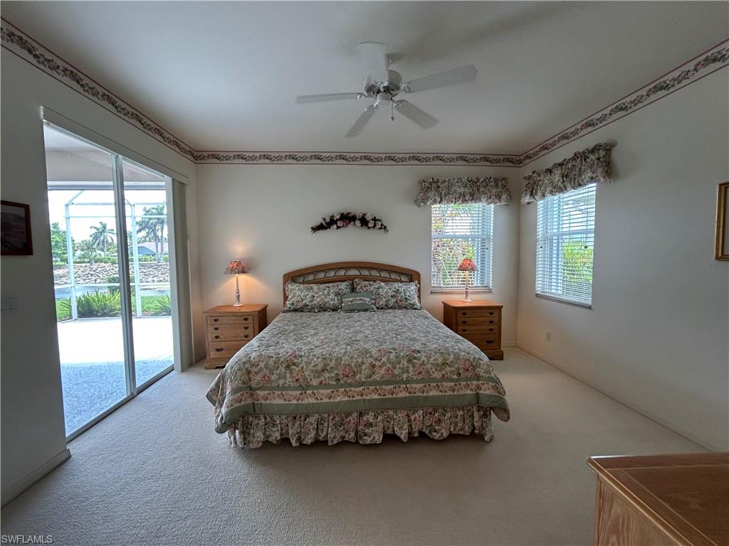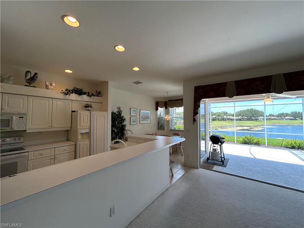 This beautifully maintained 2-bedroom + den single-family home offers an exceptional lakefront view, perfect for enjoying the peaceful Florida sunshine right from your enclosed lanai. Priced well below most homes in Country Creek, this furnished, turnkey residence is ready for you to move in and start living the Florida good life. Inside, the home boasts an open-concept layout that seamlessly connects the kitchenette, living room, and master bedroom to the outdoor lanai, creating a bright and airy space ideal for entertaining or simply relaxing. Natural light floods every corner of the home, enhancing its welcoming ambiance. The master suite features a large walk-in closet, while the den—equipped with pocket doors and a sofa bed—easily serves as a third bedroom, home office, or multipurpose room. Located just a short walk from the heated community pool, this home is perfectly situated within the vibrant, resort-style neighborhood of Country Creek. Residents enjoy bundled golf with low fees, golf cart access, and a variety of amenities including tennis, bocce ball, and a well-equipped fitness center. The on-site country club adds to the charm with a full-service restaurant and bar, fostering a friendly and social atmosphere. Conveniently located in Estero, this home is just minutes from Coconut Point, Miromar Outlets, beautiful Gulf beaches, and a wide range of shopping, dining, and entertainment options. You’ll also be close to Southwest Florida International Airport, the post office, and Estero Community Park, making this an ideal location for full-time or seasonal residents alike. This home is the perfect blend of comfort, style, and community living. Schedule your private showing today, and start enjoying everything that Country Creek has to offer!