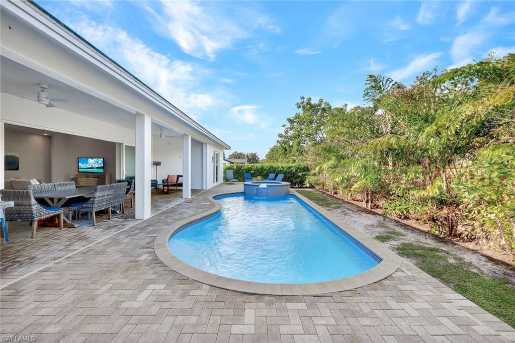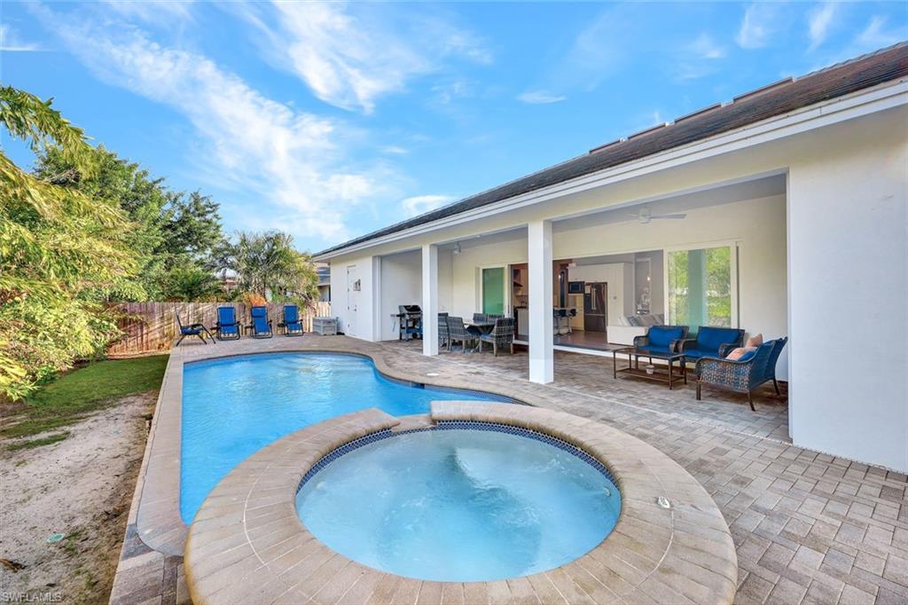 Discover island living at its finest in this stylish and spacious four-bedroom, four-and-a-half-bath retreat located on picturesque Marco Island. From the moment you enter, the airy layout and soaring ceilings create an inviting atmosphere perfect for gatherings or unwinding in comfort. Expansive glass doors seamlessly connect the interior to an inviting outdoor oasis featuring a covered lounge area, built-in grill, sparkling pool, and soothing spa. The home's sleek design includes a contemporary kitchen stocked with all the essentials, ideal for home-cooked meals or casual entertaining. The thoughtfully designed split-bedroom layout ensures privacy for all guests, with each bedroom offering its own private en-suite bath. The primary suite offers serene seclusion with direct access to the pool deck, while the additional guest suites also feature convenient poolside access. Centrally located, this property puts you within walking distance of Marco Island’s stunning shoreline. Spend your days basking in the sun, and your evenings wandering the scenic canals or taking in the vibrant colors of a Gulf Coast sunset. Whether you're in search of peaceful relaxation or outdoor adventure, this home is the perfect starting point for making unforgettable memories on Marco Island.