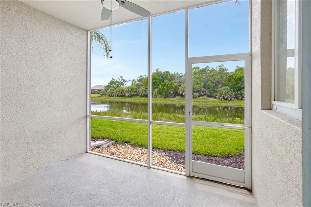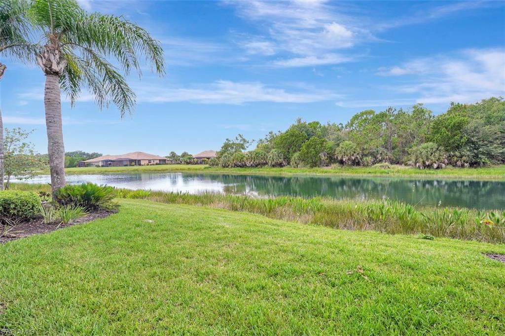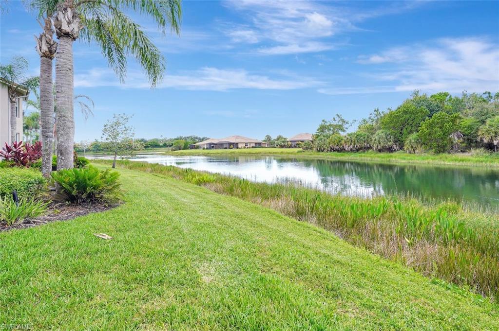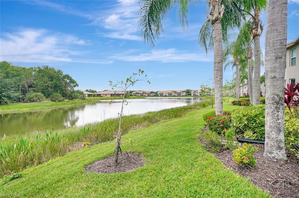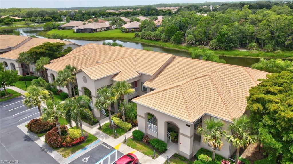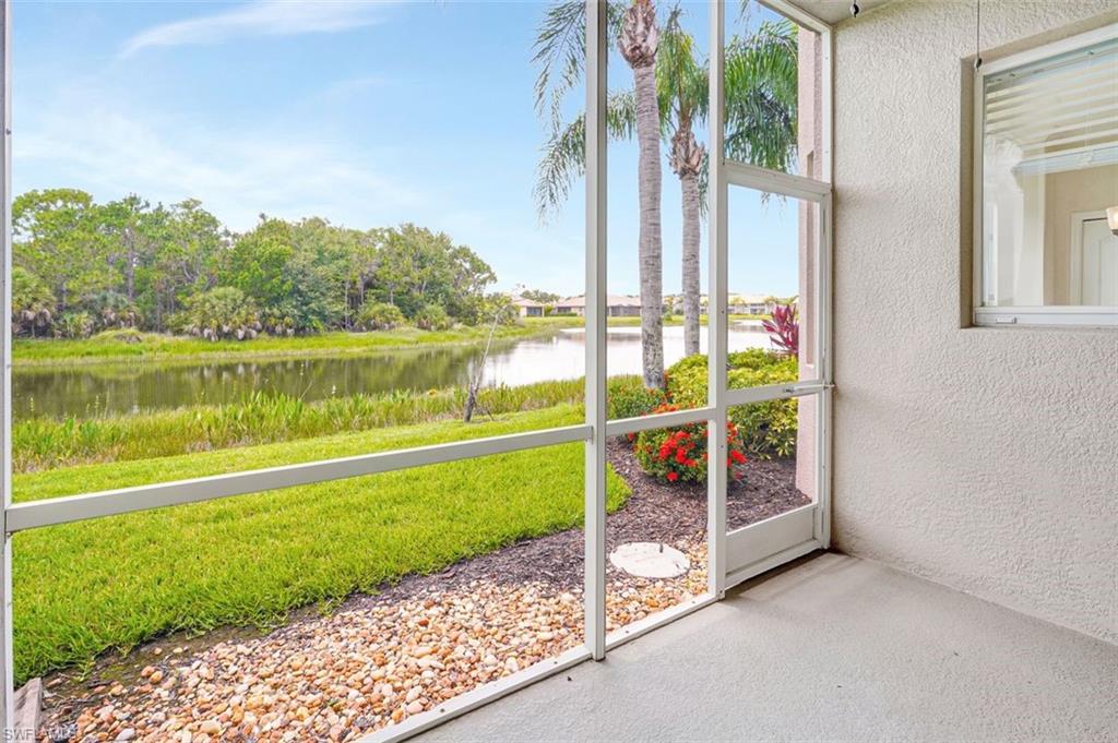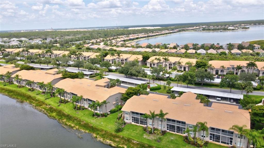 Nestled in the sought-after Bella Terra community of Estero, this beautifully maintained first floor, 2-bedroom, 2-bathroom condo offers a perfect blend of comfort, style, and convenience. With tranquil water views and a prime location in Southwest Florida, this home is ideal as a year-round residence, seasonal escape, or investment opportunity. Step inside to an open-concept layout enhanced by high ceilings and a soft, neutral palette that complements any design style. The kitchen is both functional and welcoming, featuring crown molding, abundant cabinet space, a pantry, breakfast nook with bay windows, and a convenient breakfast bar - perfect for everyday meals and entertaining. The living area features a built in cabinet perfect for a workspace or bar. Recent upgrades include a new stove/oven range and microwave (2023), along with a new HVAC system (2024). The spacious owner’s suite has high ceilings, a walk-in closet, and step-in shower. A designated carport and extra storage are deeded with the property. Bella Terra offers an unparalleled lifestyle with resort-style amenities and natural beauty throughout its 800-acre, guard-gated grounds. Enjoy a 7,000 sq. ft. clubhouse, a resort-style heated pool and spa with waterfall, and access to a fitness and wellness center, aerobics studio, and library. Outdoor options include tennis, pickleball, bocce, basketball, beach volleyball, soccer pitch and baseball fields, skate park, fishing lakes, and a scenic butterfly garden. The also condominiums have a dedicated pool for residents. Relax and unwind on the screened waterfront patio, where you'll enjoy morning sunrises and evening serenity. Located just 3 miles east of I-75 off Corkscrew Road, Bella Terra places you minutes from Miromar Outlets, Coconut Point Mall, RSW Airport, FGCU, Gulf Coast Town Center, and Southwest Florida’s renowned beaches and golf courses. HOA covering landscape maintenance and 24-hour guard-gated security, you get exceptional value in a prime location. Priced to sell quickly and move-in ready. Don’t miss your opportunity to own a slice of paradise in one of Estero’s most vibrant and welcoming communities. Schedule your private showing today!