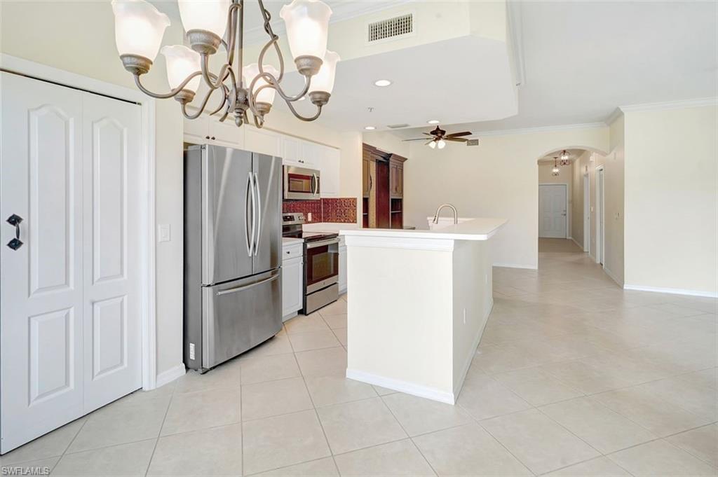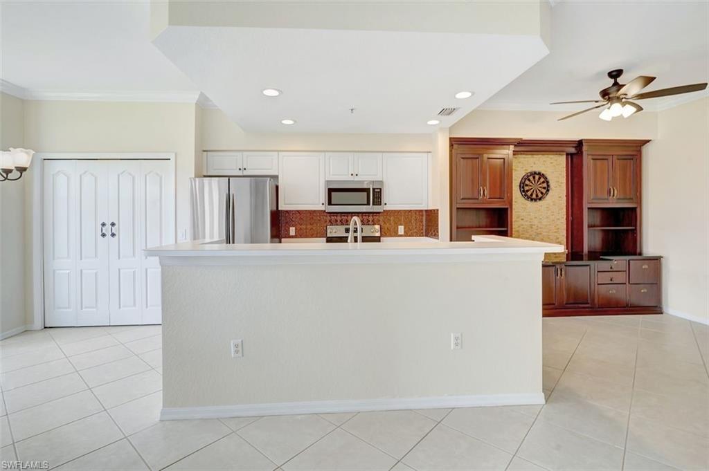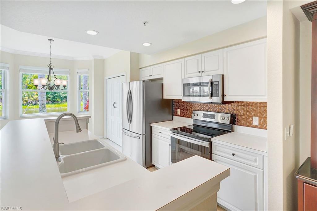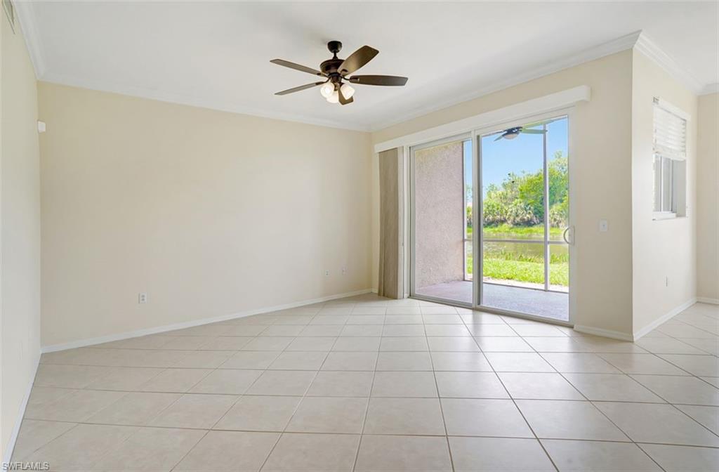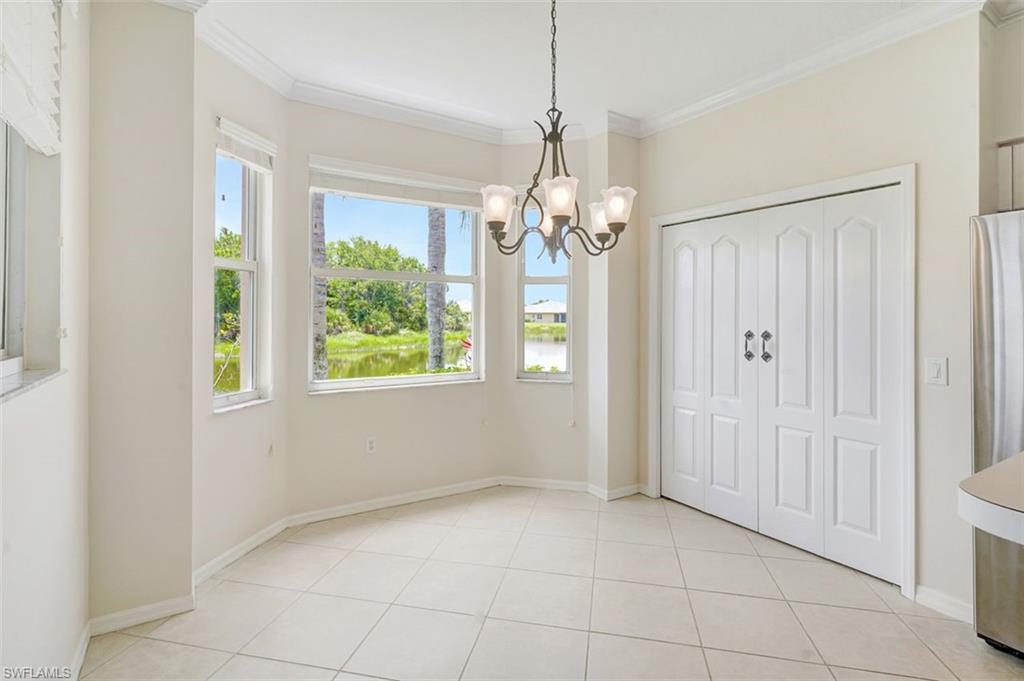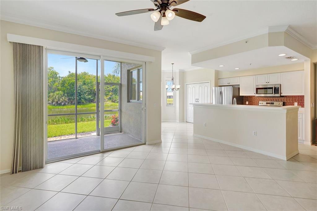 Nestled in the sought-after Bella Terra community of Estero, this beautifully maintained first floor, 2-bedroom, 2-bathroom condo offers a perfect blend of comfort, style, and convenience. With tranquil water views and a prime location in Southwest Florida, this home is ideal as a year-round residence, seasonal escape, or investment opportunity. Step inside to an open-concept layout enhanced by high ceilings and a soft, neutral palette that complements any design style. The kitchen is both functional and welcoming, featuring crown molding, abundant cabinet space, a pantry, breakfast nook with bay windows, and a convenient breakfast bar - perfect for everyday meals and entertaining. The living area features a built in cabinet perfect for a workspace or bar. Recent upgrades include a new stove/oven range and microwave (2023), along with a new HVAC system (2024). The spacious owner’s suite has high ceilings, a walk-in closet, and step-in shower. A designated carport and extra storage are deeded with the property. Bella Terra offers an unparalleled lifestyle with resort-style amenities and natural beauty throughout its 800-acre, guard-gated grounds. Enjoy a 7,000 sq. ft. clubhouse, a resort-style heated pool and spa with waterfall, and access to a fitness and wellness center, aerobics studio, and library. Outdoor options include tennis, pickleball, bocce, basketball, beach volleyball, soccer pitch and baseball fields, skate park, fishing lakes, and a scenic butterfly garden. The also condominiums have a dedicated pool for residents. Relax and unwind on the screened waterfront patio, where you'll enjoy morning sunrises and evening serenity. Located just 3 miles east of I-75 off Corkscrew Road, Bella Terra places you minutes from Miromar Outlets, Coconut Point Mall, RSW Airport, FGCU, Gulf Coast Town Center, and Southwest Florida’s renowned beaches and golf courses. HOA covering landscape maintenance and 24-hour guard-gated security, you get exceptional value in a prime location. Priced to sell quickly and move-in ready. Don’t miss your opportunity to own a slice of paradise in one of Estero’s most vibrant and welcoming communities. Schedule your private showing today!