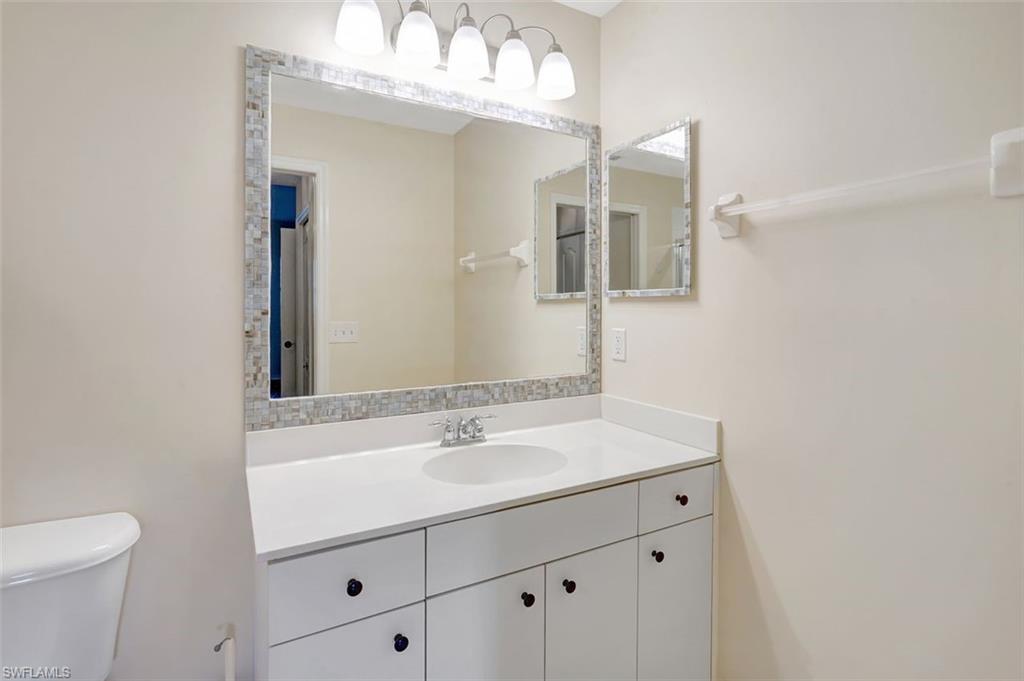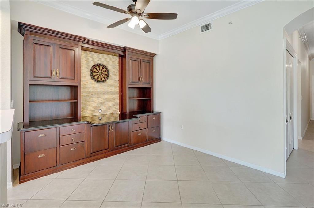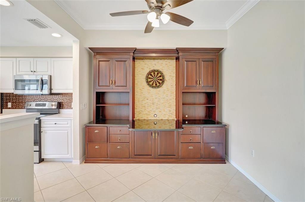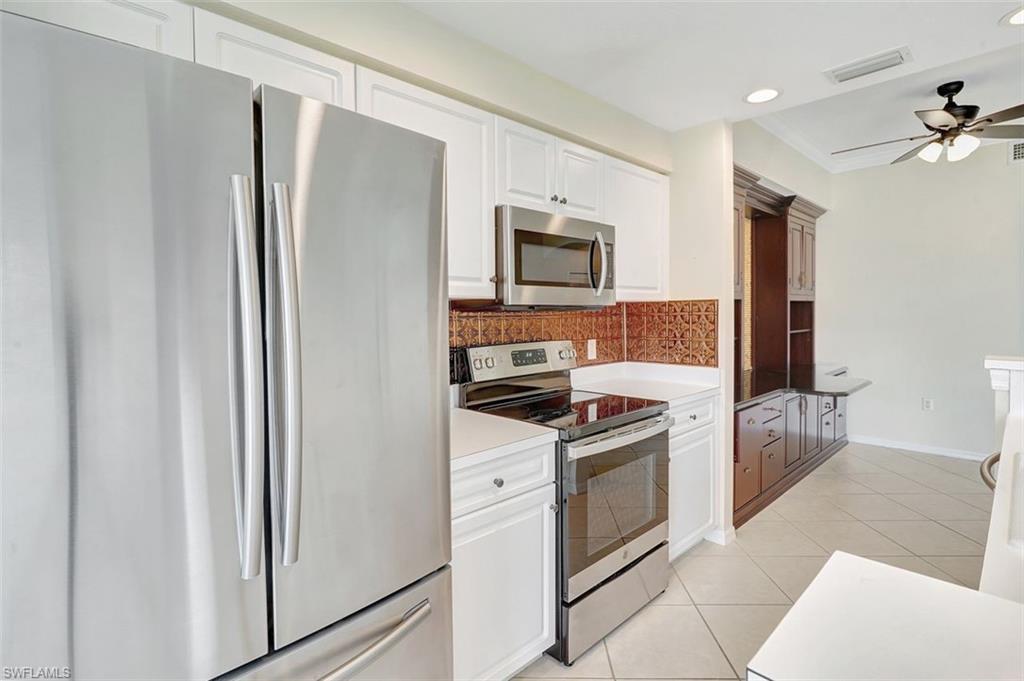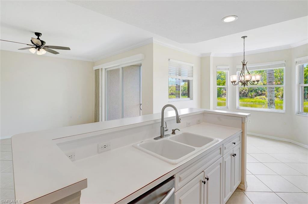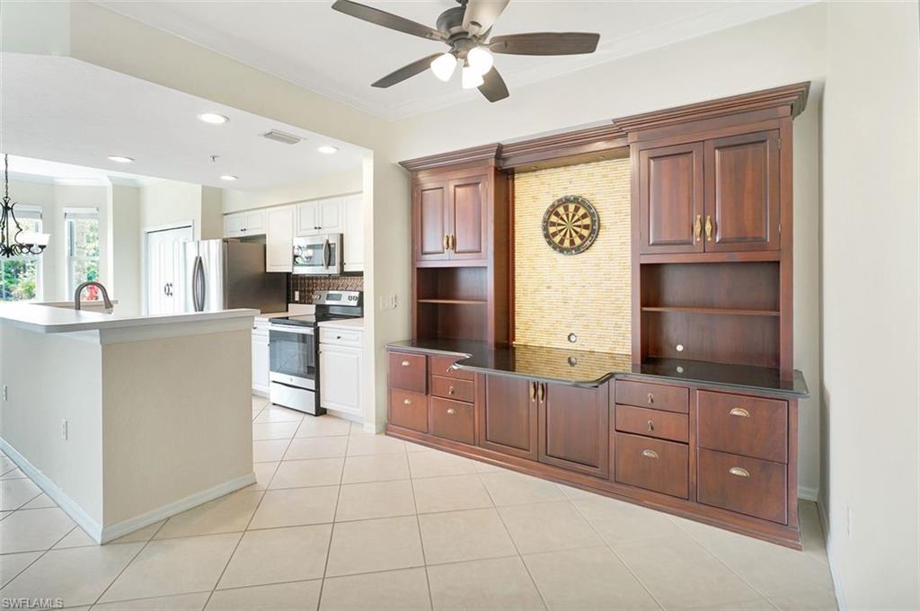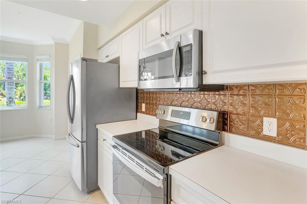 Nestled in the sought-after Bella Terra community of Estero, this beautifully maintained first floor, 2-bedroom, 2-bathroom condo offers a perfect blend of comfort, style, and convenience. With tranquil water views and a prime location in Southwest Florida, this home is ideal as a year-round residence, seasonal escape, or investment opportunity. Step inside to an open-concept layout enhanced by high ceilings and a soft, neutral palette that complements any design style. The kitchen is both functional and welcoming, featuring crown molding, abundant cabinet space, a pantry, breakfast nook with bay windows, and a convenient breakfast bar - perfect for everyday meals and entertaining. The living area features a built in cabinet perfect for a workspace or bar. Recent upgrades include a new stove/oven range and microwave (2023), along with a new HVAC system (2024). The spacious owner’s suite has high ceilings, a walk-in closet, and step-in shower. A designated carport and extra storage are deeded with the property. Bella Terra offers an unparalleled lifestyle with resort-style amenities and natural beauty throughout its 800-acre, guard-gated grounds. Enjoy a 7,000 sq. ft. clubhouse, a resort-style heated pool and spa with waterfall, and access to a fitness and wellness center, aerobics studio, and library. Outdoor options include tennis, pickleball, bocce, basketball, beach volleyball, soccer pitch and baseball fields, skate park, fishing lakes, and a scenic butterfly garden. The also condominiums have a dedicated pool for residents. Relax and unwind on the screened waterfront patio, where you'll enjoy morning sunrises and evening serenity. Located just 3 miles east of I-75 off Corkscrew Road, Bella Terra places you minutes from Miromar Outlets, Coconut Point Mall, RSW Airport, FGCU, Gulf Coast Town Center, and Southwest Florida’s renowned beaches and golf courses. HOA covering landscape maintenance and 24-hour guard-gated security, you get exceptional value in a prime location. Priced to sell quickly and move-in ready. Don’t miss your opportunity to own a slice of paradise in one of Estero’s most vibrant and welcoming communities. Schedule your private showing today!
