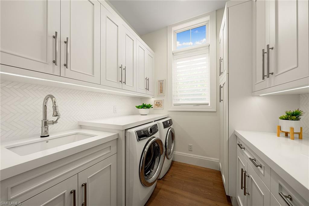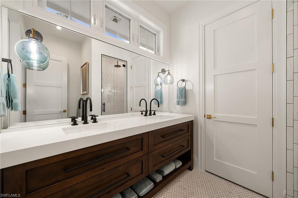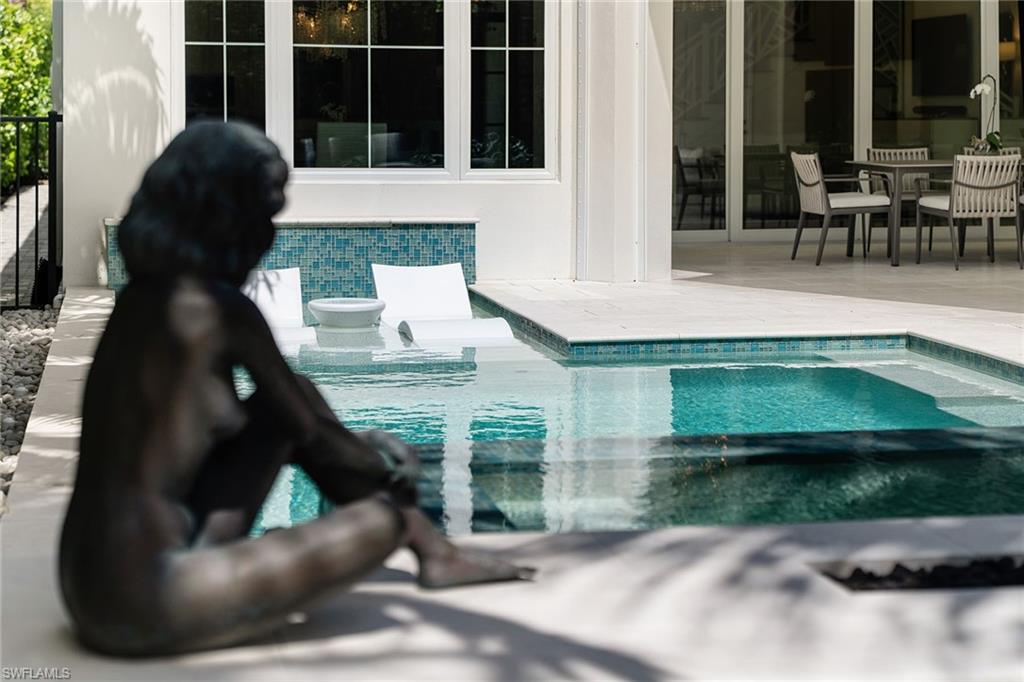 Meticulously designed and crafted to the highest standards, this exceptional residence combines timeless elegance with modern sophistication. Built in 2020 by Kaye Lifestyle Homes, the home boasts wide-plank Legno Bastone hardwood floors, custom millwork throughout, and intricate ceiling details, providing a sense of refined comfort at every turn. The expansive, open-concept layout seamlessly integrates formal living areas with the serene Florida lifestyle. The first-floor primary suite serves as a private sanctuary, complete with three generously sized walk-in closets and a spa-like bath featuring a freestanding tub, dual vanities, and an oversized mother-of-pearl-lined shower. A private study, with its own en-suite bath, offers the perfect space for work or relaxation. Upstairs, the second primary suite is accompanied by a spacious loft and private balcony overlooking the lushly landscaped pool and spa. Plus, two additional guest bedrooms and bath provide the ultimate in comfort and relaxation. The private outdoor living area is an entertainer's dream, with a tropical-inspired pool and spa, an outdoor kitchen, gas fireplace, and multiple seating areas surrounded by lush, meticulously curated landscaping. Designed for the ultimate in relaxation and style, this serene space offers the perfect backdrop for enjoying the Florida lifestyle year-round. Located on one of the most sought-after tree lined streets in downtown Olde Naples, this property offers a rare combination of a two-car garage off the rear alley and an additional one-car garage at the front of the home. Just minutes from the world-class dining, shopping, and cultural venues along Fifth Avenue South, and a short stroll to the beach to enjoy the gorgeous Gulf waters and fabulous sunsets, this home presents a rare opportunity to experience the finest in coastal living.