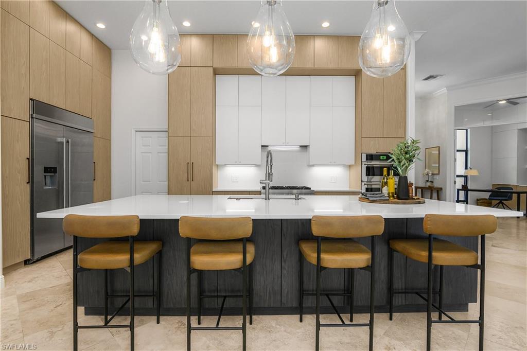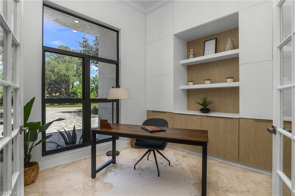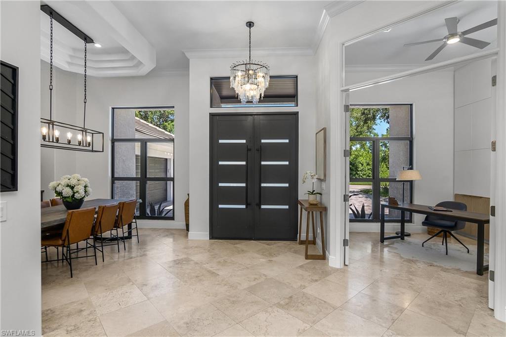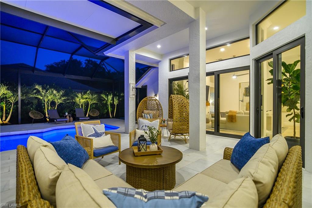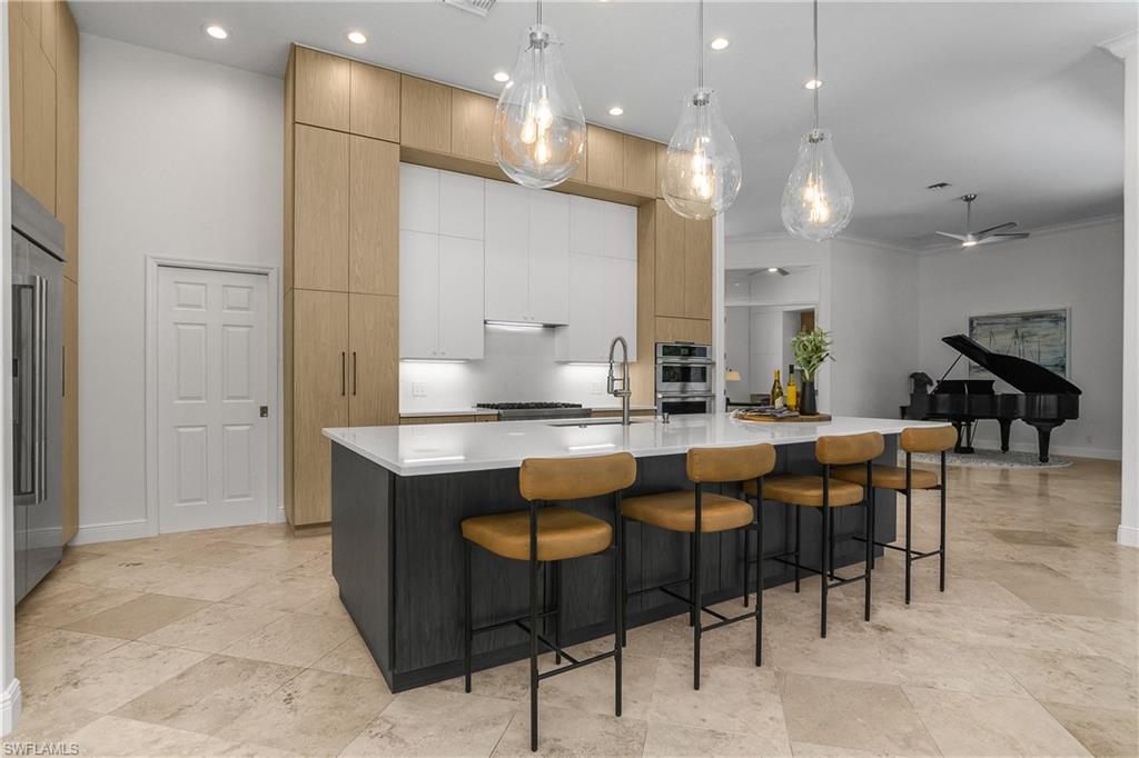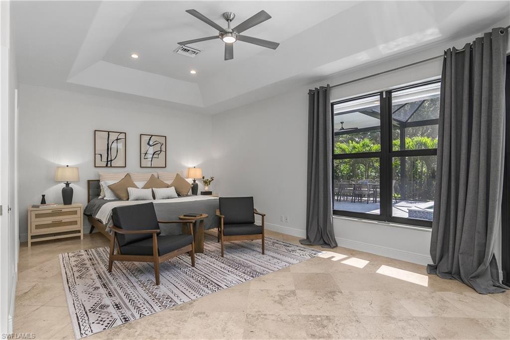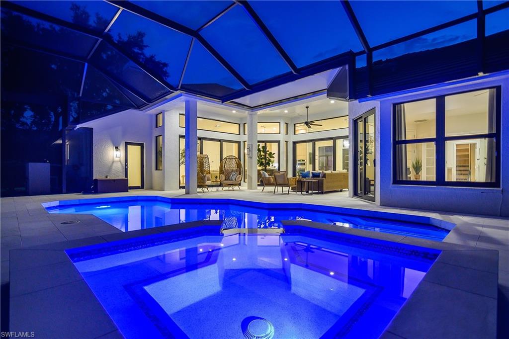 Luxurious, private, and serene, this beautifully renovated home is an oasis nestled in a desirable, quiet location within the heart of the coveted neighborhood of Monterey. Thoughtfully updated & meticulously maintained both inside and out, this home enjoys an abundance of light with soaring 11.5 foot ceilings, top-of-the-line finishes and premium appliances. At the heart of the home, a custom 11 foot island anchors the well-equipped chef's kitchen with sleek floor-to-ceiling custom cabinetry with NEW JennAir RISE appliances, including 48” refrigerator, gas range and double wall oven with convection/microwave. The renovated bathrooms have been gorgeously updated with Taj Mahal quartzite countertops and custom cabinetry. A dedicated office with floor-to-ceiling custom built-in cabinetry offers a stylish and functional work/flex space. Step outside to your own private sanctuary, complete with NEW stunning picture-window screen cage with unique & functional shade/rain protection roof systems, NEW outdoor kitchen, & NEWLY refinished pool/spa, all framed by lush hedges and tropical palms with dramatic landscape lighting. Countless upgrades provide efficiency as well as peace of mind, including NEW impact windows & doors, NEW A/C, NEW instant hot water heater, NEW pool equipment, NEW paver driveway, newer roof and more! With 24-hour gate guard, 3 har tru tennis courts, community pool/clubhouse, sport/pickleball court, neighborhood events & just minutes to beaches, downtown, shopping, & schools - Make this your next move!