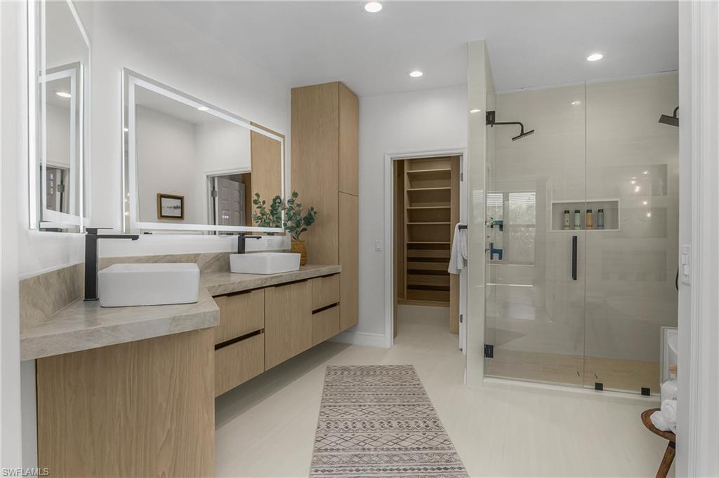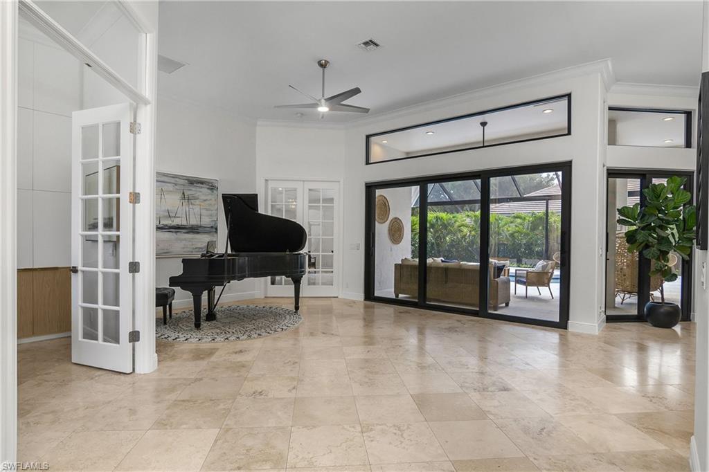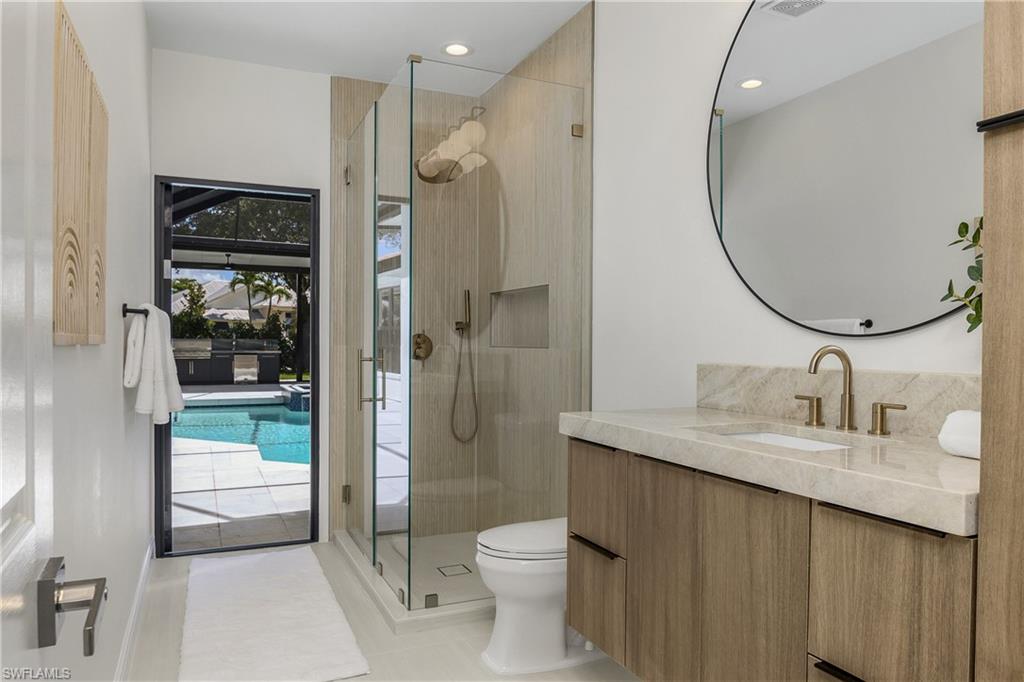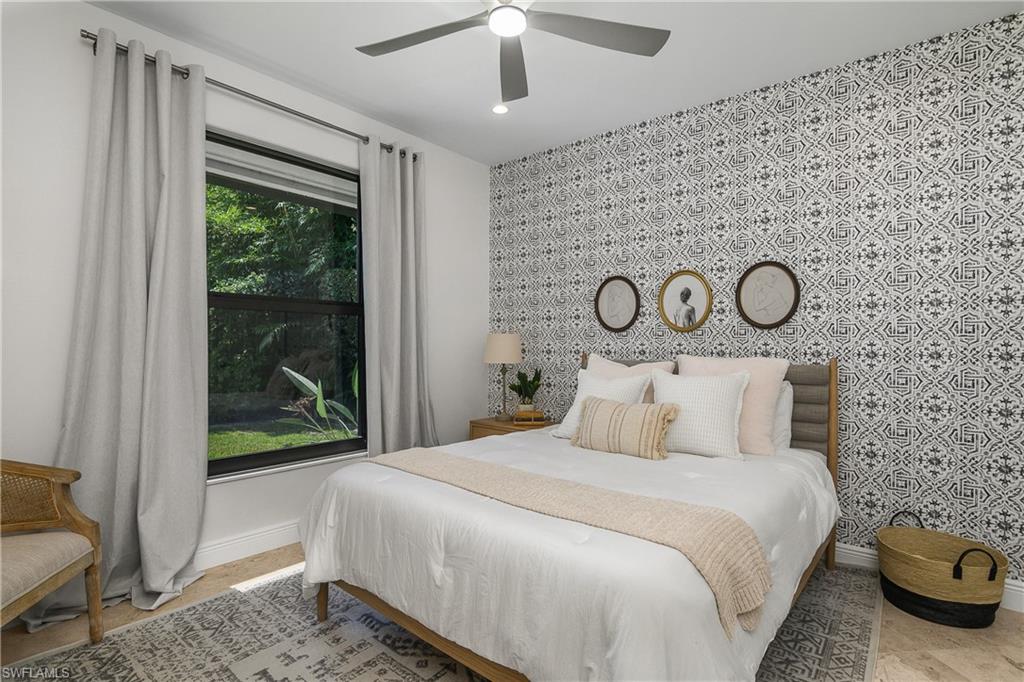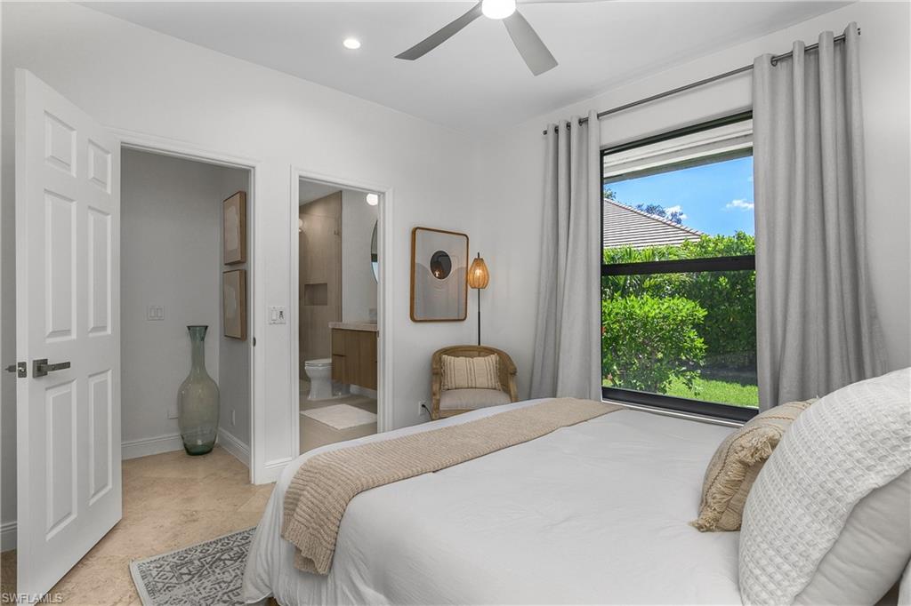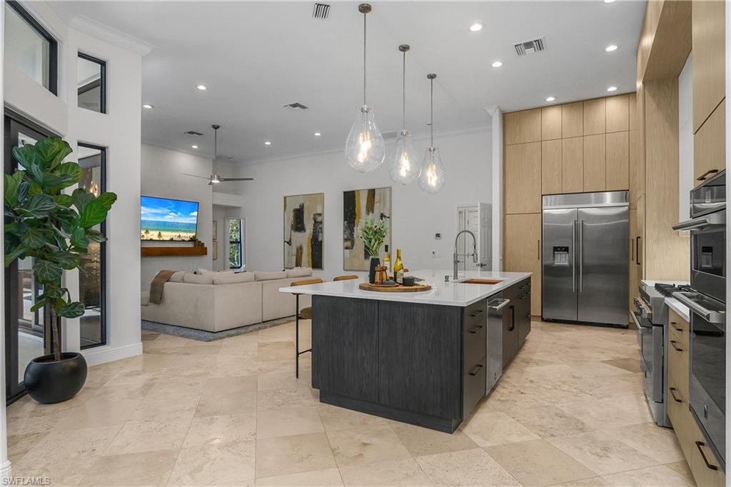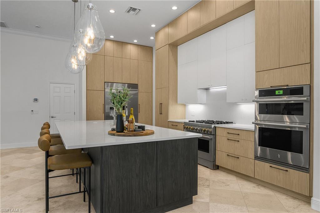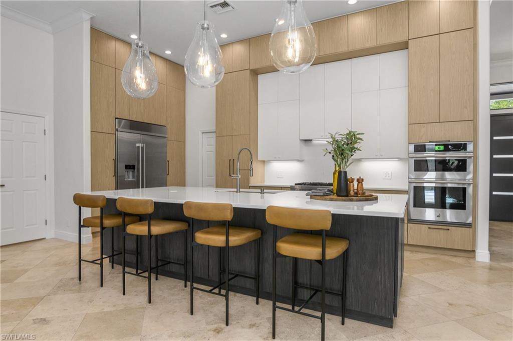Luxurious, private, and serene, this beautifully renovated home is an oasis nestled in a desirable, quiet location within the heart of the coveted neighborhood of Monterey. Thoughtfully updated & meticulously maintained both inside and out, this home enjoys an abundance of light with soaring 11.5 foot ceilings, top-of-the-line finishes and premium appliances. At the heart of the home, a custom 11 foot island anchors the well-equipped chef's kitchen with sleek floor-to-ceiling custom cabinetry with NEW JennAir RISE appliances, including 48” refrigerator, gas range and double wall oven with convection/microwave. The renovated bathrooms have been gorgeously updated with Taj Mahal quartzite countertops and custom cabinetry. A dedicated office with floor-to-ceiling custom built-in cabinetry offers a stylish and functional work/flex space. Step outside to your own private sanctuary, complete with NEW stunning picture-window screen cage with unique & functional shade/rain protection roof systems, NEW outdoor kitchen, & NEWLY refinished pool/spa, all framed by lush hedges and tropical palms with dramatic landscape lighting. Countless upgrades provide efficiency as well as peace of mind, including NEW impact windows & doors, NEW A/C, NEW instant hot water heater, NEW pool equipment, NEW paver driveway, newer roof and more! With 24-hour gate guard, 3 har tru tennis courts, community pool/clubhouse, sport/pickleball court, neighborhood events & just minutes to beaches, downtown, shopping, & schools - Make this your next move!