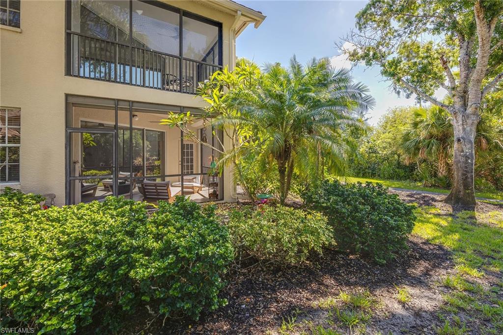 Nestled within the verdant, tropical landscape of The Reserve at Pelican Landing, this meticulously maintained coach home presents an exceptional living experience. The residence features three well-proportioned bedrooms, two bathrooms, and 1,640 square feet of carefully planned living space. The open-concept design seamlessly integrates the living and dining areas, enhanced by elegant tile flooring throughout the main living spaces, with ample storage provided by generous closet space. Recent upgrades include sophisticated Hunter Douglas window treatments, contemporary ceiling fans, and updated lighting fixture. Expansive sliding glass doors lead to a screened lanai equipped with storm shutters, offering panoramic views of the surrounding nature preserve and fostering an effortless connection between indoor and outdoor living. A private outdoor patio provides an additional space for relaxation and contemplation. Residents benefit from convenient access to a resort-style amenity center located directly across the street, featuring a totally re-finished pool and spa, as well as an outdoor kitchen complete with dual grills.