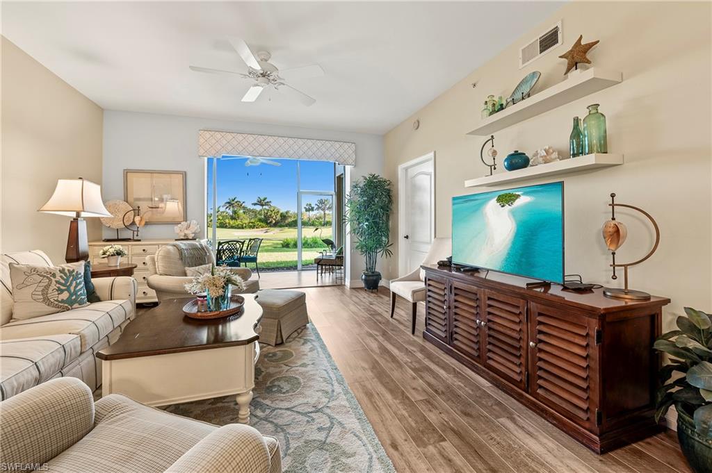 Discover the allure of this beautifully remodeled Carlton Veranda in the sought-after Highland Woods community. This stunning home showcases an open kitchen concept featuring stainless steel appliances, custom cabinetry, and a granite island, perfect for culinary enthusiasts. The bathrooms have been elegantly redesigned with custom vanities and walk-in showers with glass enclosures, complemented by stylish "wood look" tile flooring throughout the main living space. The picture frame window lanais provide breathtaking views of the golf course and lake, making it an ideal space for relaxation. Renowned for its exceptional value, Highland Woods offers an array of amenities. Enjoy a round of golf on the impressive 18-hole course, stay active at the state-of-the-art fitness center, or engage in friendly matches at the bocce ball and tennis courts. Dining options are plentiful, with choices ranging from a casual grill room to formal dining and alfresco outdoor options. Recent enhancements to the community include a resort-style pool and spa, a cabana bar and restaurant, new pickleball courts, and resurfaced tennis courts. The location offers unmatched convenience, with grocery stores, banks, and a seasonal farmers market all within walking distance. Beautiful beaches are just 3 miles away, and you are a short drive from RSW Airport, the Shoppes at Mercato, and Coconut Point Mall. Seize this opportunity to own a magnificent condo in a vibrant community, perfectly situated to offer the best of shopping, dining, and entertainment. Highland Woods is not just a place to live; it’s a lifestyle.