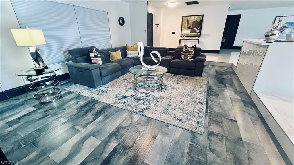 Beautiful single family pool home centrally located in Golden Gate City. This stunning modern contemporary residence, with pool, offers a seamless blend of style, luxury, and functionality. Step into an open and airy floor plan that boasts abundant natural light, enhancing the sense of space and tranquility throughout the home. Designed for both relaxation and hosting. This property offers a serene retreat from the outside world while ensuring your peace of mind. The home is nicely updated with a modern design and features 4 bedrooms and 2 baths and an amazing pool with a large screen enclosure. Close to state of the art schools, shopping, banks and restaurants, this is a must see opportunity! No HOA fees, no restrictions.