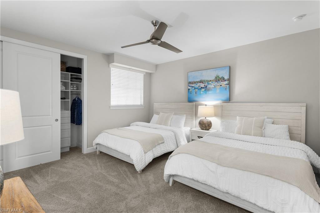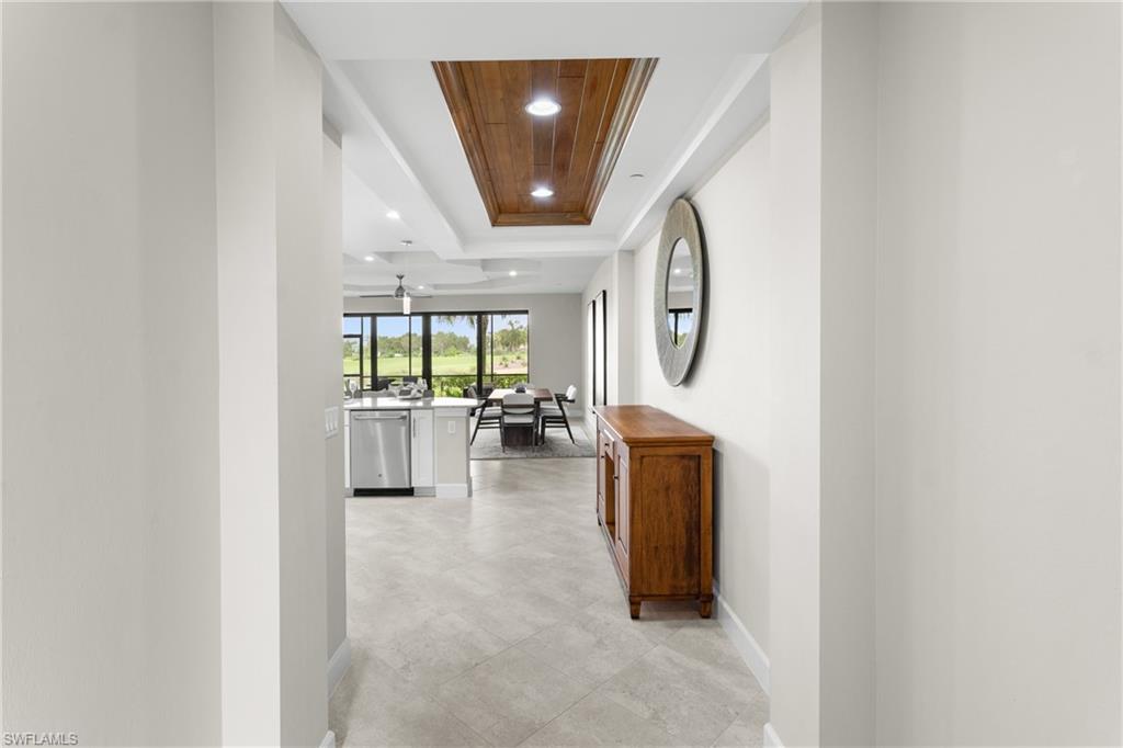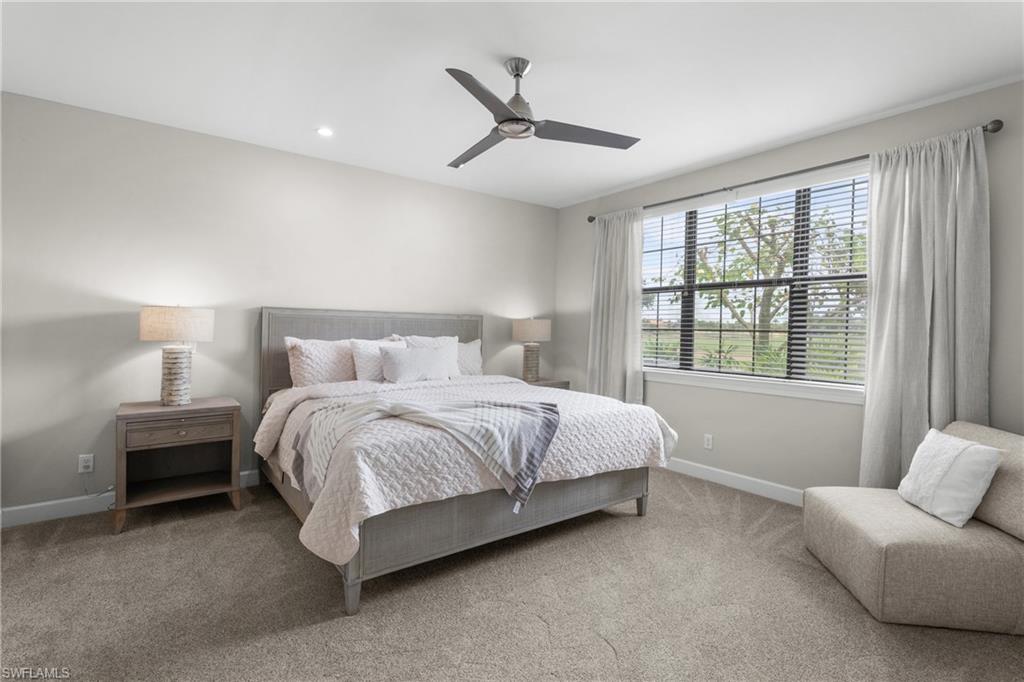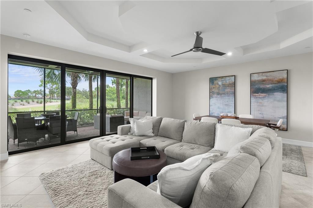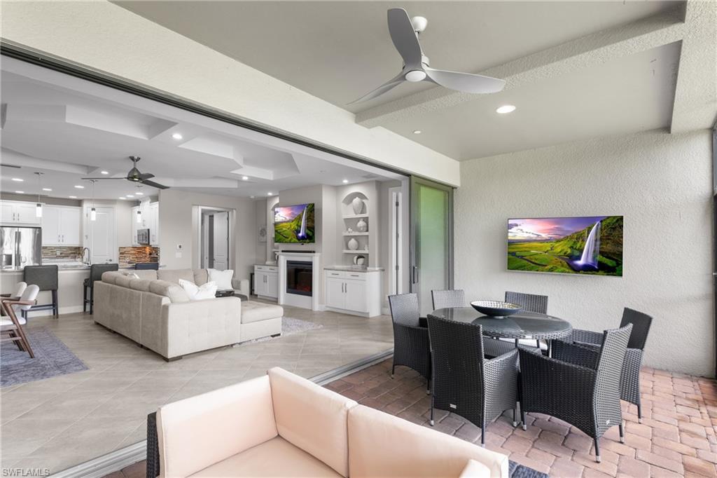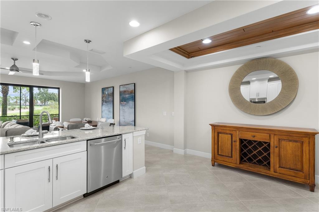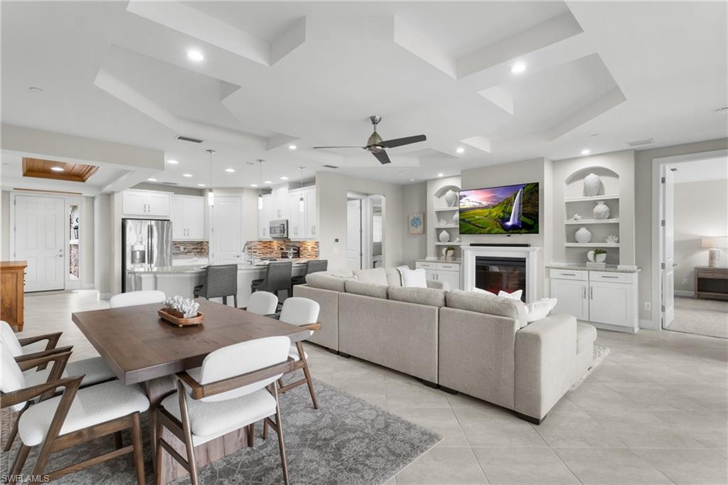 Searching for a modern-style coach home with a FULL GOLF MEMBERSHIP and GOLF CART included? This beautifully furnished 2-bedroom, 2-bath first-floor coach home in Esplanade Golf & Country Club combines contemporary style with over 1,700 square feet of meticulously maintained open living space. From the spacious screened lanai, take in stunning views of the 8th green while enjoying your favorite meals/beverages. Inside, the home is thoughtfully designed with light quartz countertops, diagonal tile flooring, a cozy fireplace, high-impact windows/doors, tray ceilings, and upgraded glass shower doors in the guest bathroom. The kitchen features upgraded white cabinetry, brand new stylish pendant lighting over the island, 42" white cabinets and a generous walk-in pantry. The primary suite is spacious and tranquil, offering a custom built-in closet, dual sinks, and a walk-in shower. The guest bedroom is nearly equal in size, comfortably fitting two queen beds, and includes its own private bath and custom built-in closet. The one-car garage provides more space than any other of coach home models and the HVAC system was replaced within the past year, offering peace of mind. While never rented, this home presents strong rental potential with peak season rates exceeding $9,000 per month. Renters can enjoy full golf access with a paid transfer fee. The property sits on a quiet, landscaped street just steps from the nearby community pool and gas grills—ideal for relaxing or socializing. Esplanade Golf & Country Club recently earned national recognition for its entrance landscaping and offers residents an unmatched resort-style lifestyle. Amenities include a championship golf course, a resort-style pool with cabanas and poolside food and drink service, a state-of-the-art clubhouse, tennis and pickleball courts, walking and biking trails, a dog park, full-service spa and salon, fitness and wellness centers, a tiki bar, and much more. Located in desirable North Naples, Esplanade is close to I-75, Southwest Florida International Airport, fine dining, shopping, and the white-sand beaches of the Gulf. Known for its vibrant social calendar and welcoming community, Esplanade offers the perfect balance of luxury, recreation, and relaxation. This is your opportunity to own an exceptional home in one of Naples’ premier communities and start living the Esplanade lifestyle.
