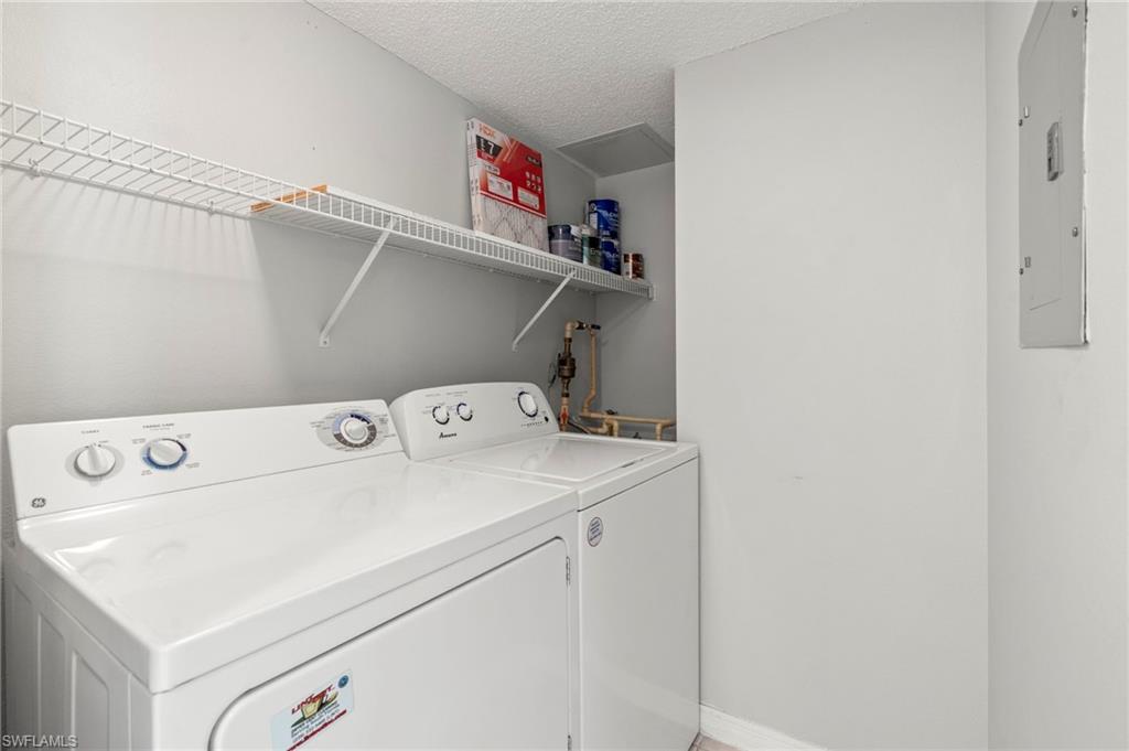 Welcome to this charming one-bedroom, one bath condo with a desirable layout and private LAKE VIEW centrally located in Bonita Springs at San Mirage. Situated on the second floor, this light and bright unit features a screened in patio with peaceful lake views- perfect for a relaxing morning or unwinding at sunset. You'll love the move in ready condition with no history of hurricane damage here, giving you added peace of mind. Nestled in a prime location in the heart of Bonita Springs close to shopping, dining, and beaches. Enjoy the growth and vibrant scene Downtown just minutes away. With so much to do right at your doorstep, this condo offers the perfect blend of relaxation and a lively Southwest Florida lifestyle.