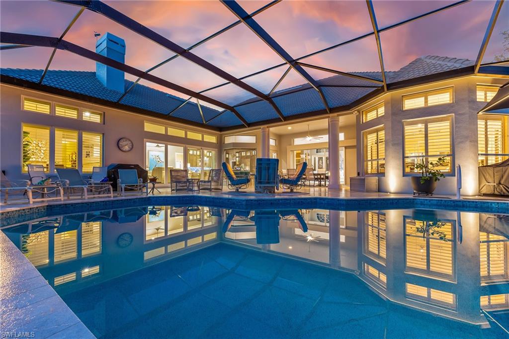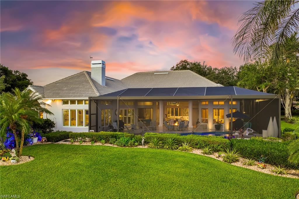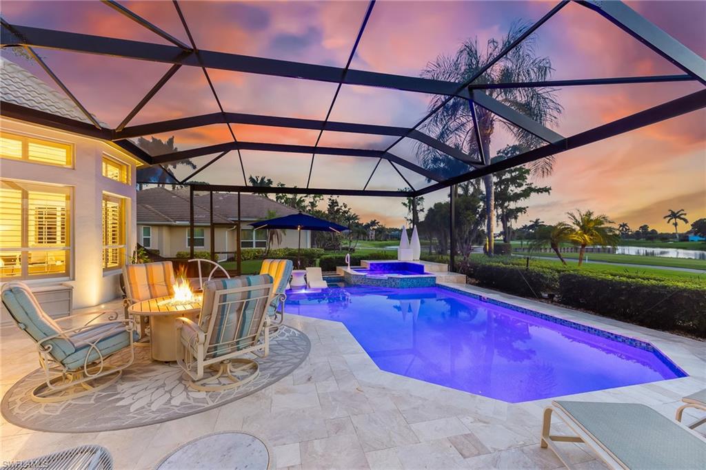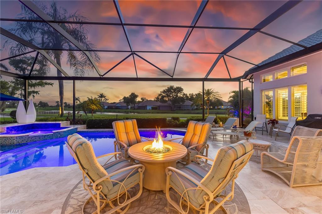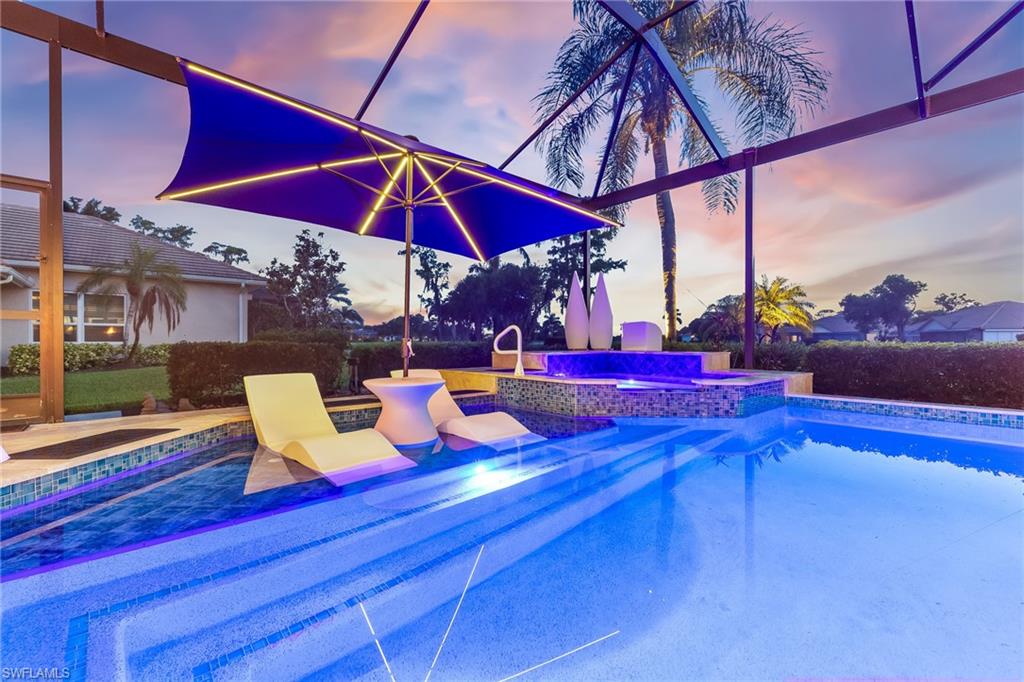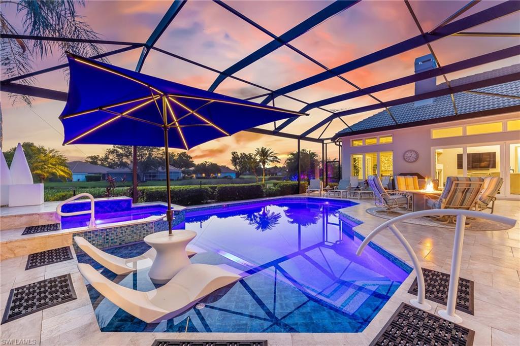ESTATE HOME w/ IMMEDIATE GOLF AVAILABLE ON SIGNATURE HOLE IN THE VINES.....This furnished, contemporary floor plan includes over $500k in renovations and high-end interior design furnishings. Endless upgrades include new roof (2020); in-ground 500 gal propane tank (2021); new landscaping/lawn irrigation (2022); whole house generator (2023); new HVAC unit (2024); recently installed landscape stone + entire exterior of the home painted (2024). Beyond the etched glass double door, awaits a beautifully decorated living room accompanied by a sophisticated walk-in wet bar w/ wine cooler and stand alone ice maker; soaring 12-ft ceilings + an elegant dining area. Kitchen features stunning dark wood cabinetry; white quartz counters; stainless appliances and double oven. The entire left side of the home is dedicated to the massive primary suite w/ large sitting area and private ensuite. Entertain in style while guests spill out to the awe-inspiring outdoor living area w/ additional seating; completely renovated pool & spa w/ dramatic sun shelf; all new pool equipment; protective sun screen; fire-pit and pool cage with custom picture-view screen panels. In addition, a pet door is installed out of the lanai w/ an added invisible fence in the backyard. Estero Country Club social activities include a championship 18-hole golf course (golf membership optional); tennis; pickle ball; bocce; fitness center; plus casual and fine dining. Membership in The Estero Country Club is required at the Social Level. Full Golf and Sport Memberships are available with no wait list. Great location close to RSW Airport; shops and restaurants.....this home invites true resort-style living. **Be sure to click on 3D Virtual Tour Video to view this exclusive property.
