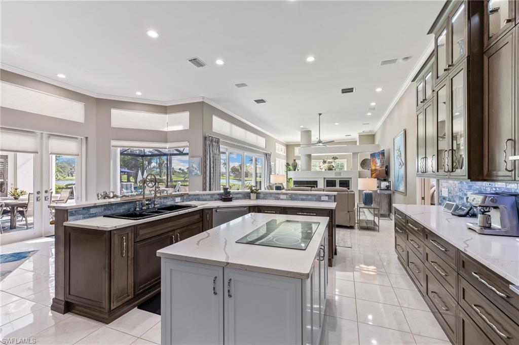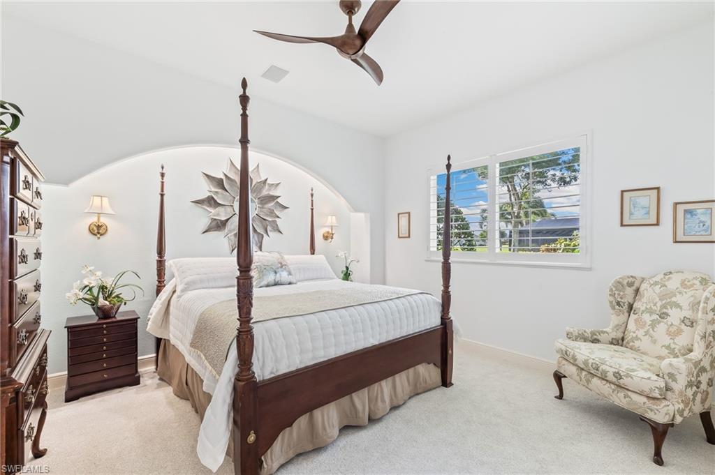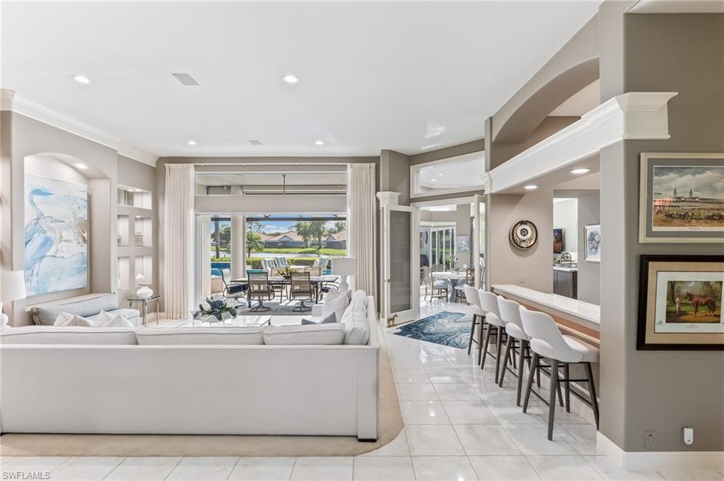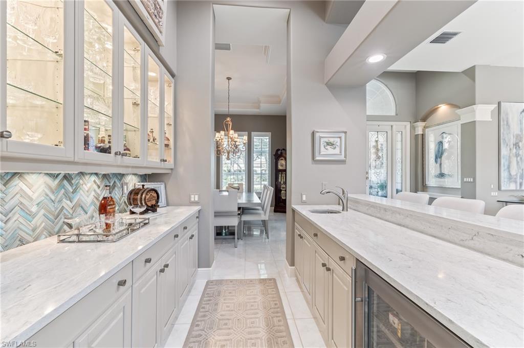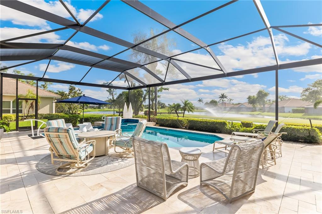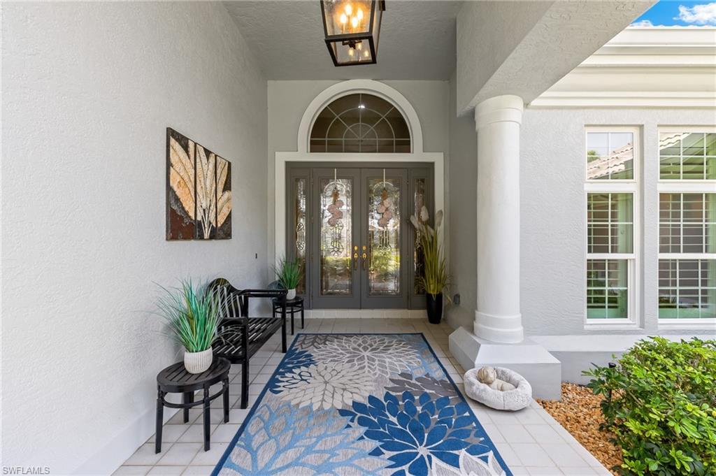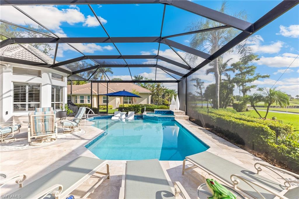 ESTATE HOME w/ IMMEDIATE GOLF AVAILABLE ON SIGNATURE HOLE IN THE VINES.....This furnished, contemporary floor plan includes over $500k in renovations and high-end interior design furnishings. Endless upgrades include new roof (2020); in-ground 500 gal propane tank (2021); new landscaping/lawn irrigation (2022); whole house generator (2023); new HVAC unit (2024); recently installed landscape stone + entire exterior of the home painted (2024). Beyond the etched glass double door, awaits a beautifully decorated living room accompanied by a sophisticated walk-in wet bar w/ wine cooler and stand alone ice maker; soaring 12-ft ceilings + an elegant dining area. Kitchen features stunning dark wood cabinetry; white quartz counters; stainless appliances and double oven. The entire left side of the home is dedicated to the massive primary suite w/ large sitting area and private ensuite. Entertain in style while guests spill out to the awe-inspiring outdoor living area w/ additional seating; completely renovated pool & spa w/ dramatic sun shelf; all new pool equipment; protective sun screen; fire-pit and pool cage with custom picture-view screen panels. In addition, a pet door is installed out of the lanai w/ an added invisible fence in the backyard. Estero Country Club social activities include a championship 18-hole golf course (golf membership optional); tennis; pickle ball; bocce; fitness center; plus casual and fine dining. Membership in The Estero Country Club is required at the Social Level. Full Golf and Sport Memberships are available with no wait list. Great location close to RSW Airport; shops and restaurants.....this home invites true resort-style living. **Be sure to click on 3D Virtual Tour Video to view this exclusive property.