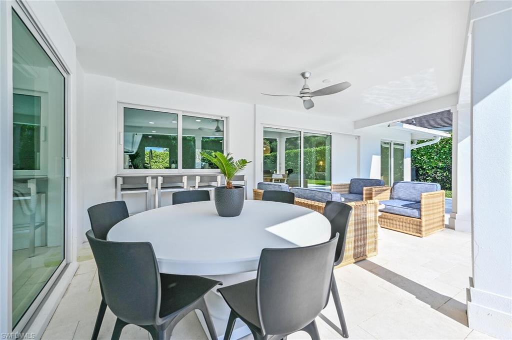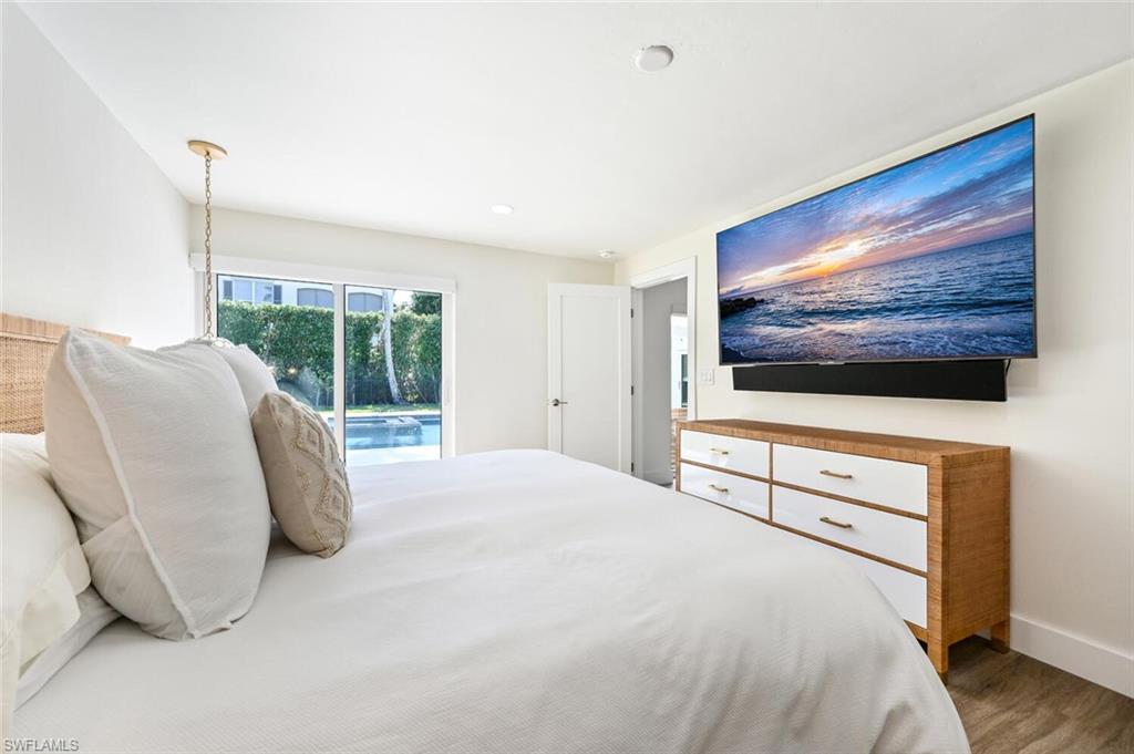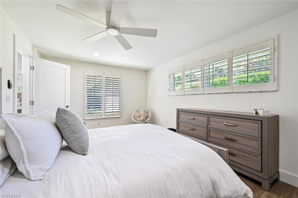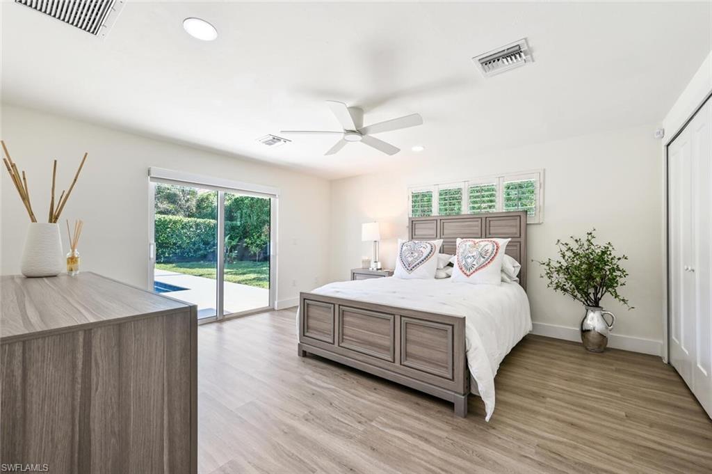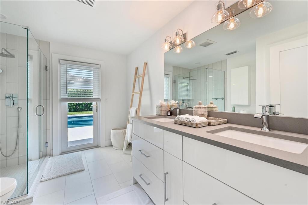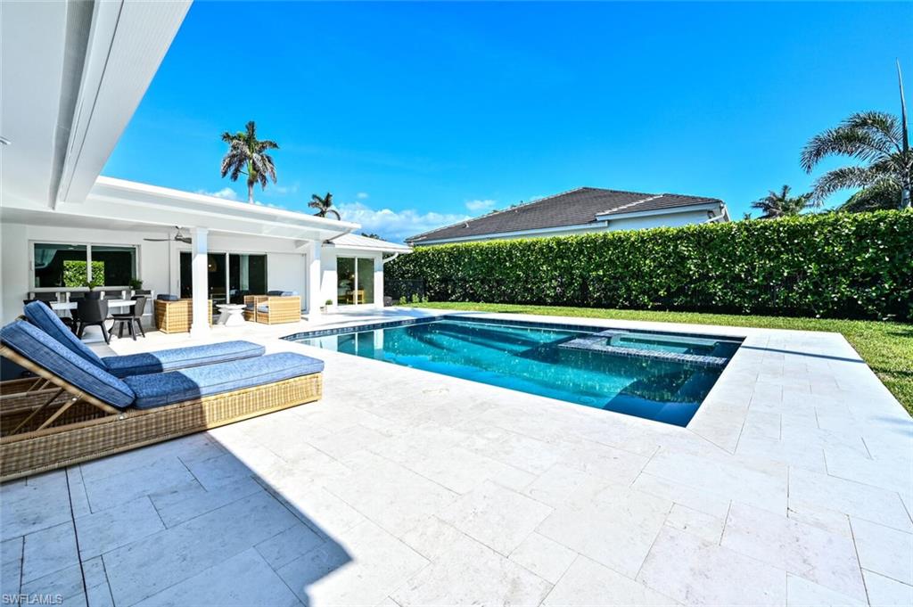 THE BEST VALUE IN PARK SHORE! Perfect location in the heart of Naples. Amazing opportunity to live in Park Shore with PRIVATE BEACH ACCESS. Completely refashioned POOL/SPA home offers 3 bedrooms, study/den, 3 bathrooms, 2 car temperature controlled garage, on a large fully fenced, lushly landscaped private lot. Tastefully decorated in soothing modern tones, this home offers an abundance of natural light throughout the open floor plan. The chef's kitchen is well-appointed with shaker cabinetry,quartz counters & Kitchen Aid appliances. Additional features include woodlook floors throughout, custom closets in every room as well as an abundance of storage, designer lighting and fans, impact doors & windows and window coverings. Enjoy the SW Florida lifestyle to the fullest entertaining on the covered lanai or lounging by the heated pool & spa. Waterfront dining and shopping are just a short walk to Venetian Village or to the private beach for Park Shore residents. Furniture available for purchase with exclusions.