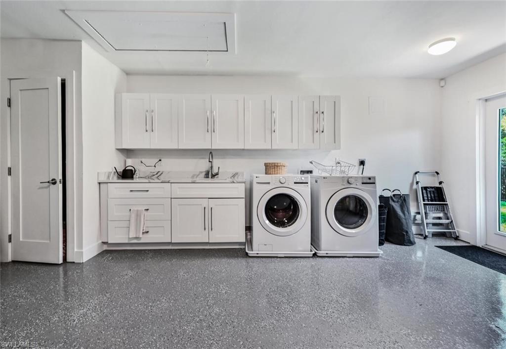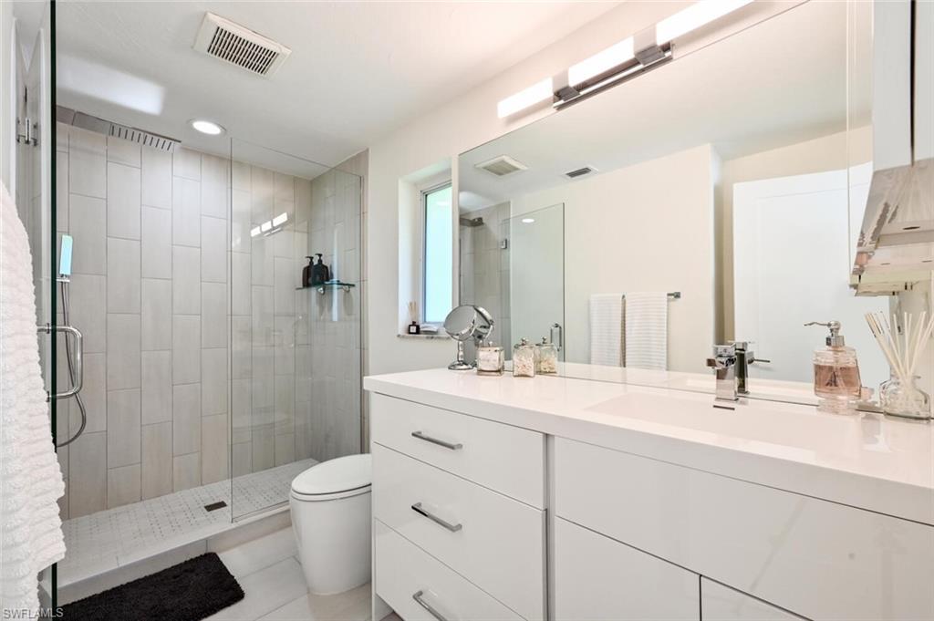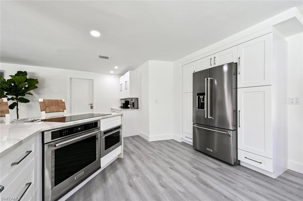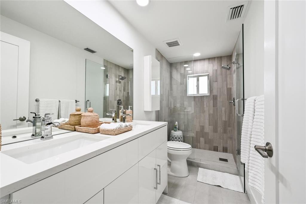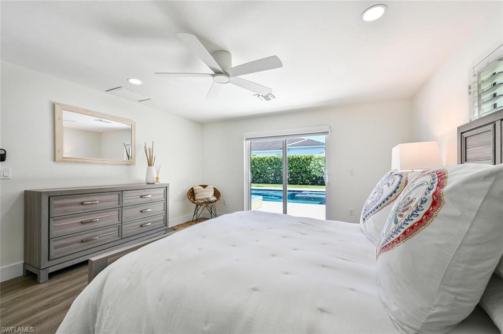 THE BEST VALUE IN PARK SHORE! Perfect location in the heart of Naples. Amazing opportunity to live in Park Shore with PRIVATE BEACH ACCESS. Completely refashioned POOL/SPA home offers 3 bedrooms, study/den, 3 bathrooms, 2 car temperature controlled garage, on a large fully fenced, lushly landscaped private lot. Tastefully decorated in soothing modern tones, this home offers an abundance of natural light throughout the open floor plan. The chef's kitchen is well-appointed with shaker cabinetry,quartz counters & Kitchen Aid appliances. Additional features include woodlook floors throughout, custom closets in every room as well as an abundance of storage, designer lighting and fans, impact doors & windows and window coverings. Enjoy the SW Florida lifestyle to the fullest entertaining on the covered lanai or lounging by the heated pool & spa. Waterfront dining and shopping are just a short walk to Venetian Village or to the private beach for Park Shore residents. Furniture available for purchase with exclusions.