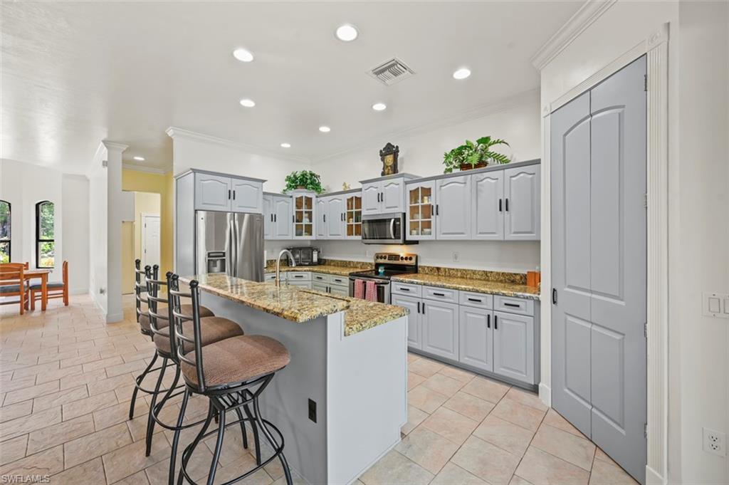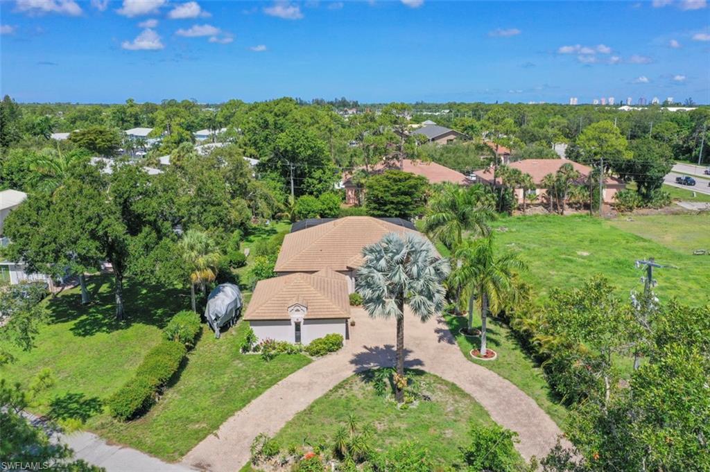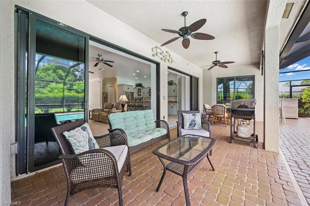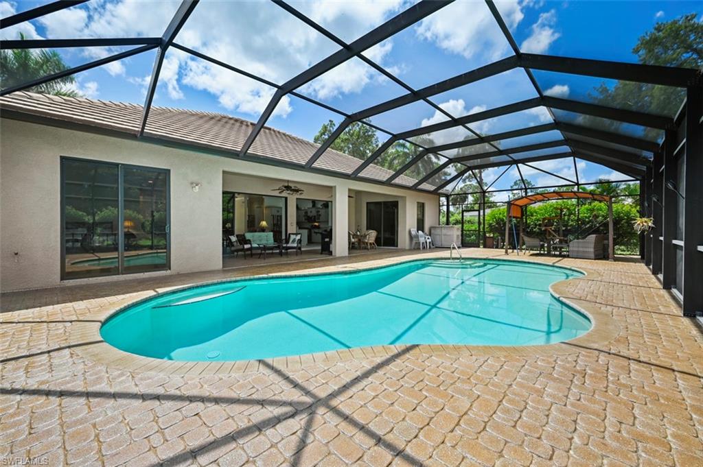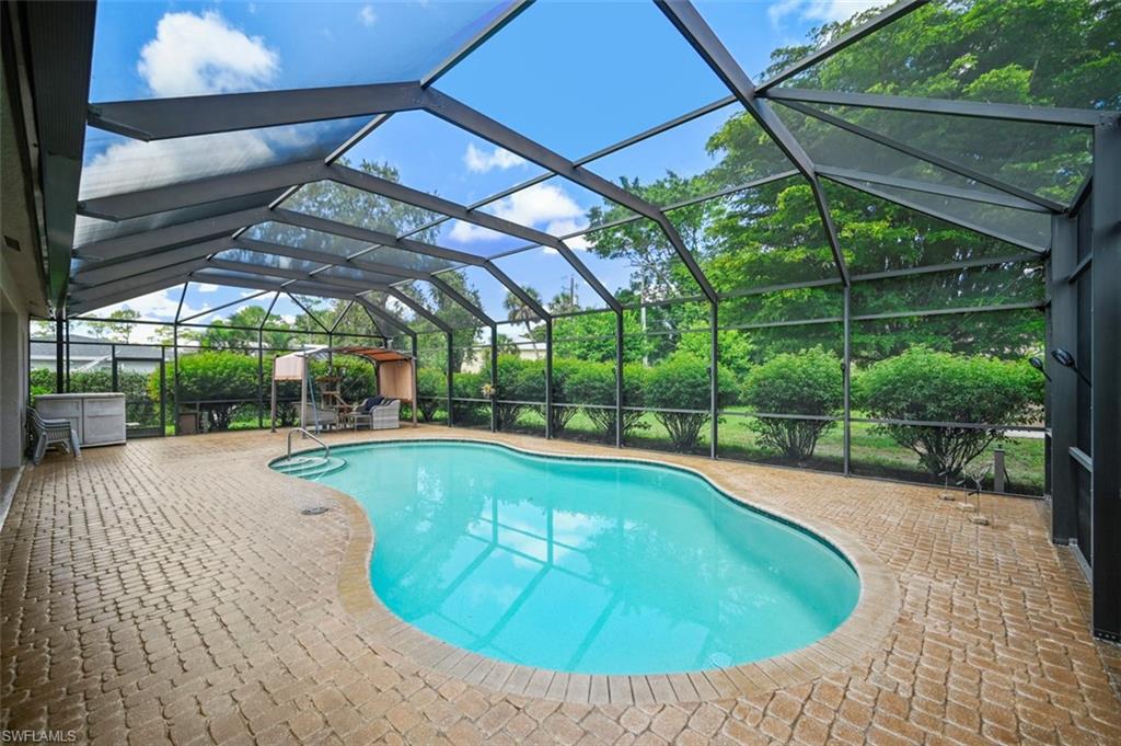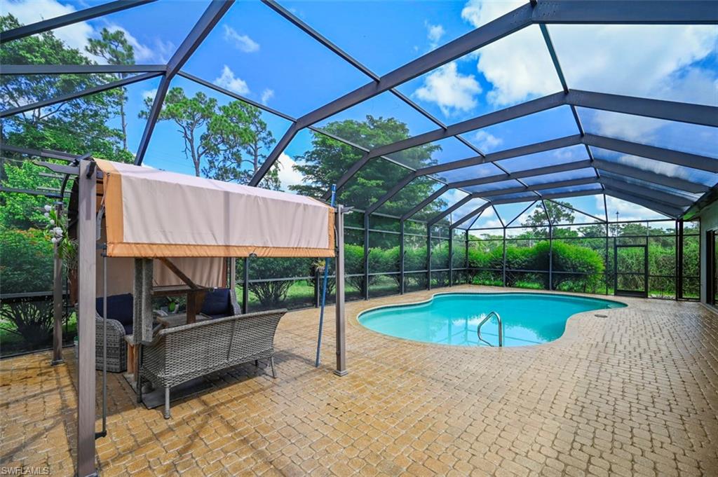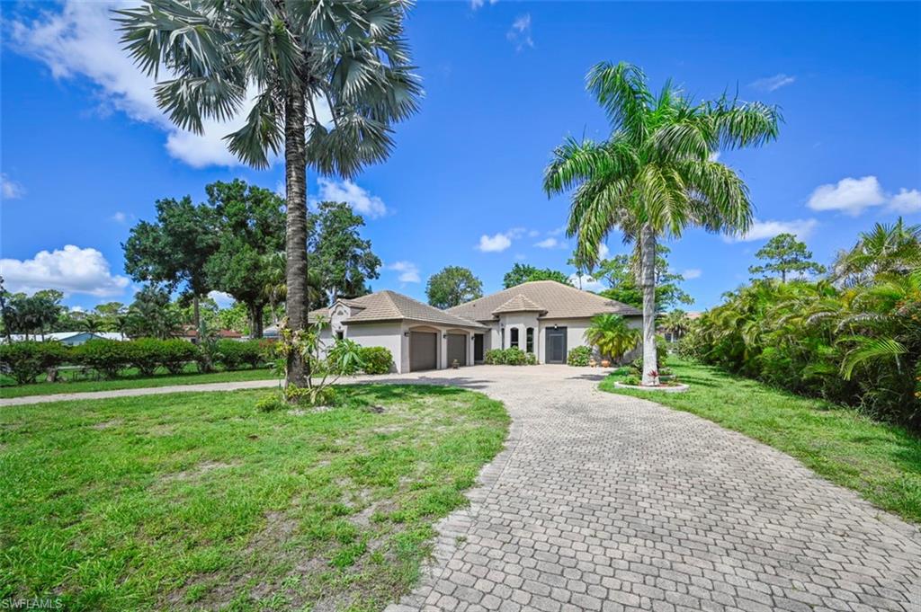 Welcome to Brookside Estates. This spacious single-story home is nestled on a generous 0.527-acre lot. Home offers 3 bedrooms, 3.5 bathrooms, and over 2,338 square feet of comfortable living space. A circular driveway welcomes you to the property, complemented by a 2-car garage connected to the home via a charming breezeway. Inside, an open-concept floor plan seamlessly connects the dining room and living area to an expansive enclosed lanai, perfect for entertaining. The lanai features an oversized pool, freshly sealed patio pavers, and no-see-um screened enclosure for year-round enjoyment. Interior highlights; tile throughout, new interior paint, new front foyer screen, frame and door, tinted/hurricane-impact doors/windows, tankless water heater, insulated attic storage. Roof was installed in 2019. AC is 5 years old and repairs are covered under a prepaid 10 year contract. No HOA means plenty of space to store boats, jet skis, and other water toys. The oversized, fenced backyard provides ample space for pets and outdoor activities. Located just a short drive from Barefoot Beach, Bonita Beach, shops, restaurants, and parks, this home is the perfect blend of privacy, convenience, and Florida lifestyle.