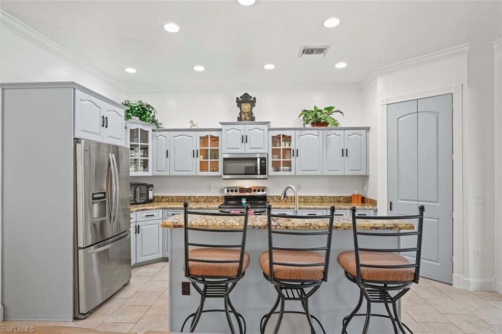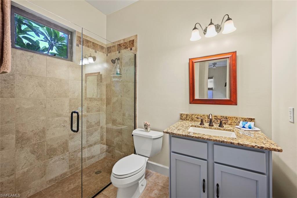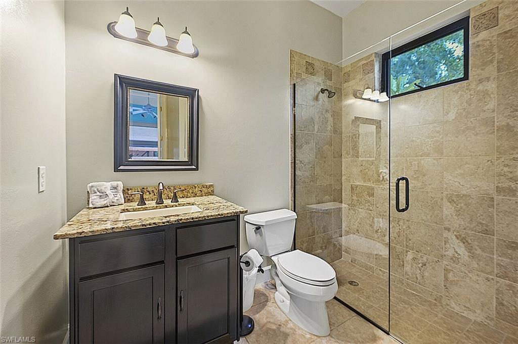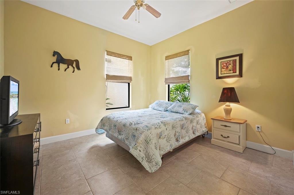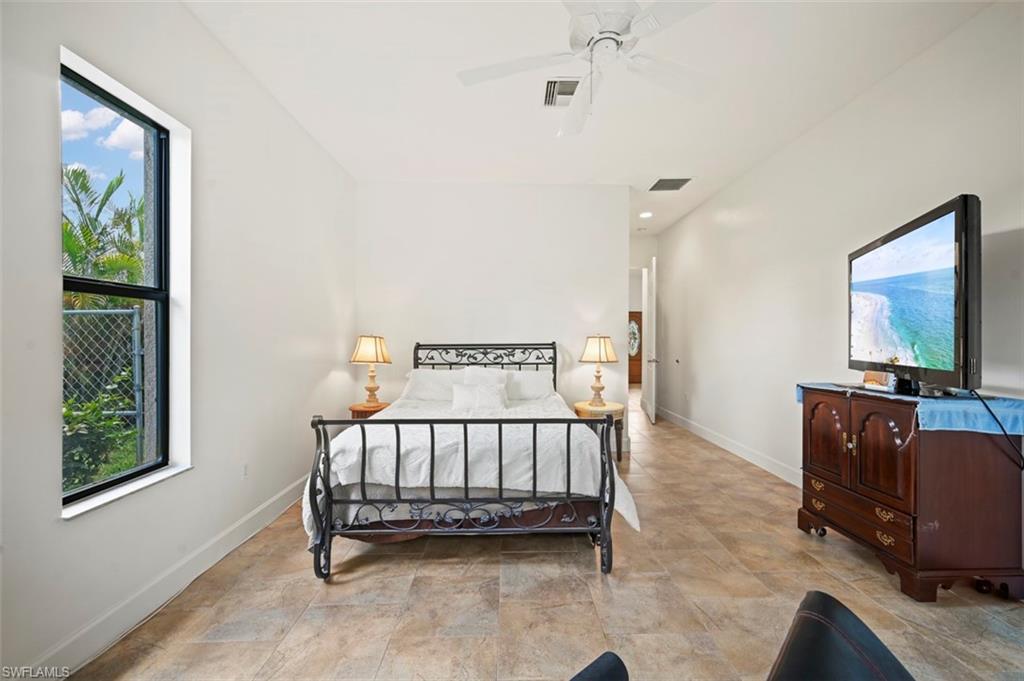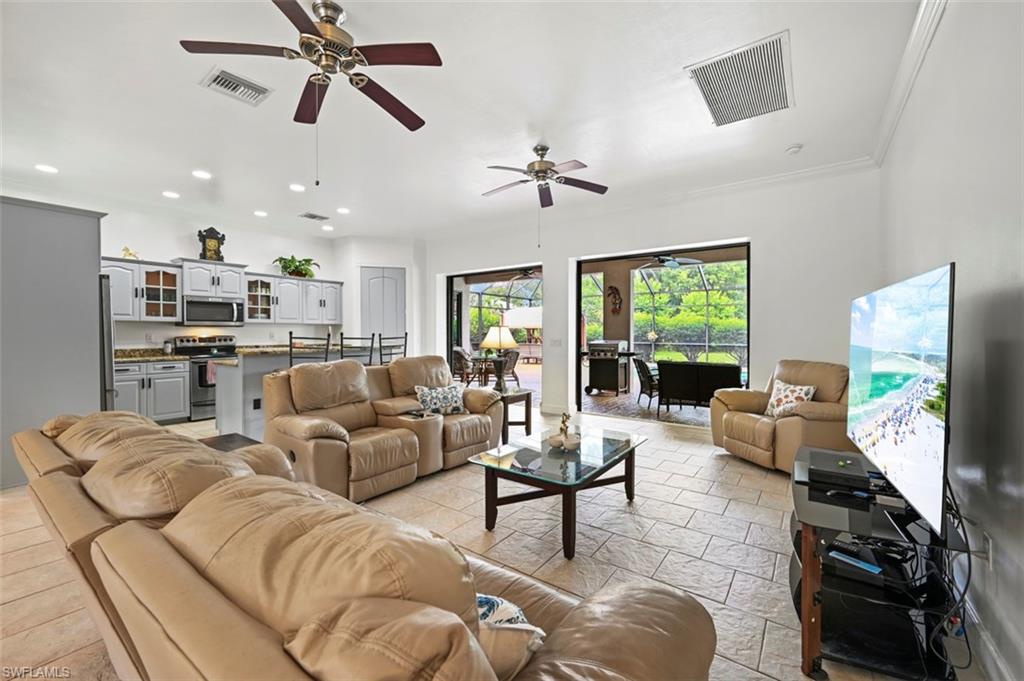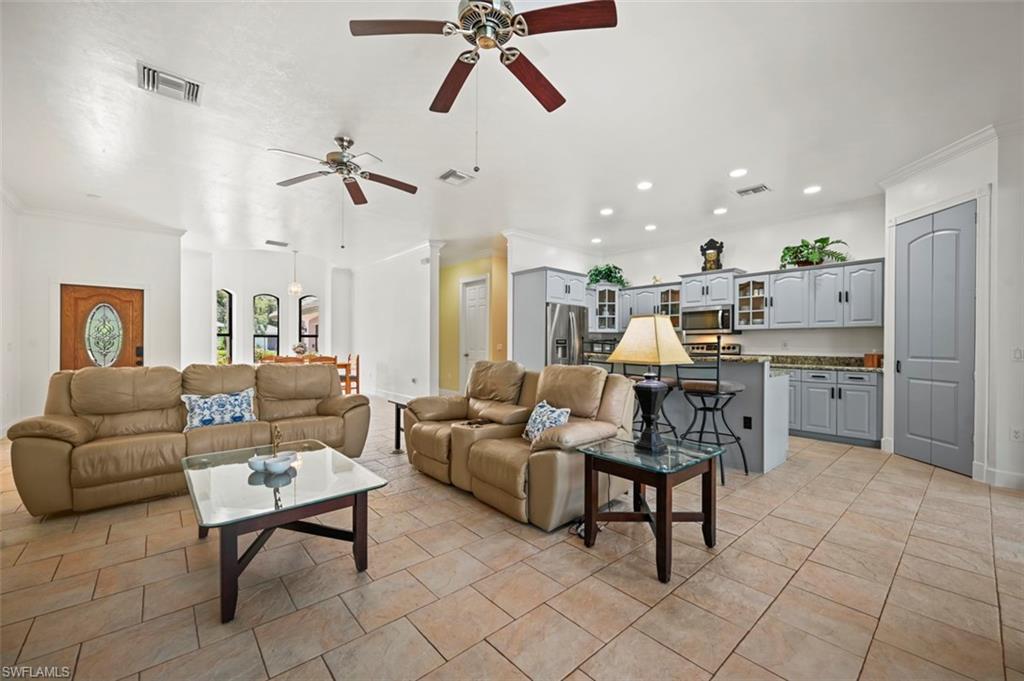 Welcome to Brookside Estates. This spacious single-story home is nestled on a generous 0.527-acre lot. Home offers 3 bedrooms, 3.5 bathrooms, and over 2,338 square feet of comfortable living space. A circular driveway welcomes you to the property, complemented by a 2-car garage connected to the home via a charming breezeway. Inside, an open-concept floor plan seamlessly connects the dining room and living area to an expansive enclosed lanai, perfect for entertaining. The lanai features an oversized pool, freshly sealed patio pavers, and no-see-um screened enclosure for year-round enjoyment. Interior highlights; tile throughout, new interior paint, new front foyer screen, frame and door, tinted/hurricane-impact doors/windows, tankless water heater, insulated attic storage. Roof was installed in 2019. AC is 5 years old and repairs are covered under a prepaid 10 year contract. No HOA means plenty of space to store boats, jet skis, and other water toys. The oversized, fenced backyard provides ample space for pets and outdoor activities. Located just a short drive from Barefoot Beach, Bonita Beach, shops, restaurants, and parks, this home is the perfect blend of privacy, convenience, and Florida lifestyle.