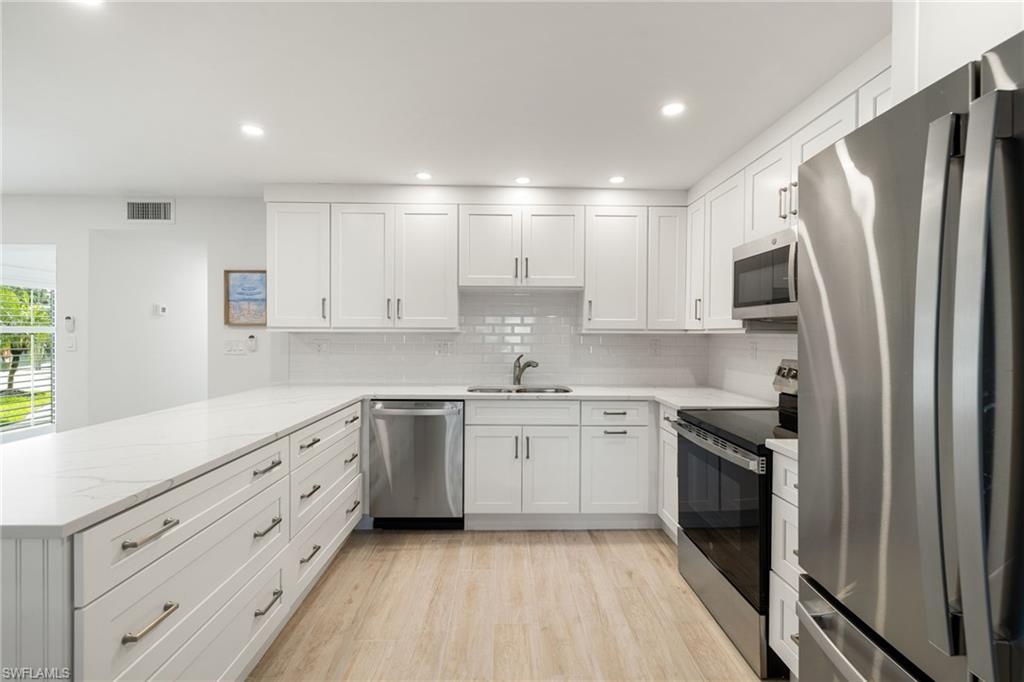Beautifully Renovated Bayfront Condo in Prime Naples Location. Effortless coastal living on the prestigious Miracle Mile, just steps from the exclusive Moorings Private Beach Park. This beautifully updated 2-bedroom, 2-bath condo with a versatile den offers sweeping bay views and refined finishes throughout. Inside, you’ll find hurricane-impact windows and doors, custom white cabinetry, quartz countertops, stainless steel appliances, and porcelain tile flooring. The entire unit has been thoughtfully renovated with new electrical and plumbing systems for modern peace of mind. A separate storage unit is also included. Enjoy a host of community amenities: a heated pool, car wash area, social dock with picnic tables on the bay, barbeque area, and a brand-new laundry room. Boat lovers will appreciate the option to rent or purchase a dock from an owner. This residence is part of a well-established and highly respected HOA—one of the most organized and well-managed in the area. Whether you’re seeking a full-time residence or a stylish seasonal escape, this exceptional condo combines location, lifestyle, and value like no other. Live your Naples dream to the fullest....