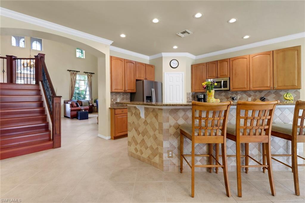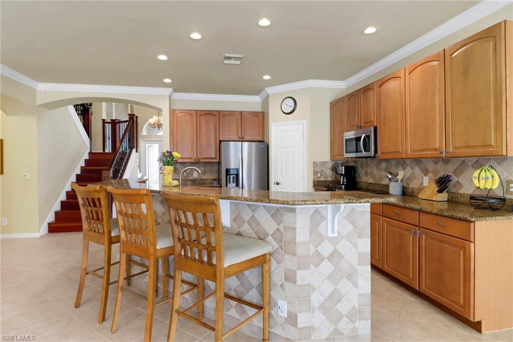 Wow - a 4 Bedroom Pool home for under $700,000 - in a fabulous Golf Course community just a short drive to the Naples' award winning white sand beaches!! This meticulously maintained home offers nearly 2900 square feet of living space and is situated on one of the largest lots in the community, offering a very private and peaceful landscaped view. Welcome to Lago Villaggio in Glen Eagle - one of Naples' most reasonably priced golf course communities. This home comes with a social membership that allows for golf privileges from May through November. Other amenities include an active social calendar, restaurant, tennis, pickleball, putting green, fitness center bocce and so much more!! You'll be impressed the moment you enter this home - with a dramatic 2 story entry! The spacious kitchen features updated stainless steel appliances, granite counters, living, family and dining room and a large first floor master bedroom with a huge master bath, offering separate tub and shower and dual sinks. The second floor offers 3 large bedrooms and a small loft that can be used as an office or reading nook. You'll LOVE living the Florida lifestyle on your oversized lanai and large pool and spa! This home is priced to sell and is the opportunity you've been waiting for to start living the Florida lifestyle you deserve!